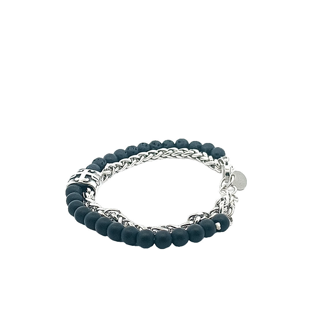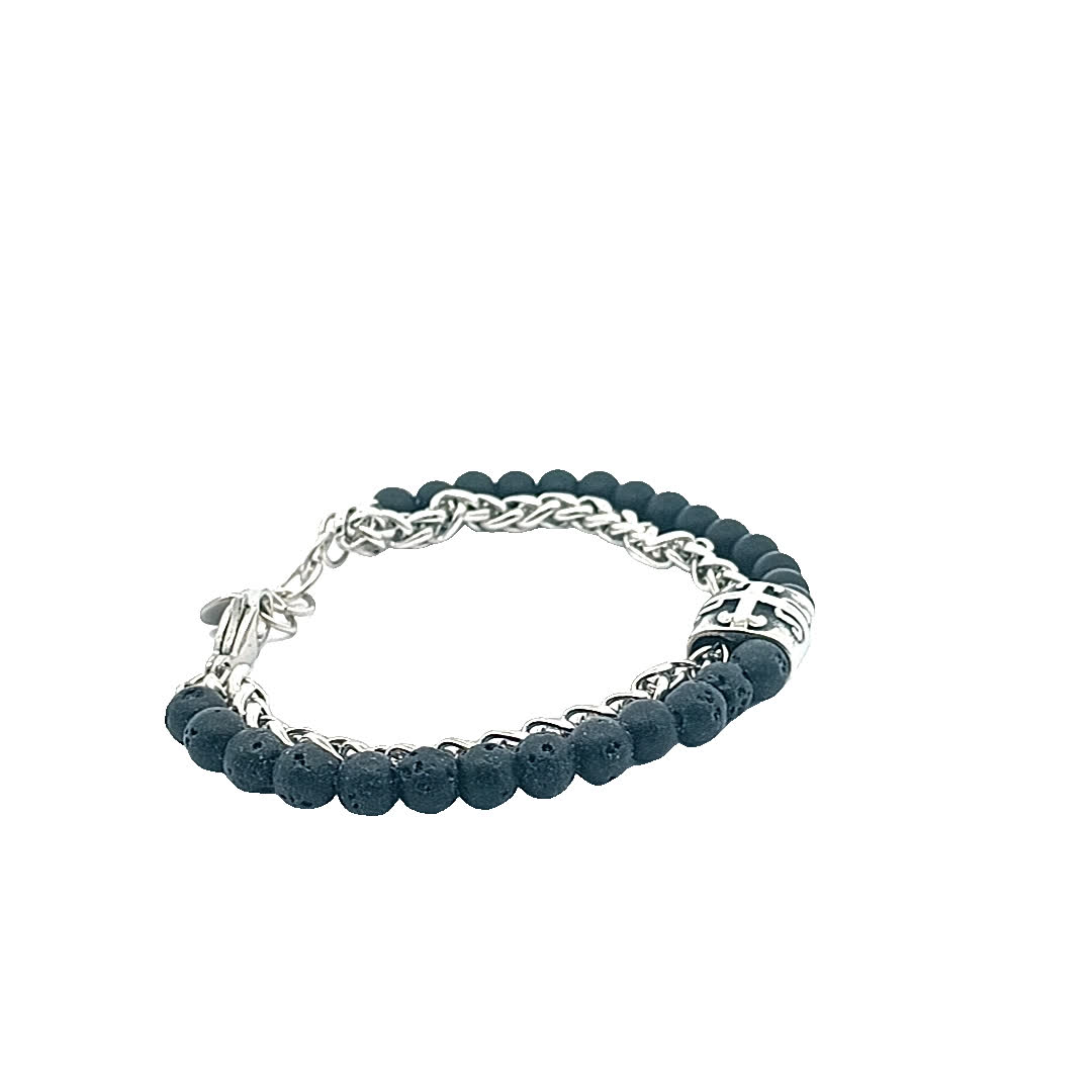 Podnieś poziom swoich dodatków dzięki tej oszałamiającej czarno-srebrnej bransoletce. Wykonana z unikalnego połączenia teksturowanych koralików i eleganckich metalowych ogniw, oferuje nowoczesny, a jednocześnie ponadczasowy urok. Idealna zarówno na okazje codzienne, jak i formalne, ta część jest niezbędnym dodatkiem do Twojej kolekcji biżuterii.