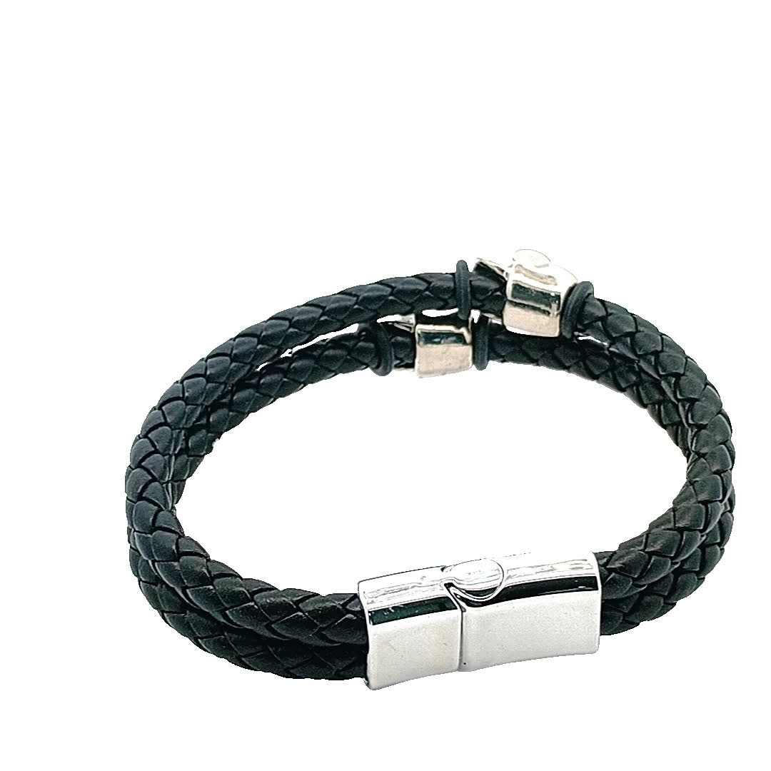 Podnieś poziom swoich dodatków dzięki tej wyjątkowej skórzanej bransoletce z czaszką. Wykonana z wysokiej jakości plecionej skóry, ma efektowne posrebrzane akcenty czaszki, które dodają odważnego akcentu do każdej stylizacji. Idealna zarówno na okazje codzienne, jak i formalne, ta bransoletka jest koniecznością dla tych, którzy odważą się wyróżnić.