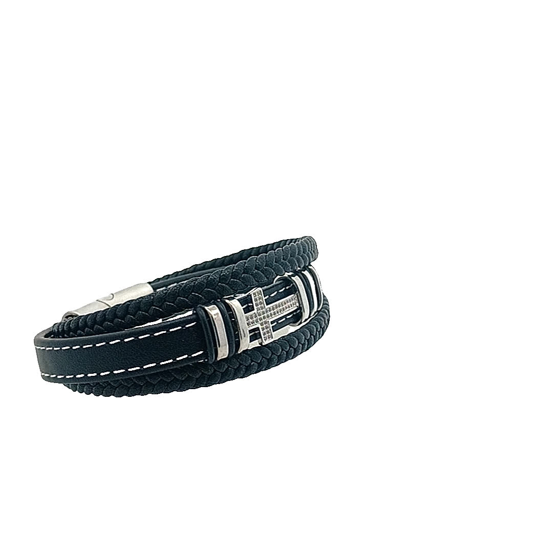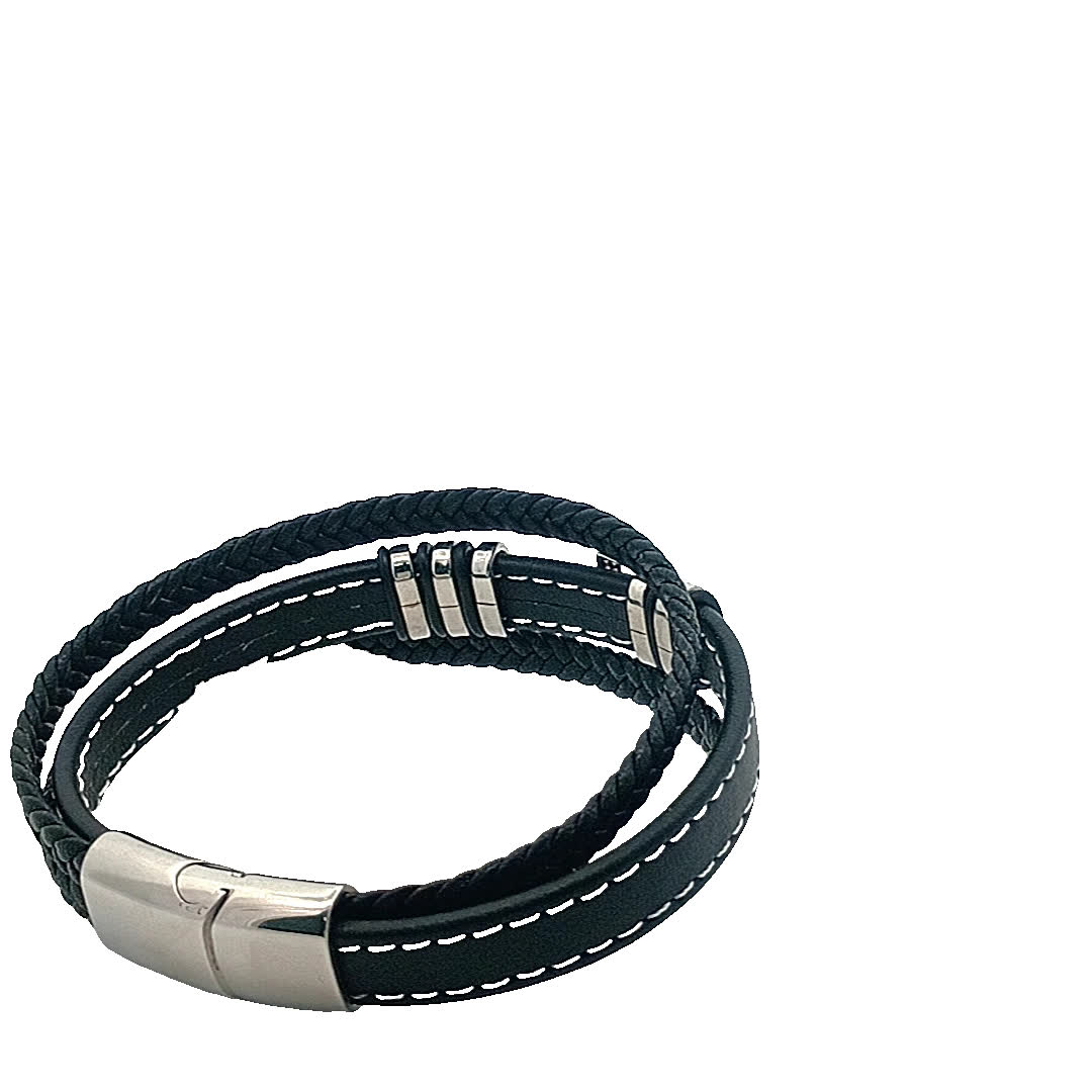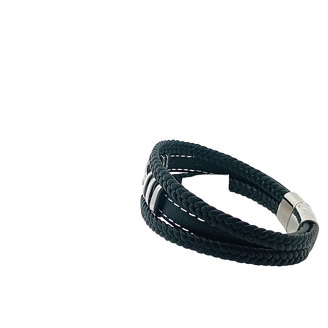 Ta stylowa czarna skórzana bransoletka łączy nowoczesny design z klasyczną elegancją. Misterny splot dodaje faktury, a polerowane metalowe zapięcie zapewnia uderzający kontrast. Idealna zarówno na okazje codzienne, jak i formalne, ta bransoletka jest wszechstronnym dodatkiem, który wzbogaci każdy strój.