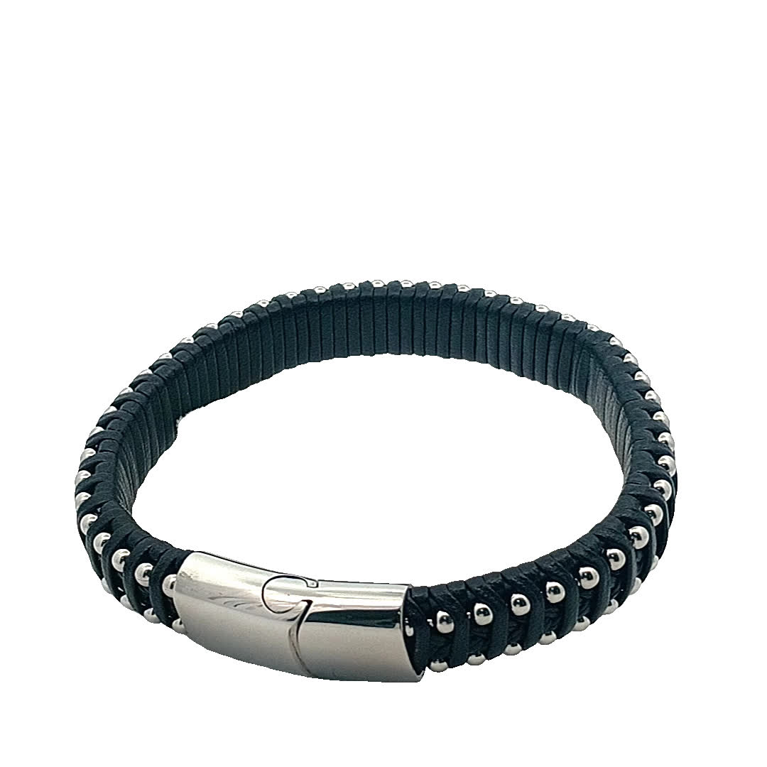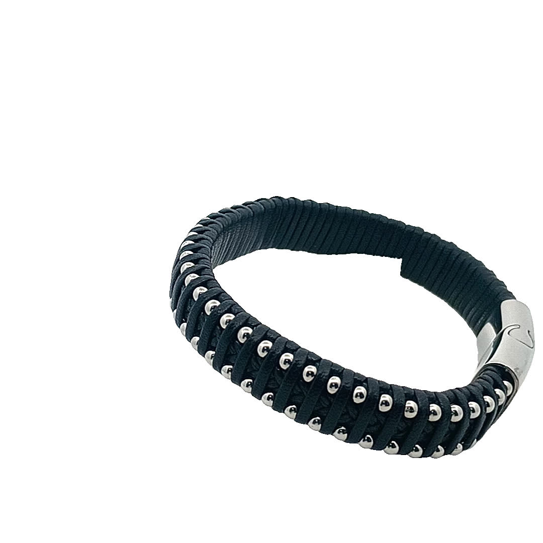 Podnieś poziom swoich dodatków dzięki tej stylowej skórzanej bransoletce, z misternymi srebrnymi akcentami, które pięknie odbijają światło. Idealna zarówno na okazje codzienne, jak i formalne, ta część dodaje odrobinę wyrafinowania do każdej stylizacji. Jej regulowana konstrukcja zapewnia wygodne dopasowanie do wszystkich rozmiarów nadgarstków.