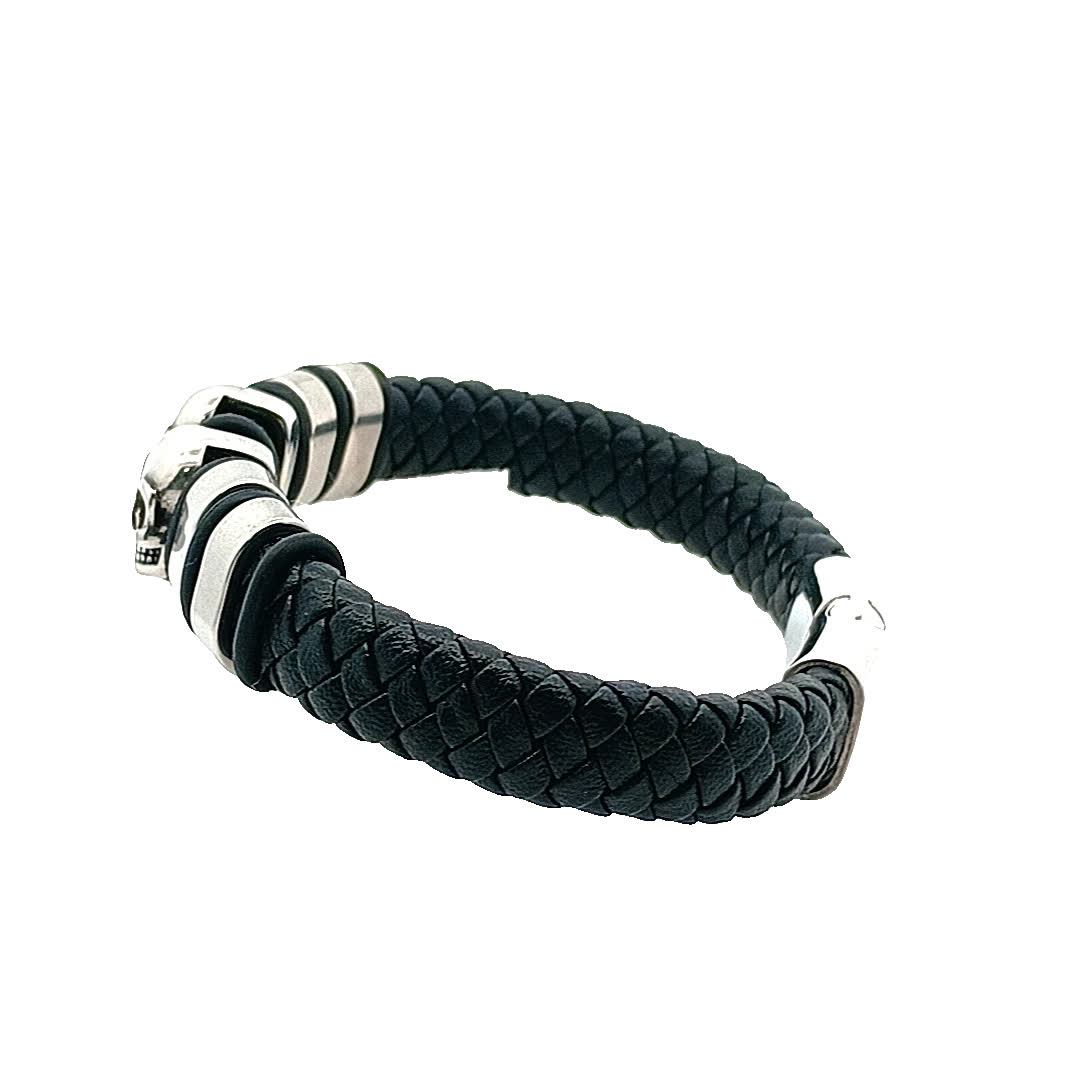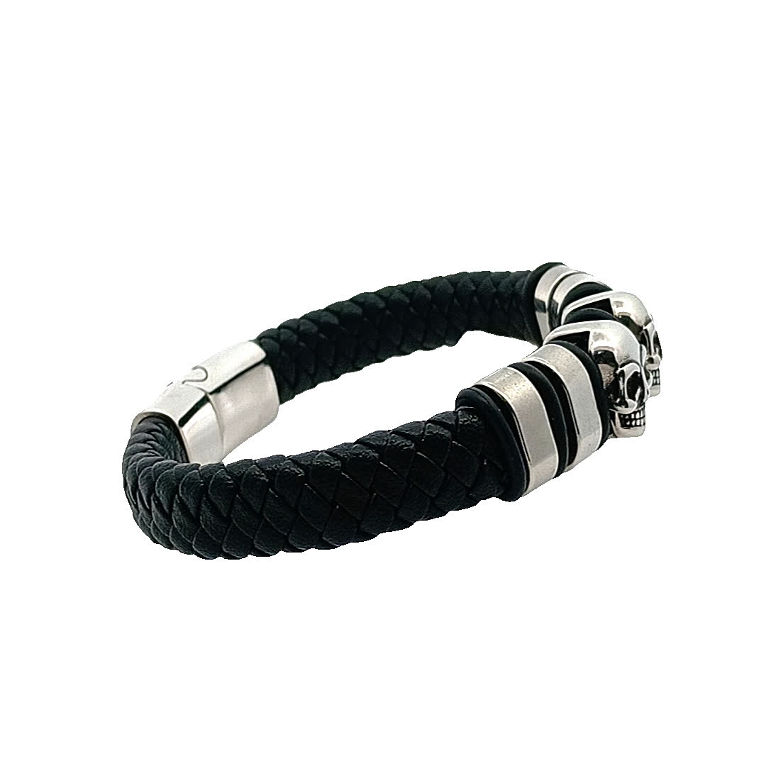 Ta uderzająca bransoletka z czaszką łączy w sobie awangardowy design z nowoczesnym rzemiosłem. Misterne zdobienia czaszek w połączeniu z elegancką czarną skórą tworzą śmiały element, który idealnie nadaje się na każdą okazję. Podnieś poziom swoich dodatków dzięki tej wyjątkowej bransoletce, która podkreśla Twoją indywidualność.
