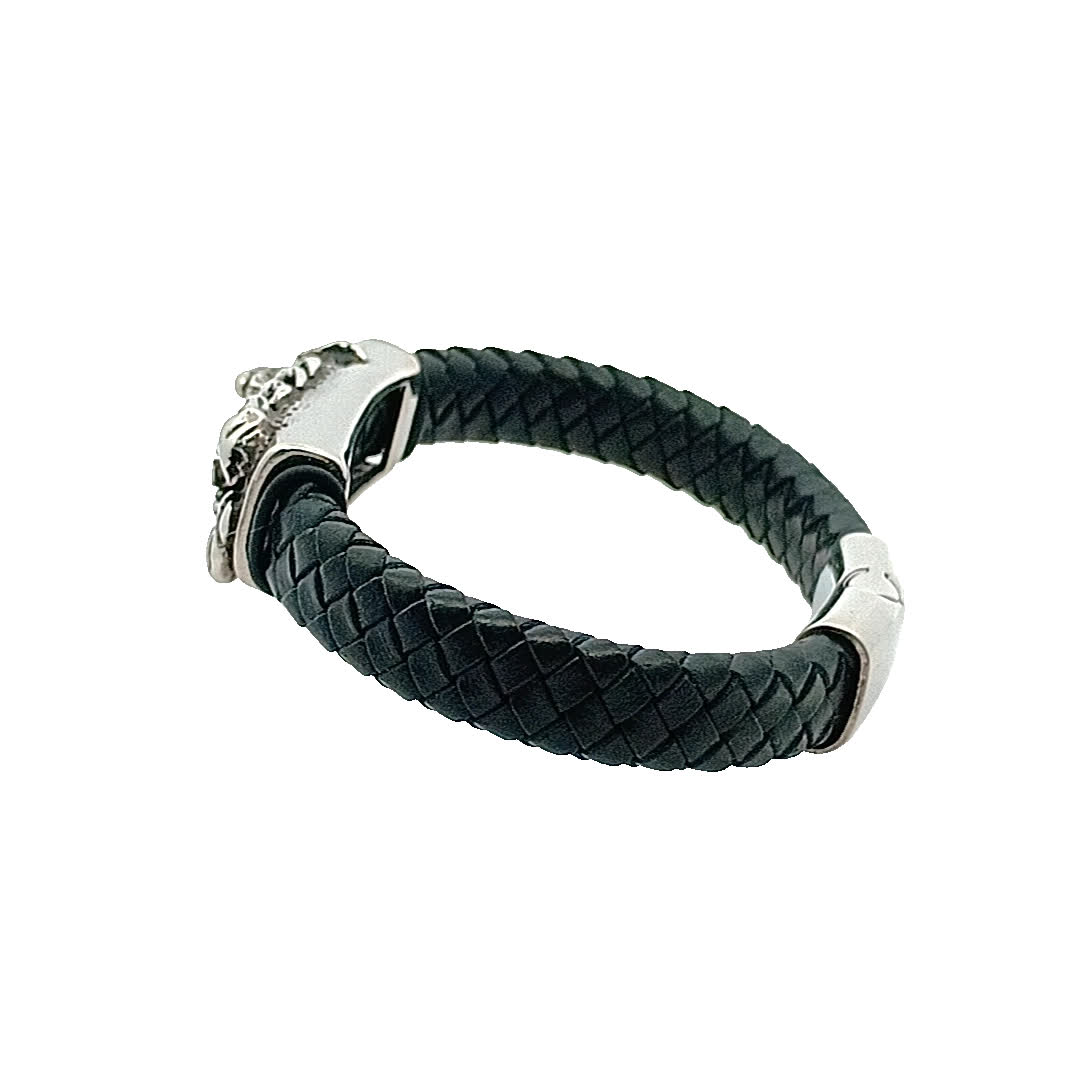 Ta wyjątkowa bransoletka z homara łączy elegancję z nutą przygody. Wykonana z plecionego czarnego skórzanego paska, ma efektowne posrebrzane zapięcie na homara, które dodaje zabawnego, ale wyrafinowanego charakteru. Idealna dla tych, którzy cenią wyjątkowe akcesoria opowiadające historię.