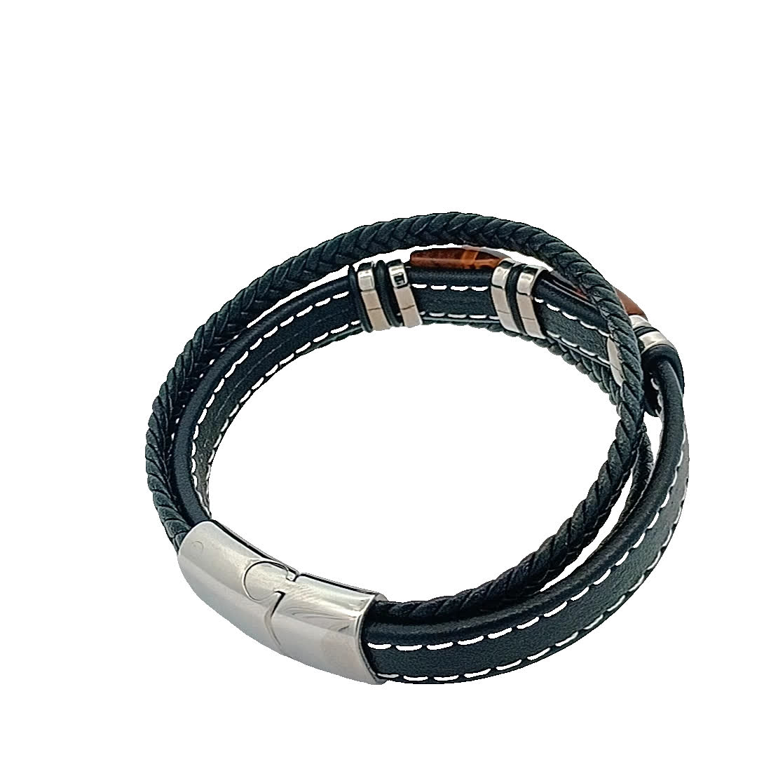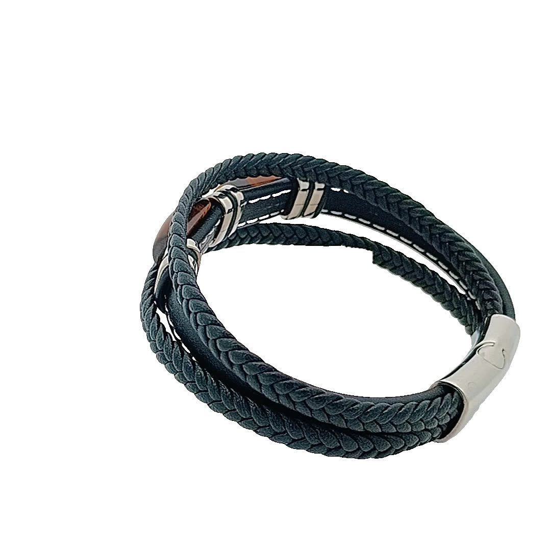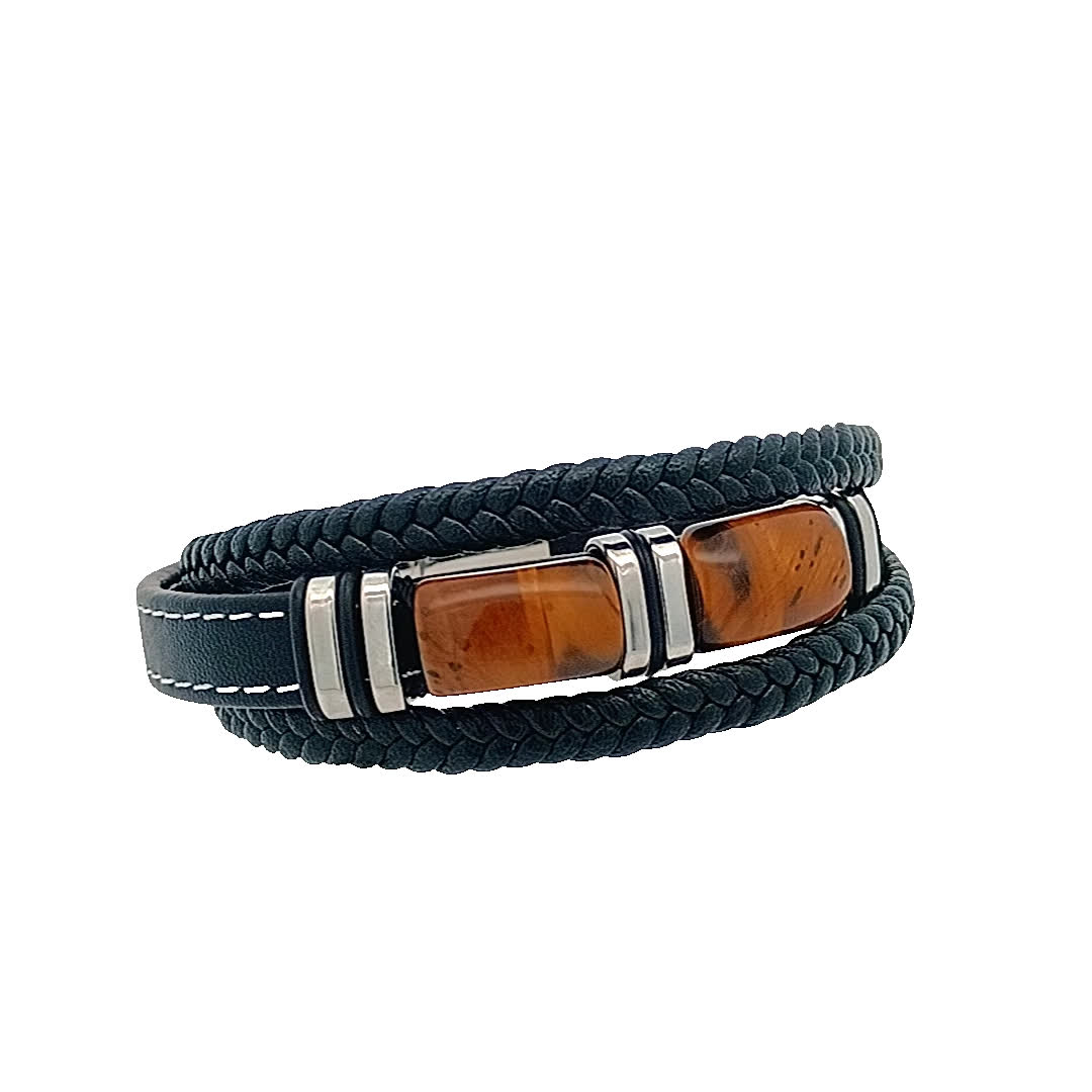 Podnieś poziom swoich dodatków dzięki tej stylowej skórzanej bransoletce z efektownym kamiennym elementem centralnym. Misterny splot dodaje odrobinę wyrafinowania, dzięki czemu idealnie nadaje się zarówno na okazje codzienne, jak i formalne. Noś ją samodzielnie lub zestawiaj z innymi elementami, aby uzyskać modny, warstwowy wygląd.