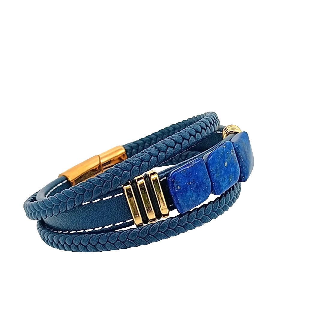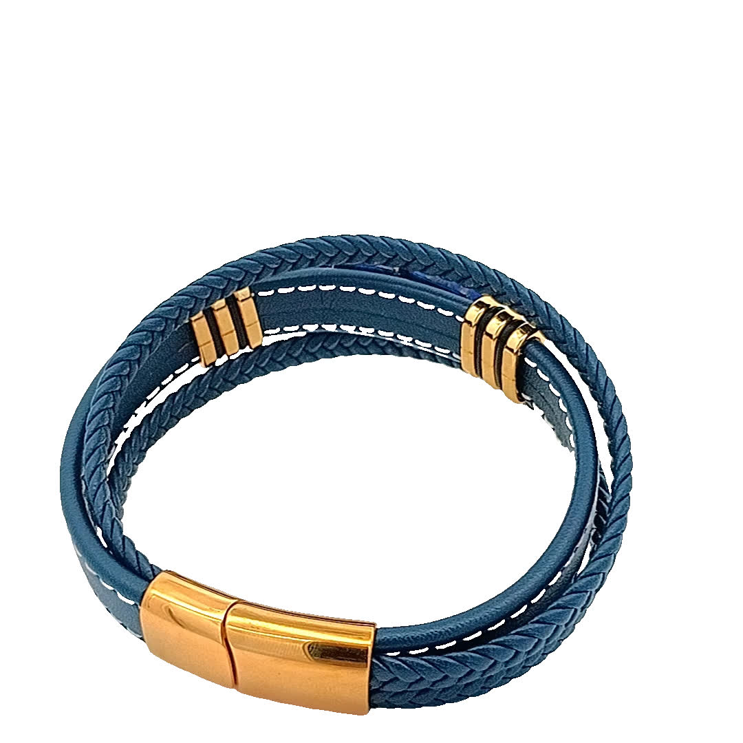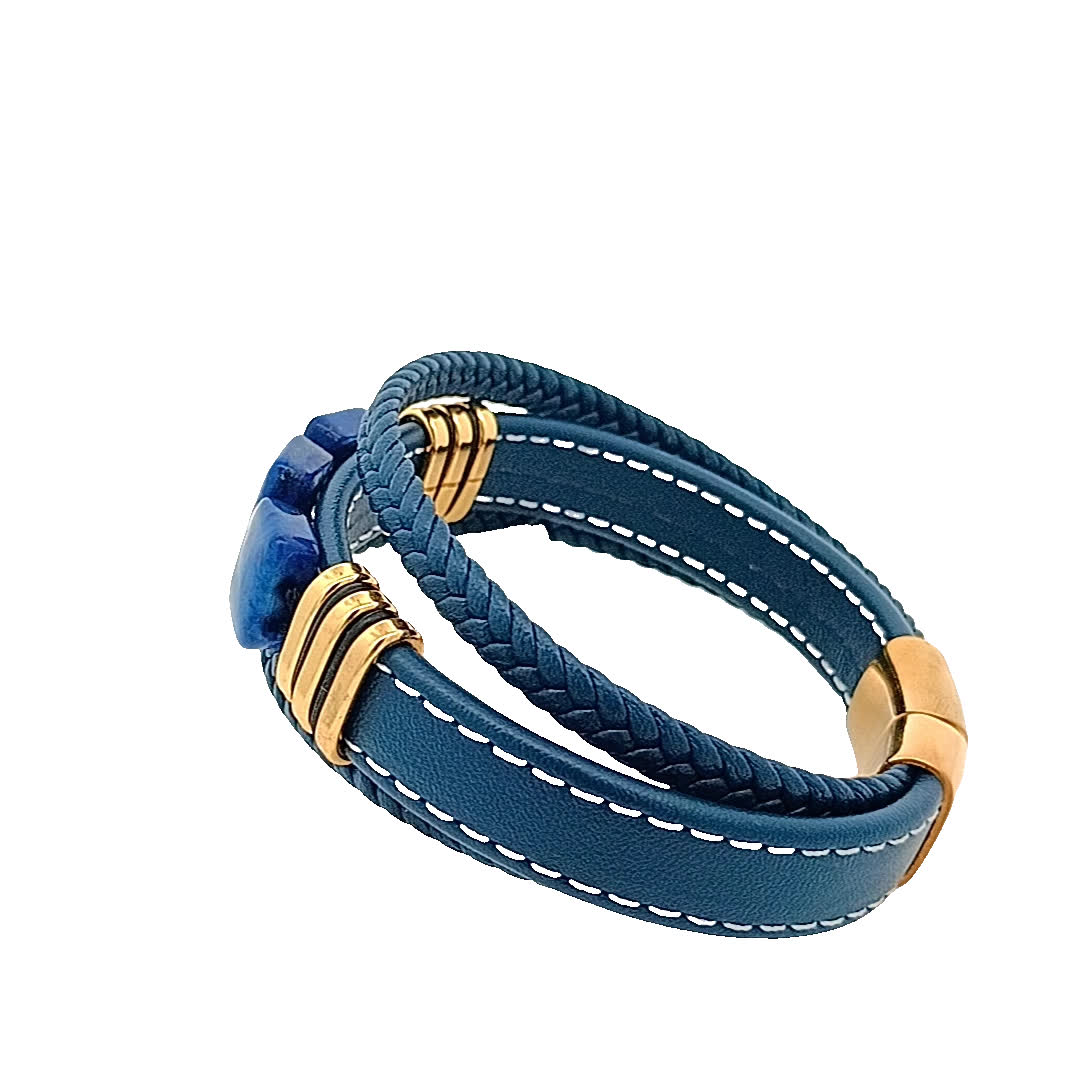 Ta oszałamiająca niebieska skórzana bransoletka łączy elegancję i styl, prezentując wyjątkowy design ze złocistymi akcentami i pięknymi niebieskimi kamieniami. Idealna do dodania odrobiny wyrafinowania do każdego stroju, jest wszechstronnym dodatkiem zarówno na okazje codzienne, jak i formalne.
