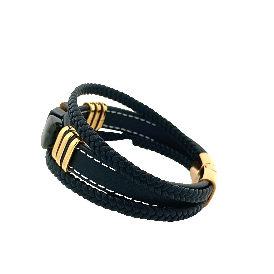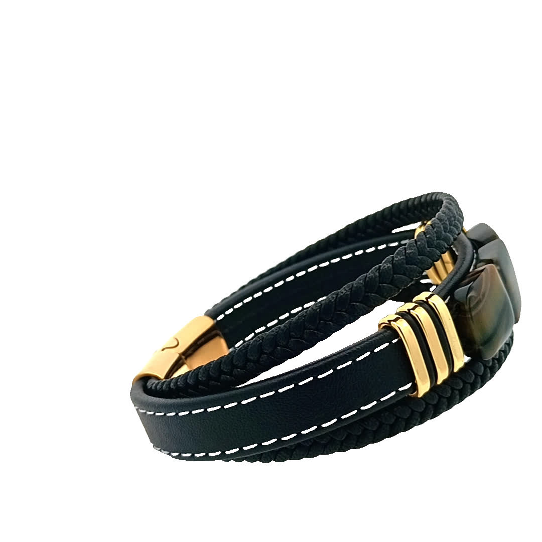Odkryj idealne połączenie elegancji i stylu z tą oszałamiającą bransoletką w kolorze czarnym i złocistym. Dzięki wyjątkowemu plecionemu wzorowi i efektownym kamieniom tygrysiego oka doda odrobinę wyrafinowania każdej stylizacji. Idealna zarówno na okazje codzienne, jak i formalne, ta bransoletka jest niezbędnym dodatkiem dla entuzjastów mody.