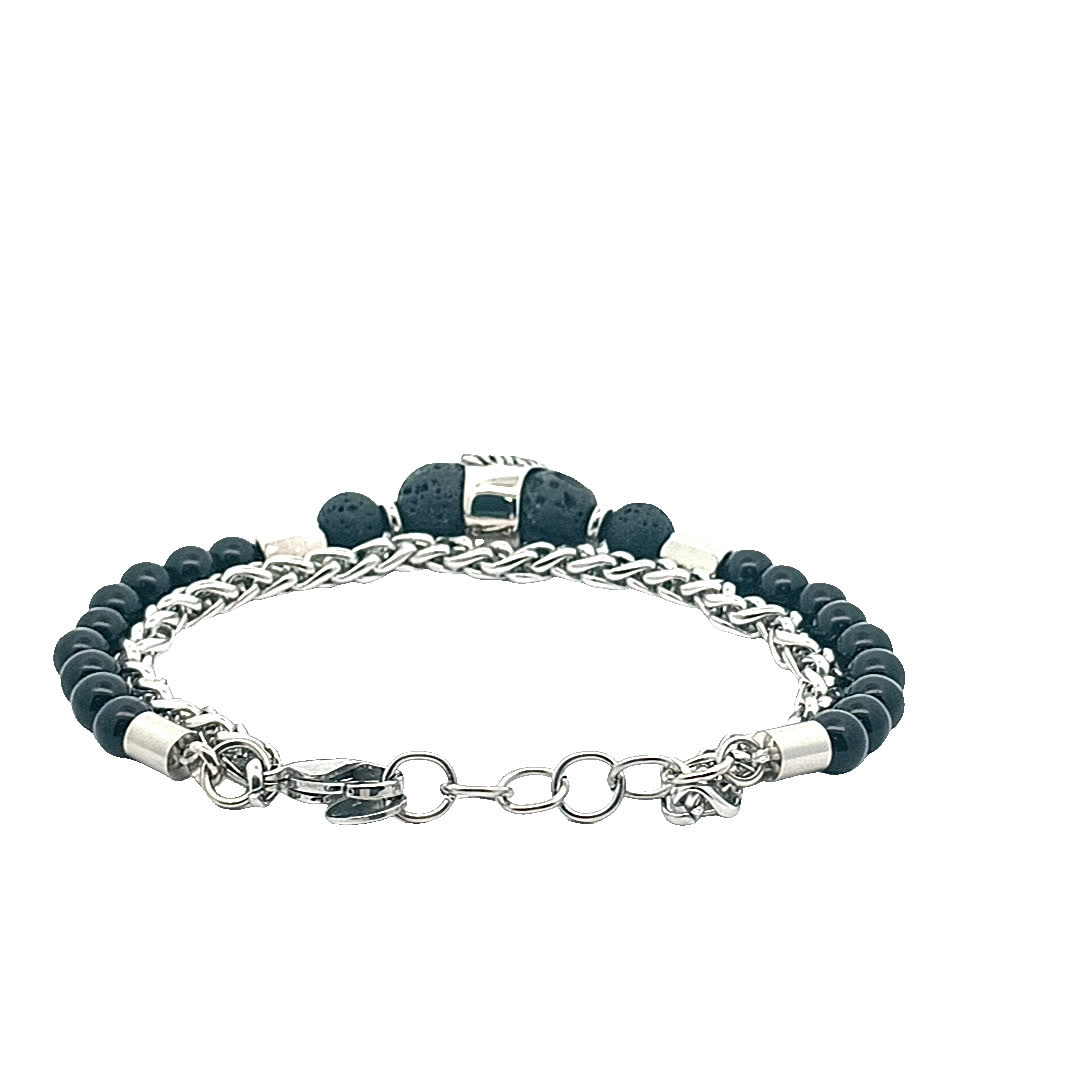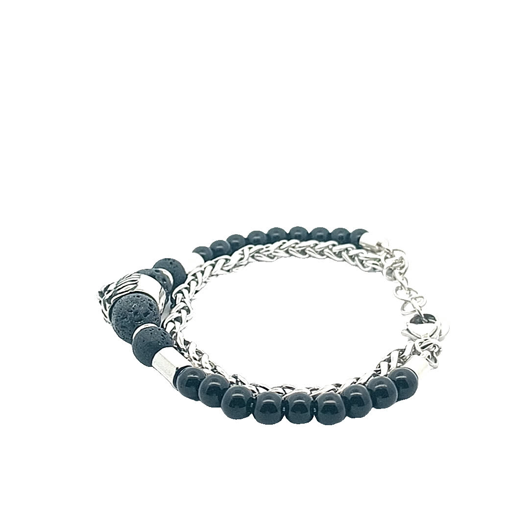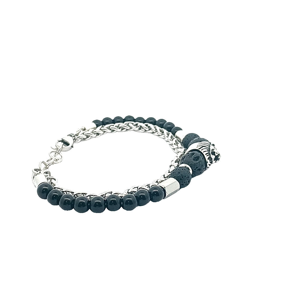 Ta oszałamiająca bransoletka ma wyjątkowy motyw lwa, symbolizujący siłę i odwagę. Wykonana z połączenia czarnych koralików i posrebrzanych akcentów, dodaje odrobinę wyrafinowania do każdego stroju. Idealna zarówno na okazje codzienne, jak i formalne, ta część jest niezbędna dla miłośników biżuterii.