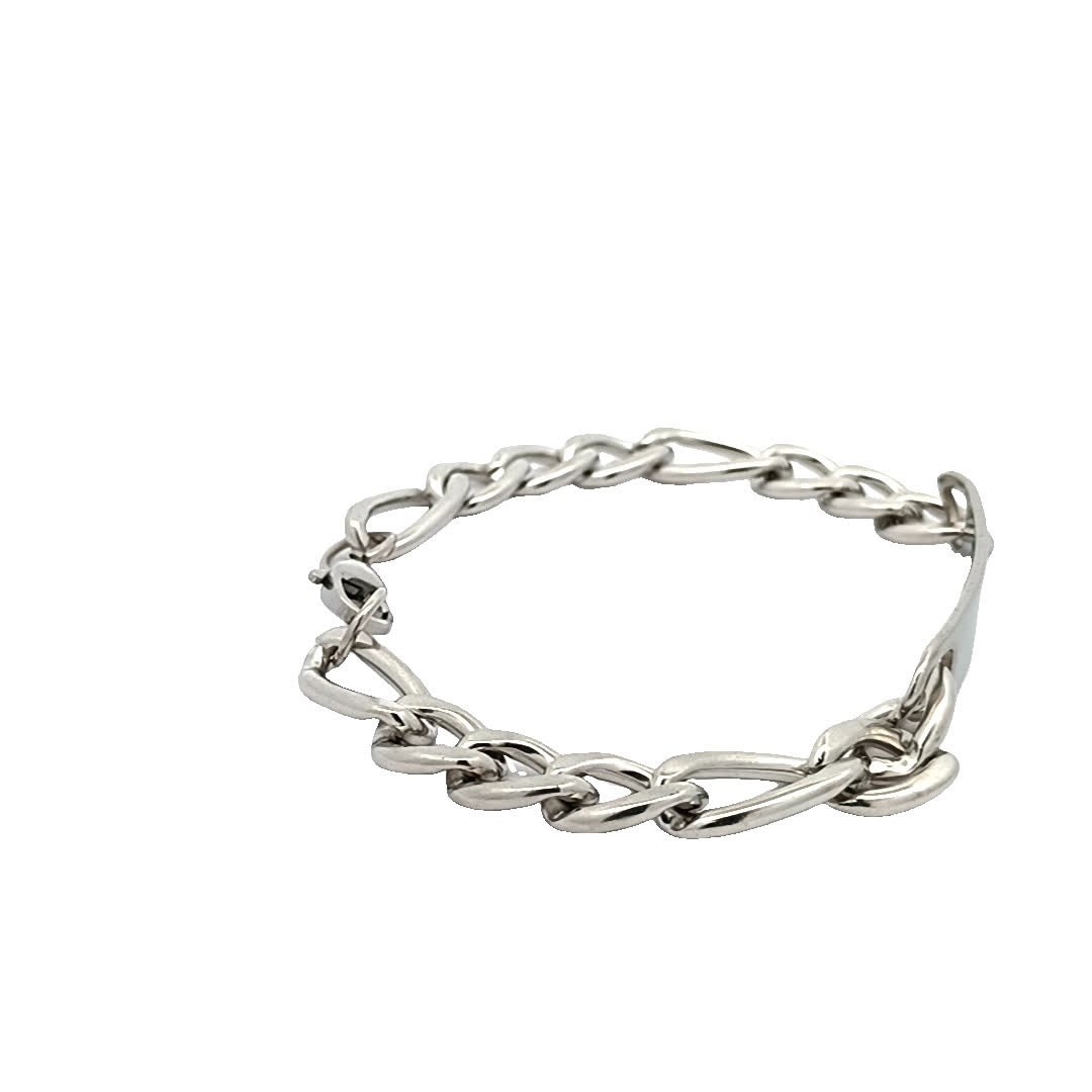 Ta elegancka posrebrzana bransoletka łańcuszkowa to idealny dodatek do każdego stroju. Jej elegancki design charakteryzuje się zazębiającymi się ogniwami, które tworzą nowoczesny, ale ponadczasowy wygląd. Idealna zarówno na okazje codzienne, jak i formalne, ta bransoletka dodaje odrobinę wyrafinowania do Twojego stylu.