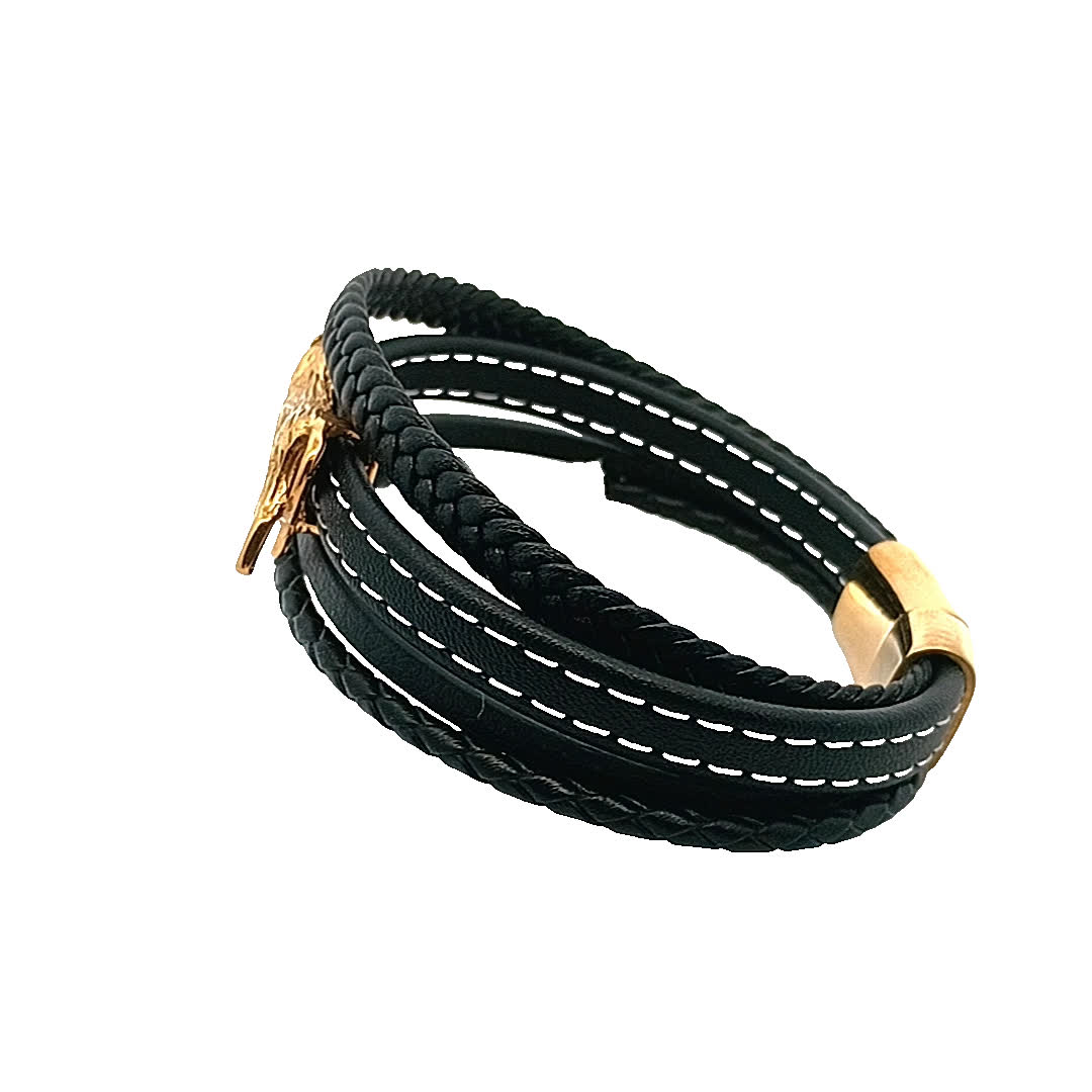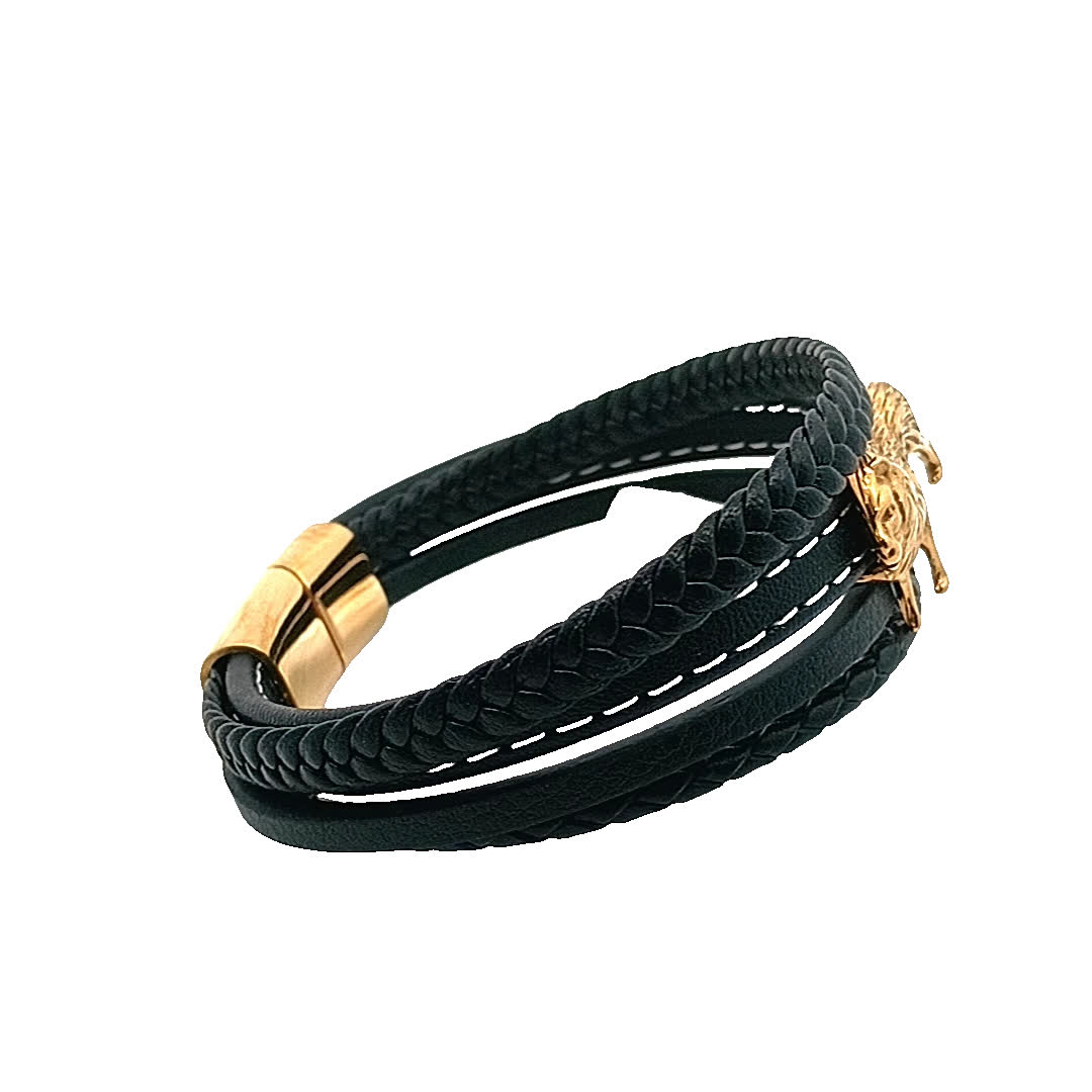 Ta efektowna skórzana bransoletka ma wyjątkowy emblemat lwa, symbolizujący siłę i odwagę. Misterny splot dodaje odrobinę wyrafinowania, dzięki czemu jest idealnym dodatkiem zarówno do swobodnych, jak i formalnych strojów. Podnieś swój styl dzięki temu przyciągającemu wzrok elementowi, który uwydatnia Twoją odważną osobowość.
