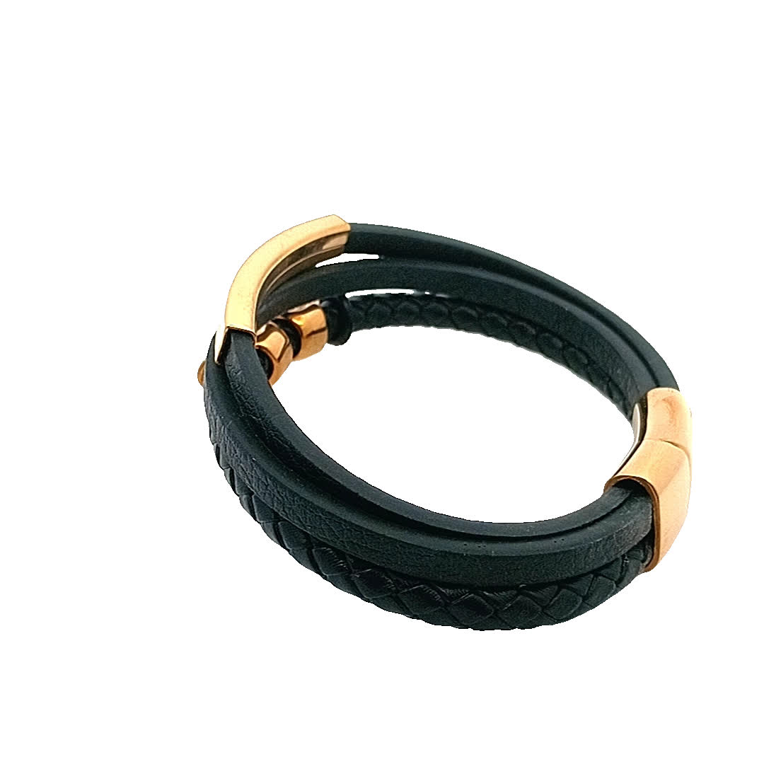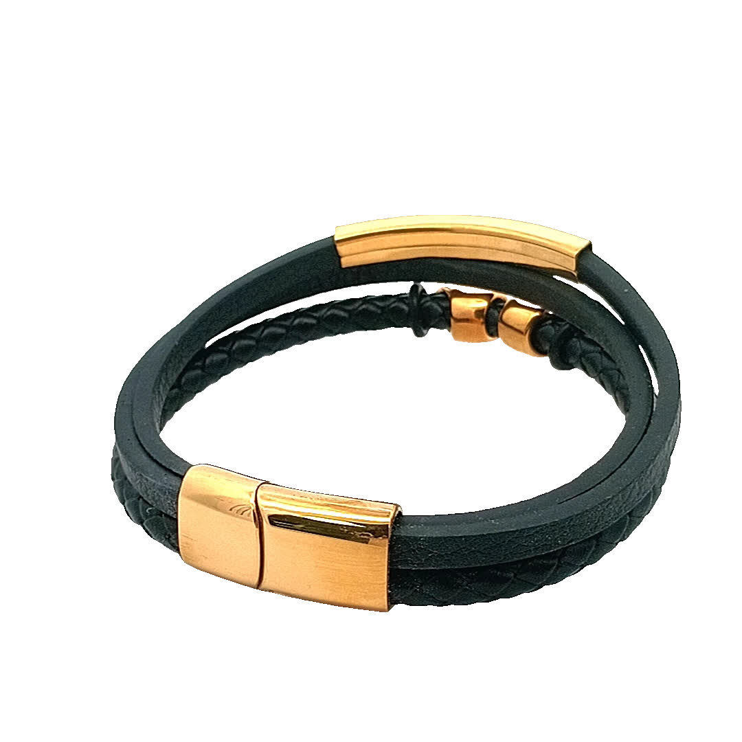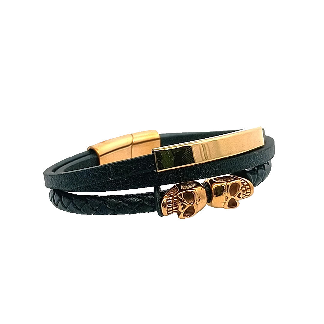 Ta awangardowa bransoletka z czaszką łączy w sobie elegancką czarną skórę z uderzającymi złocistymi akcentami. Idealna dla tych, którzy chcą zrobić odważne wrażenie, ma misternie zaprojektowane czaszki, które dodają odrobinę buntowniczego uroku. Noś ją samodzielnie lub zestaw z innymi elementami, aby uzyskać modny, warstwowy wygląd.