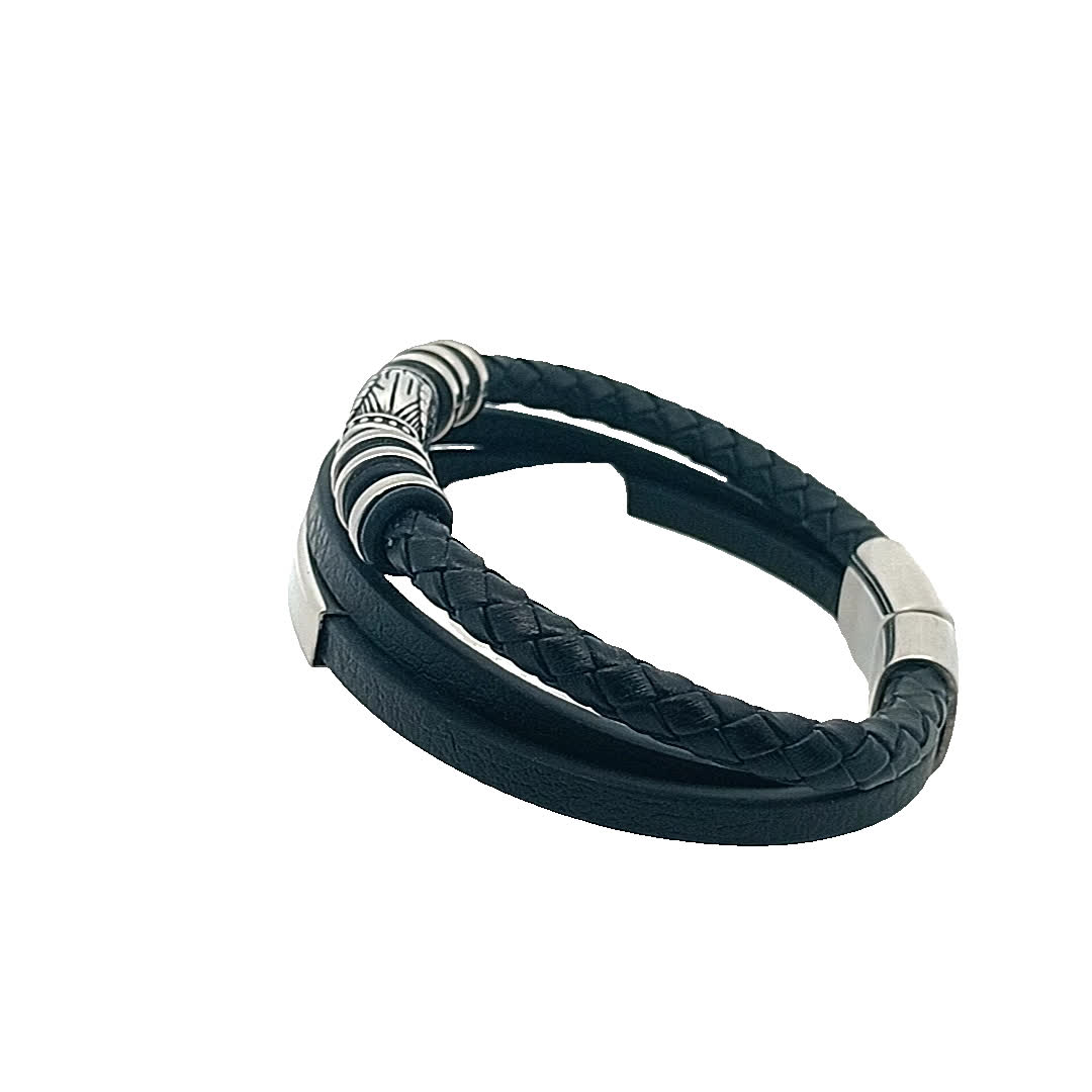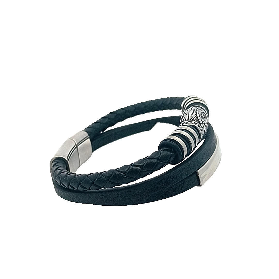 Podnieś poziom swoich dodatków dzięki temu stylowemu zestawowi czarnych skórzanych bransoletek. Ten zestaw, łączący w sobie wyjątkowe plecione i gładkie wzory, jest idealny zarówno na okazje codzienne, jak i formalne. Misterne detale i nowoczesny element zegarka dodają odrobinę wyrafinowania do każdego stroju.