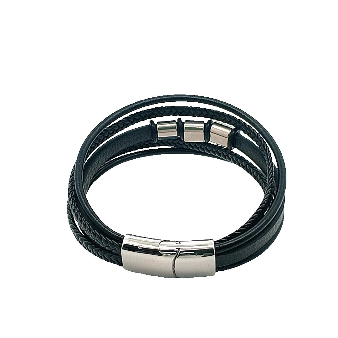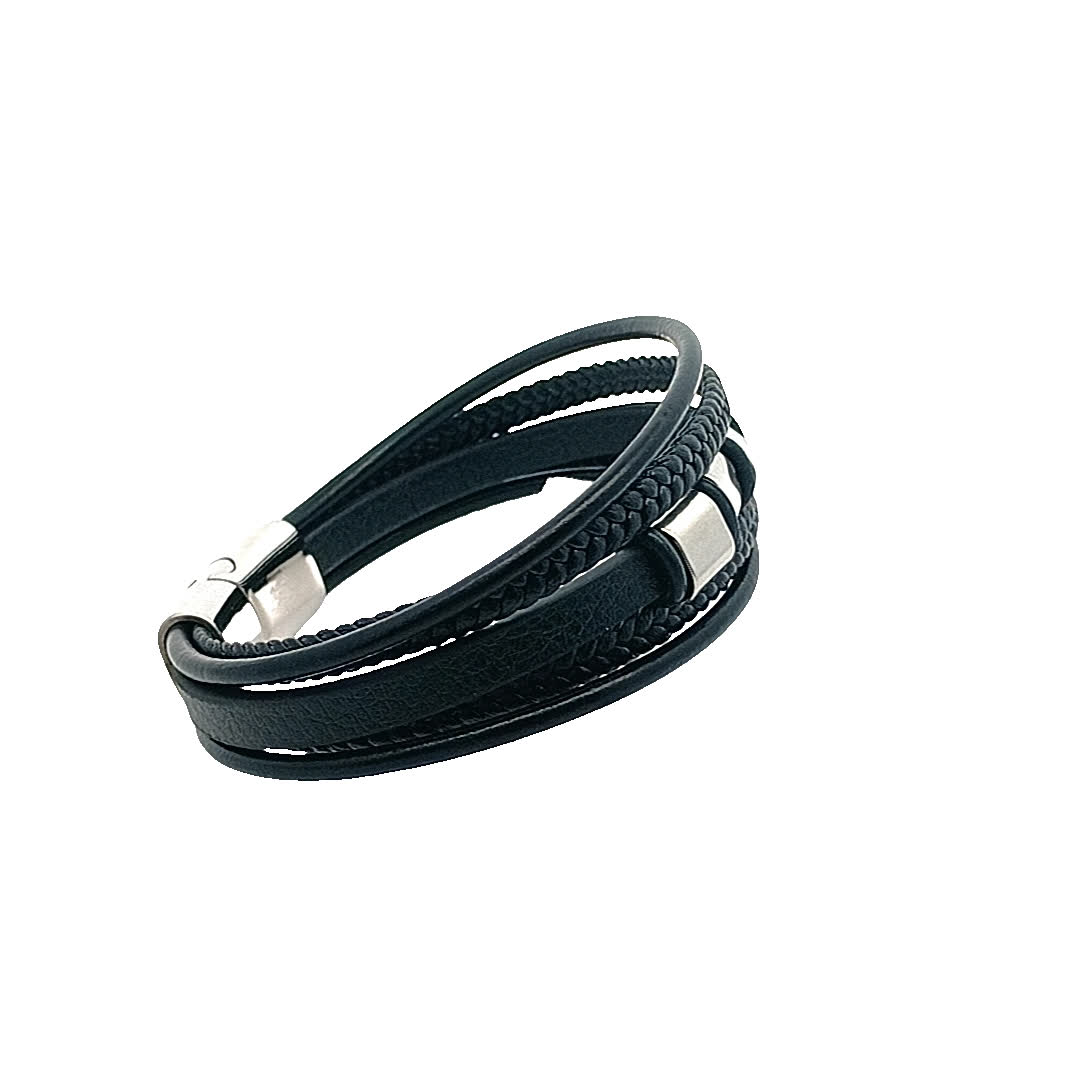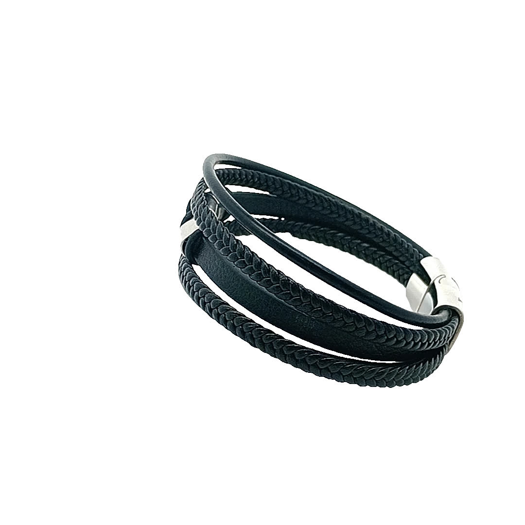 Ta stylowa czarna skórzana bransoletka ma wyjątkowy pleciony wzór, uzupełniony o eleganckie posrebrzane akcenty. Idealna zarówno na okazje codzienne, jak i formalne, dodaje odrobinę wyrafinowania do każdego stroju. Noś ją samodzielnie lub zestaw z innymi bransoletkami, aby uzyskać modny, warstwowy wygląd.