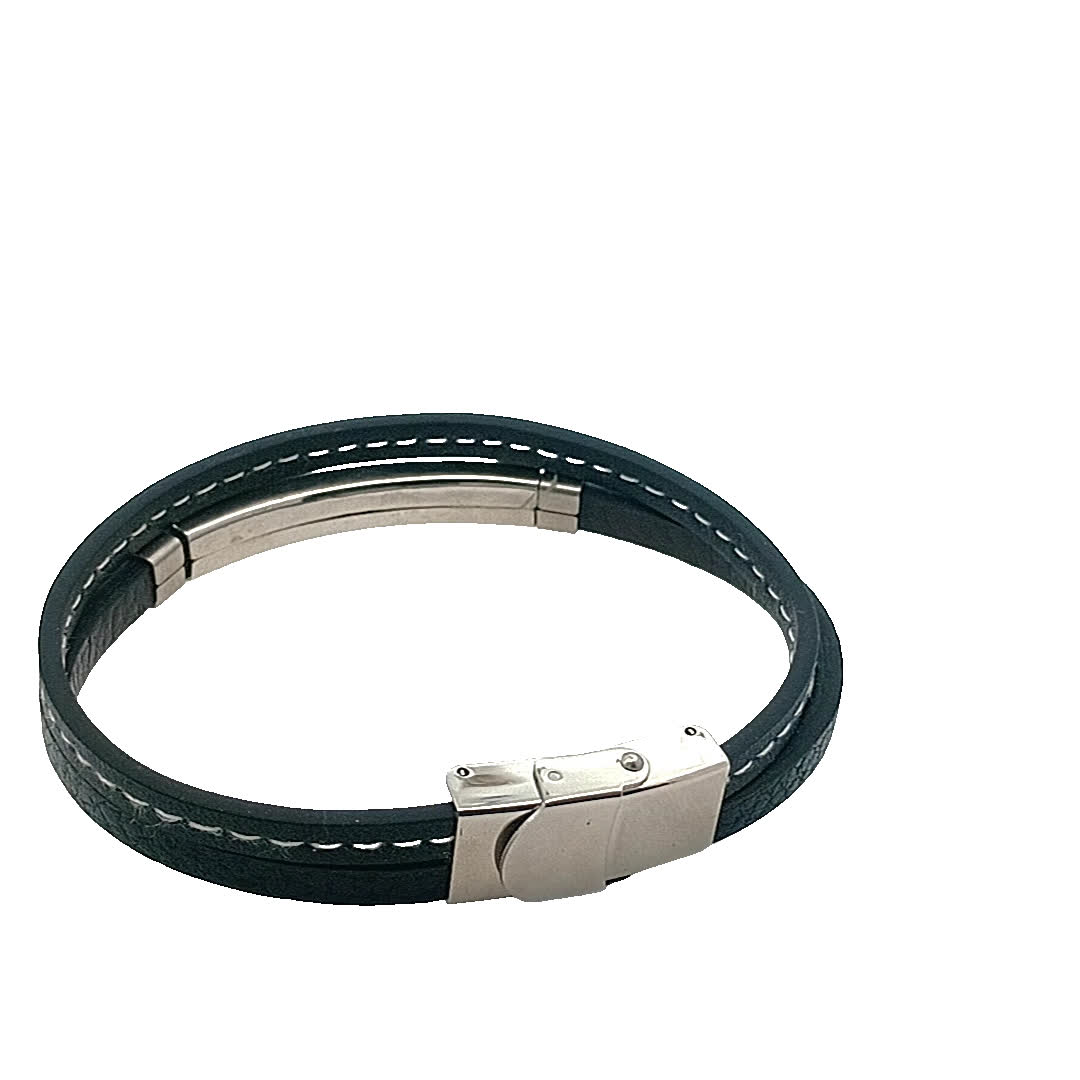 Podnieś poziom swoich dodatków dzięki tej stylowej czarnej skórzanej bransoletce. Elegancki design z metalowymi akcentami bez wysiłku łączy nowoczesną estetykę z klasycznym urokiem. Idealna zarówno na okazje codzienne, jak i formalne, ta bransoletka jest niezbędnym dodatkiem do Twojej kolekcji biżuterii.