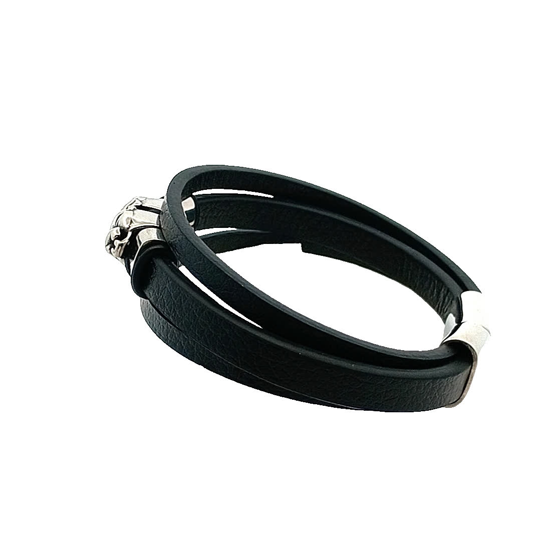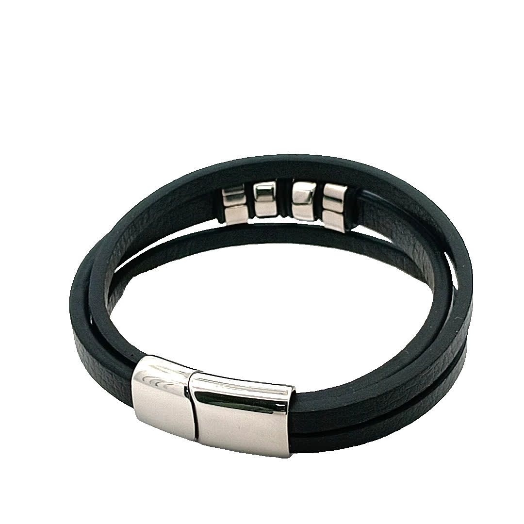 Podnieś poziom swoich dodatków dzięki tej stylowej czarnej skórzanej bransoletce. Dzięki eleganckiemu wzornictwu i wyjątkowemu zapięciu bez wysiłku łączy nowoczesną estetykę z ponadczasową elegancją. Idealna zarówno na okazje codzienne, jak i formalne, ta bransoletka jest niezbędnym dodatkiem do Twojej kolekcji biżuterii.