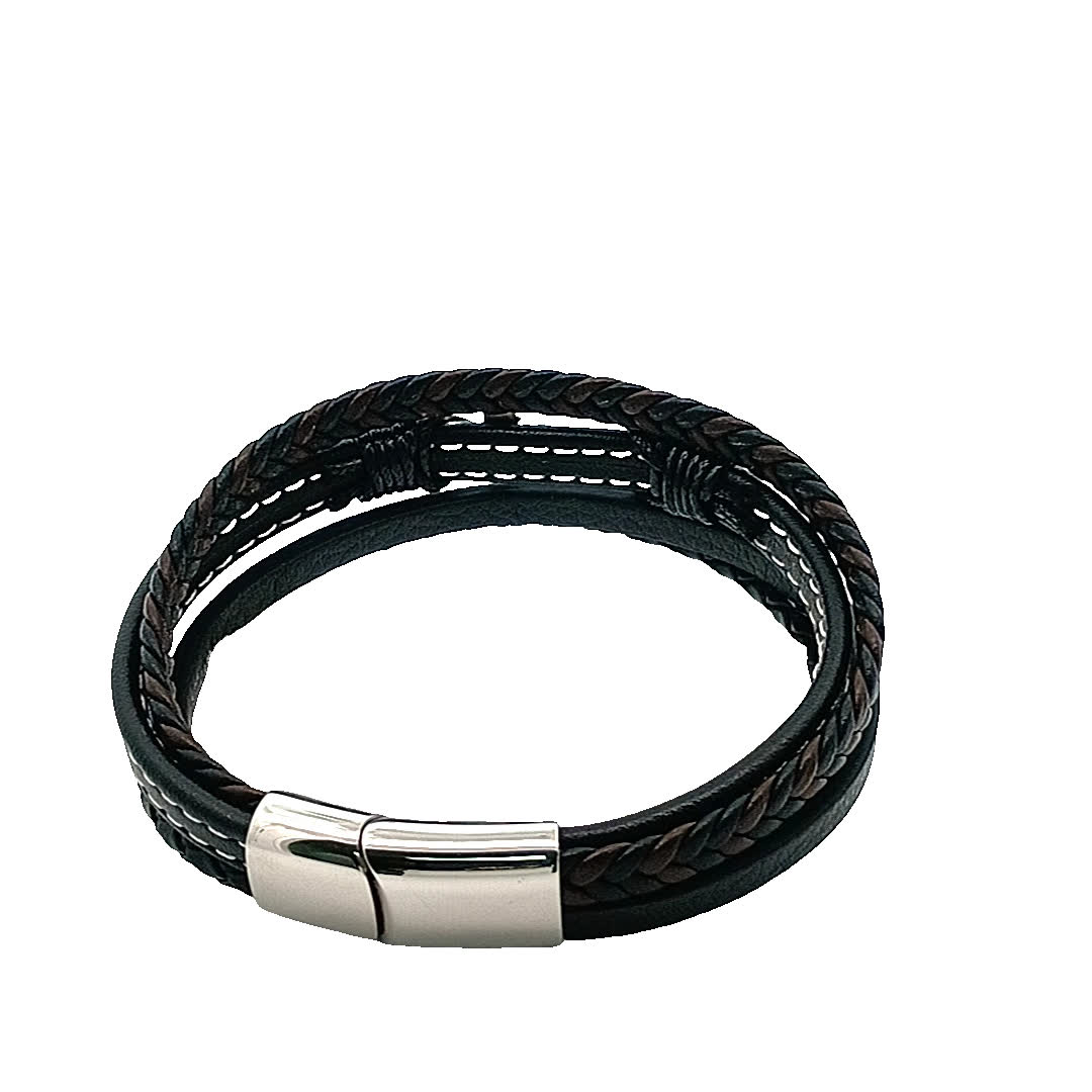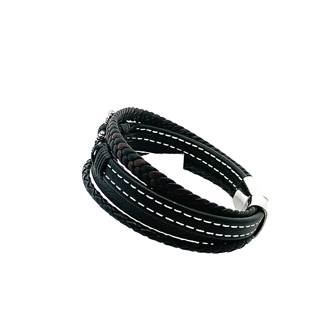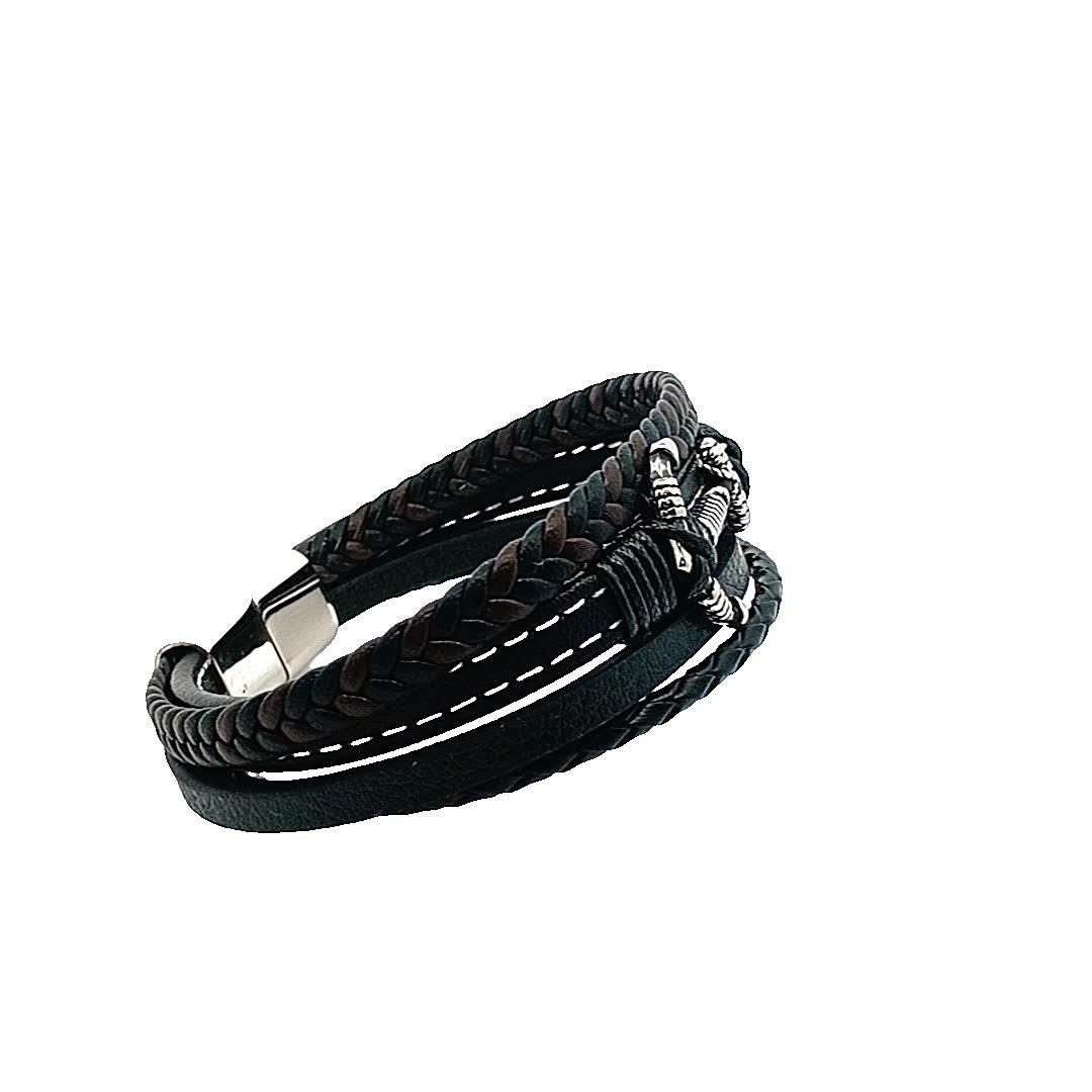Ta stylowa skórzana bransoletka owijana wyróżnia się wyjątkowym wzorem, który łączy w sobie plecione i gładkie tekstury, dzięki czemu jest idealnym dodatkiem do każdego stroju. Misterne detale i posrebrzane akcenty dodają odrobinę elegancji, zapewniając, że wyróżnisz się w każdym tłumie.