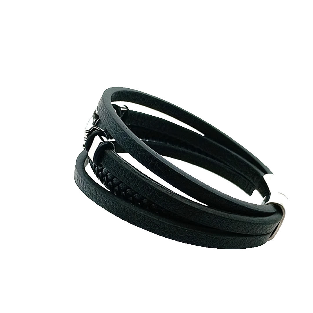 Stylowa czarna skórzana bransoletka