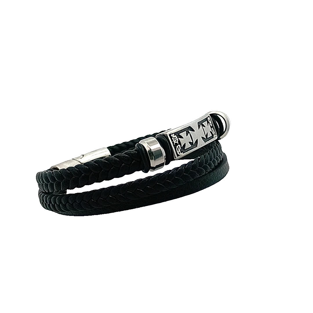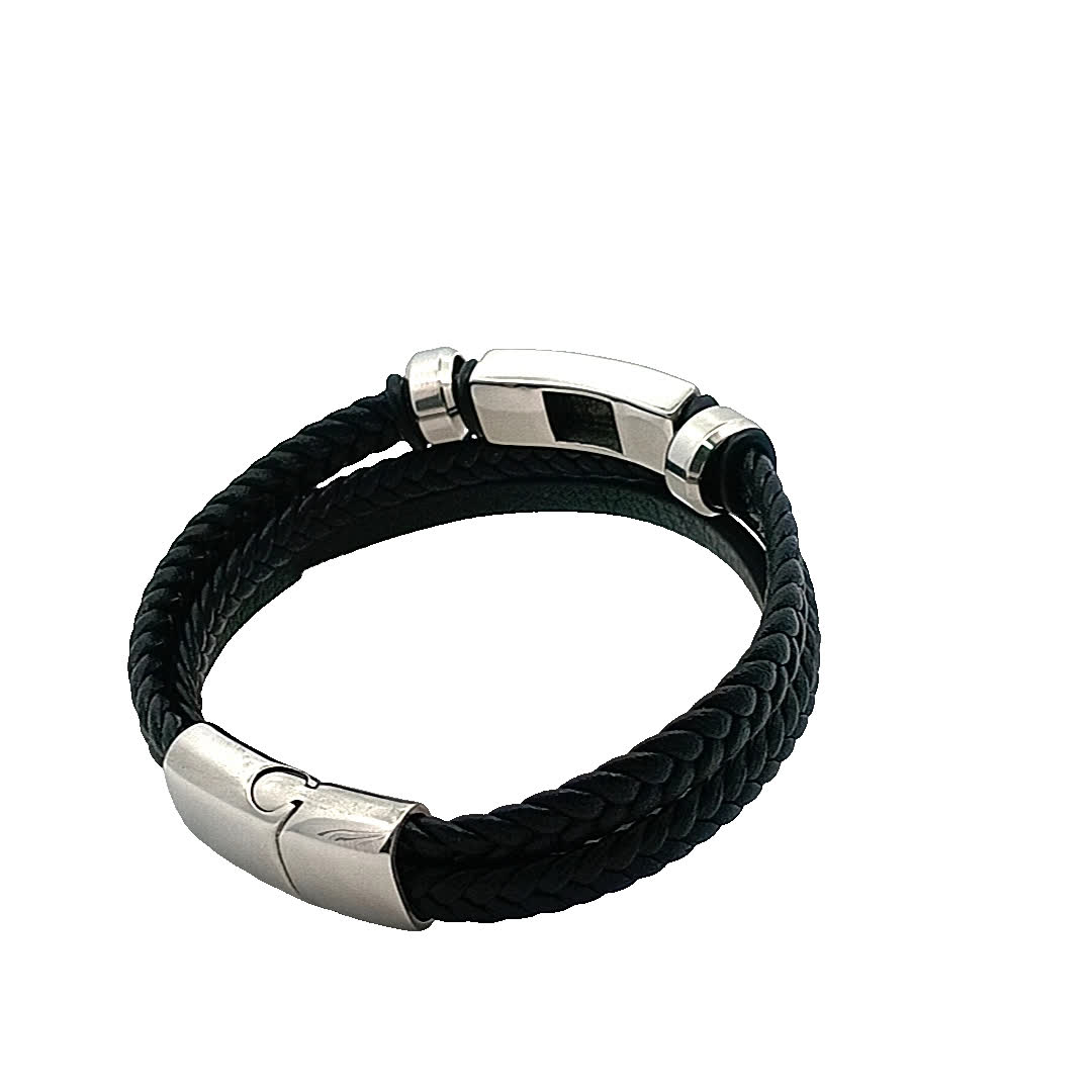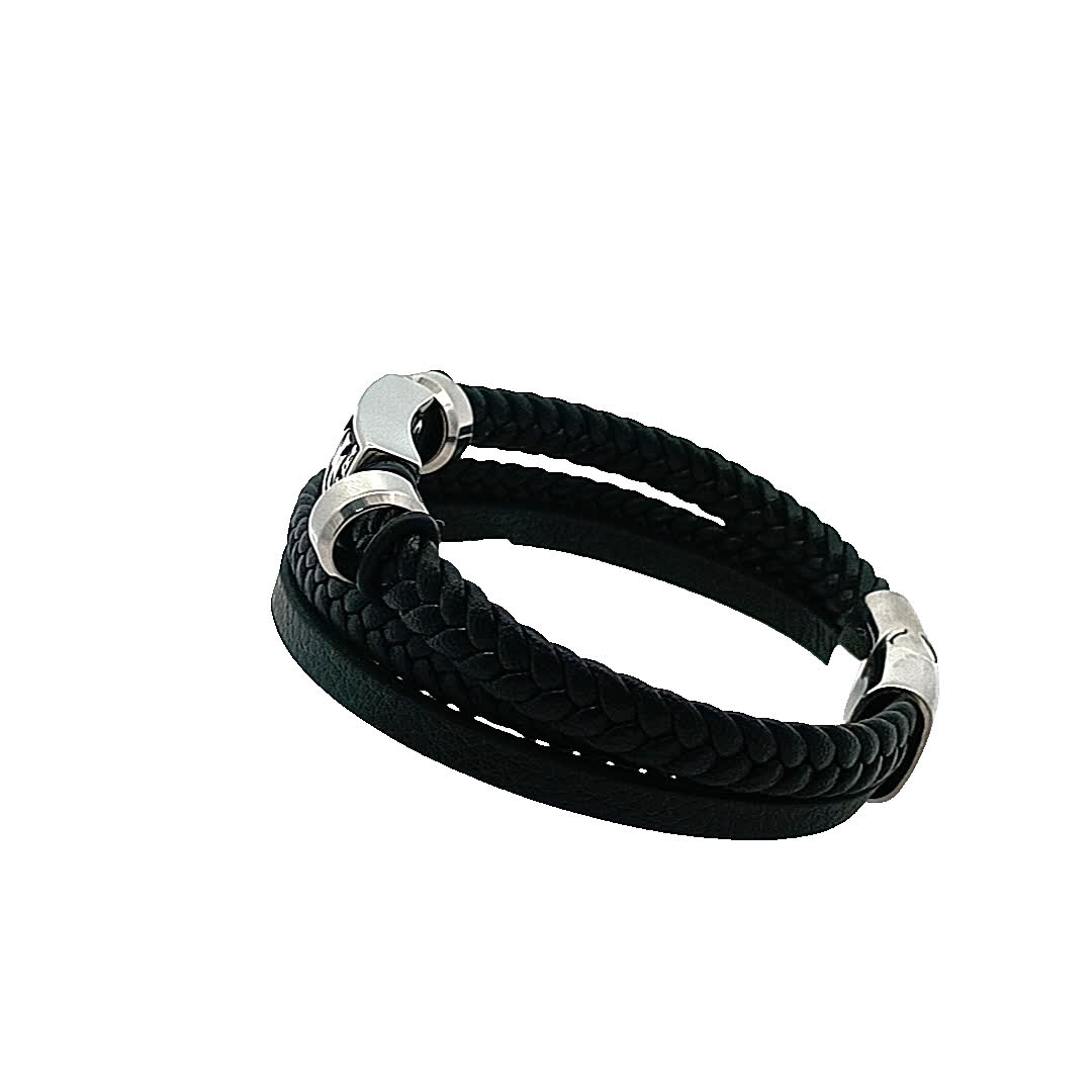 Podnieś poziom swoich dodatków dzięki tej stylowej czarnej skórzanej bransoletce. Dzięki wyjątkowemu plecionemu wzorowi i posrebrzanym akcentom doda odrobinę wyrafinowania każdej stylizacji. Idealna zarówno na okazje codzienne, jak i formalne, ta bransoletka to must-have dla entuzjastów mody.