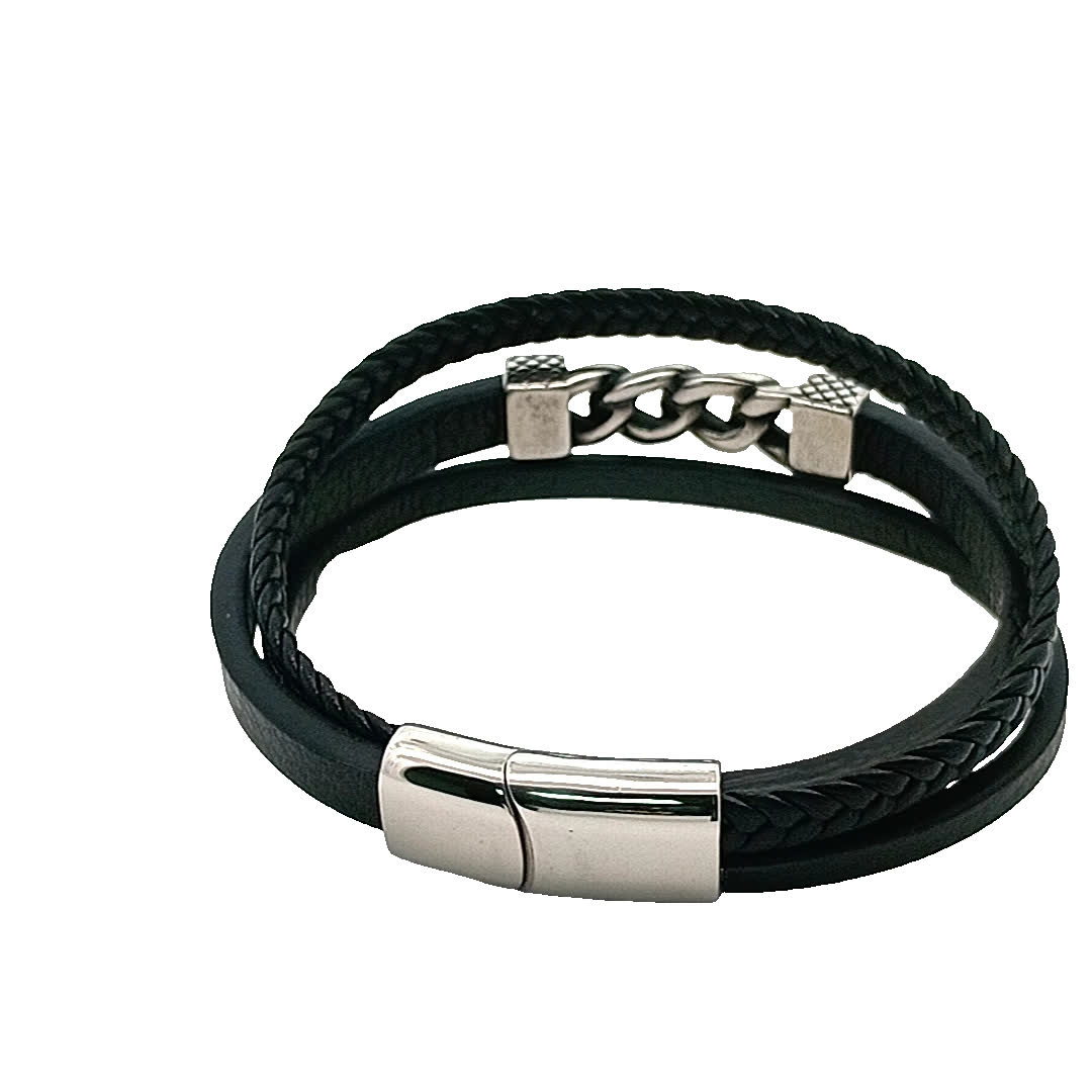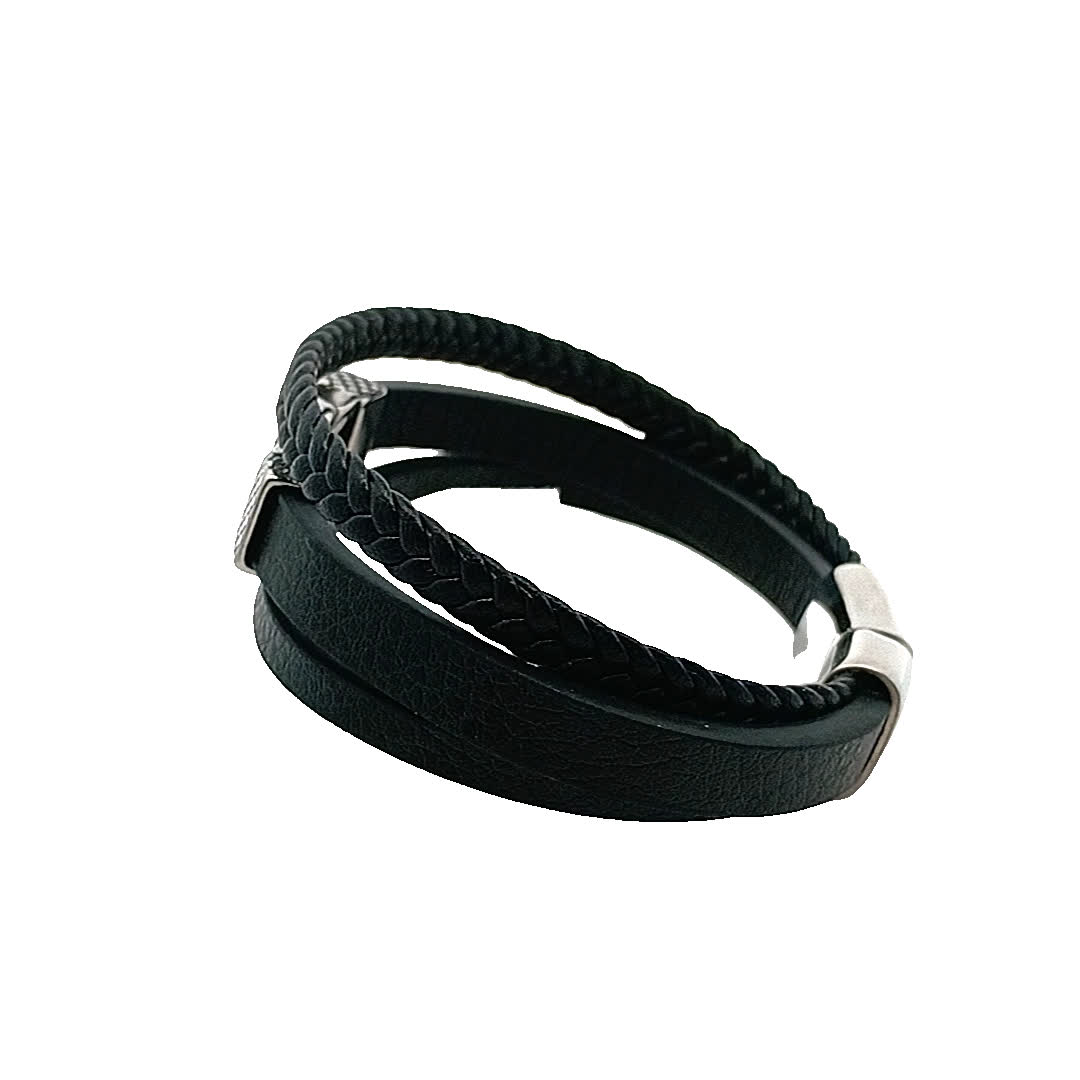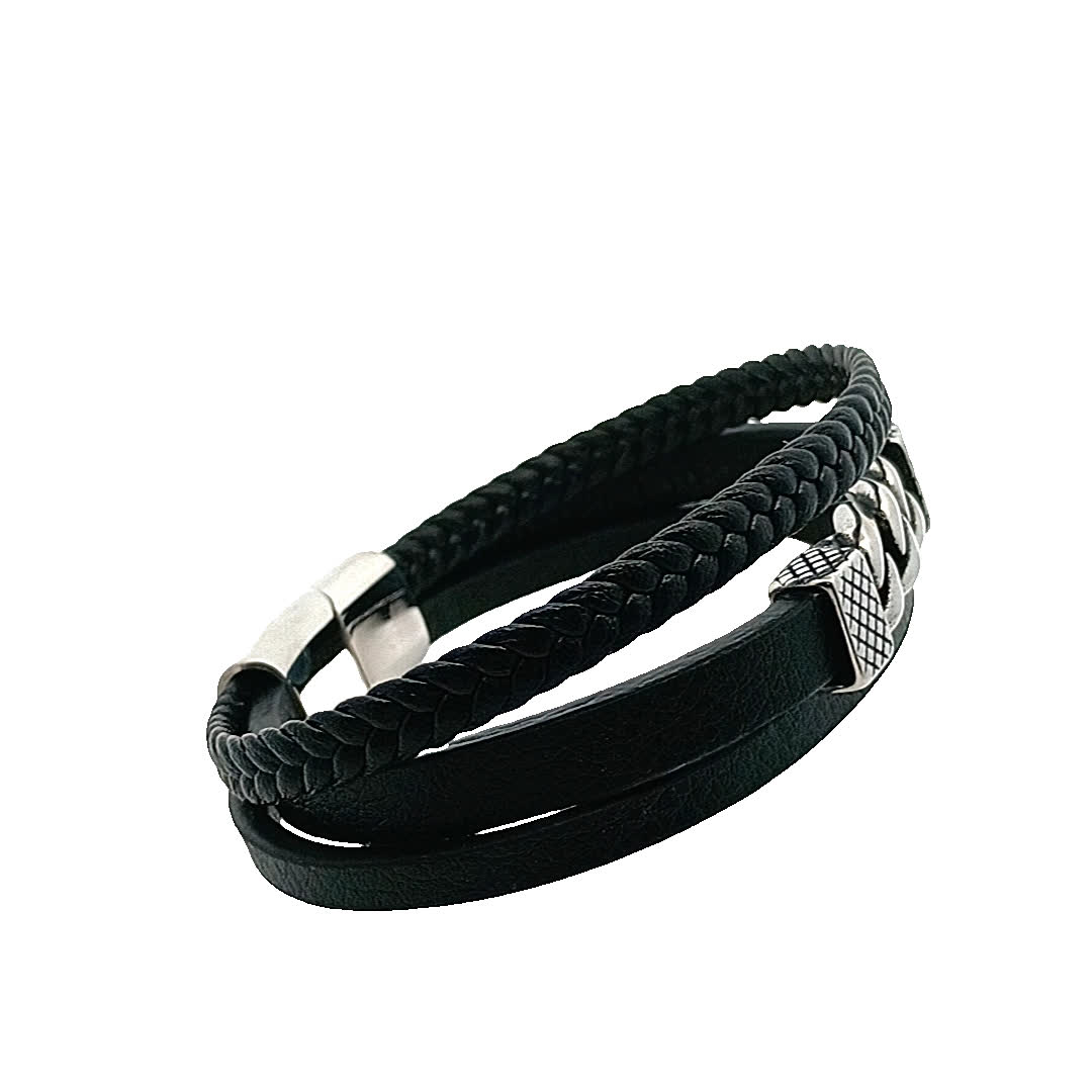 Podnieś poziom swoich dodatków dzięki tym stylowym czarnym skórzanym bransoletkom. Łącząc plecione i gładkie tekstury, oferują nowoczesny, ale ponadczasowy urok. Idealne do noszenia warstwowego lub solo, te bransoletki są zaprojektowane tak, aby uzupełniać każdy strój, dzięki czemu są wszechstronnym dodatkiem do Twojej kolekcji biżuterii.