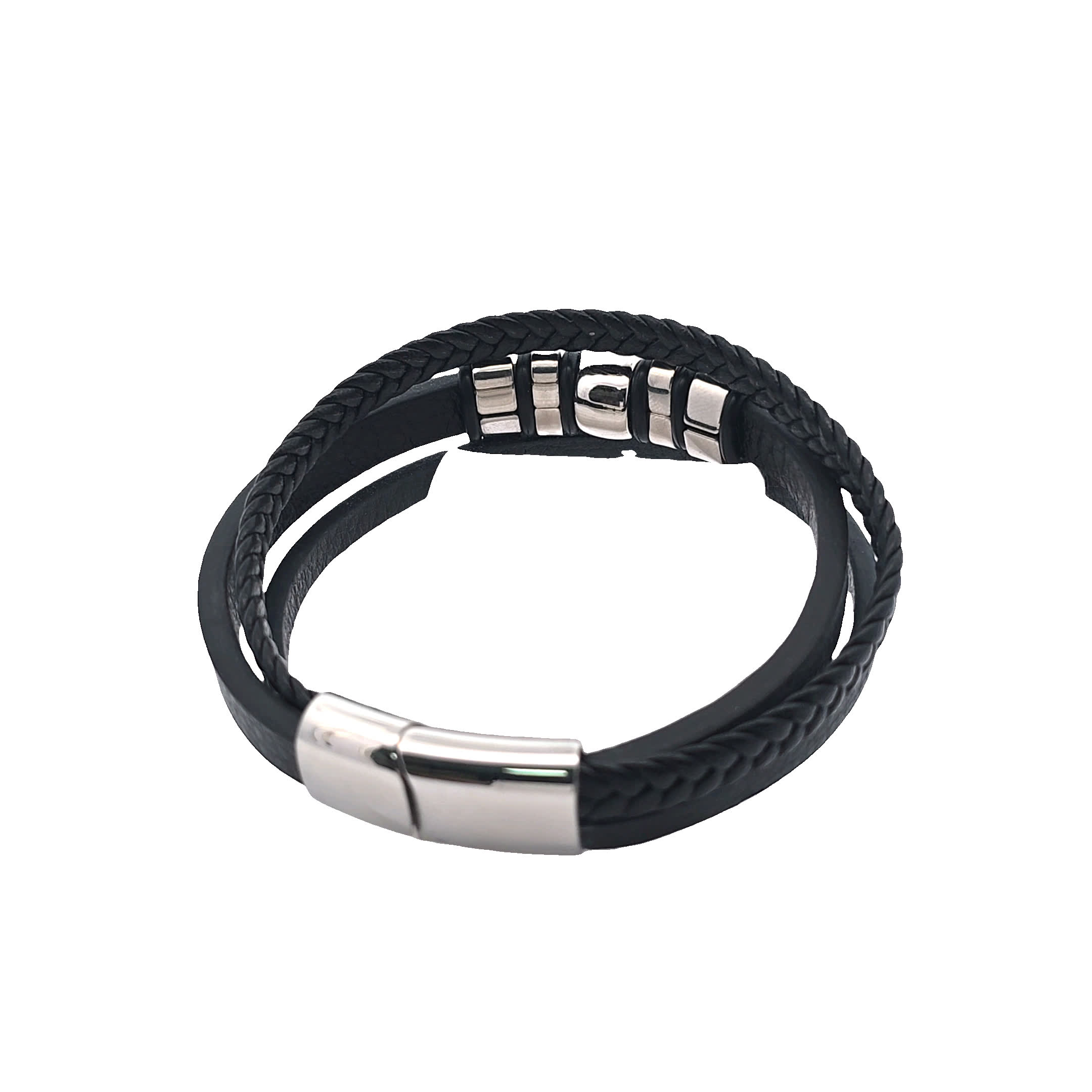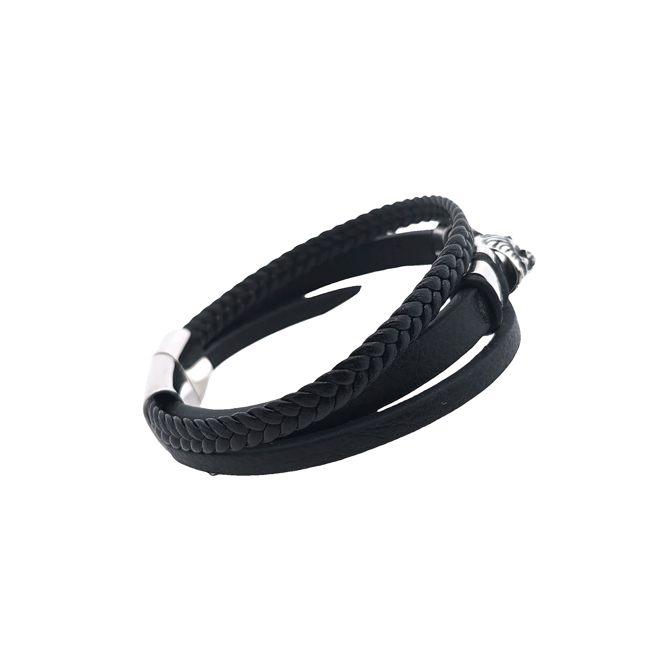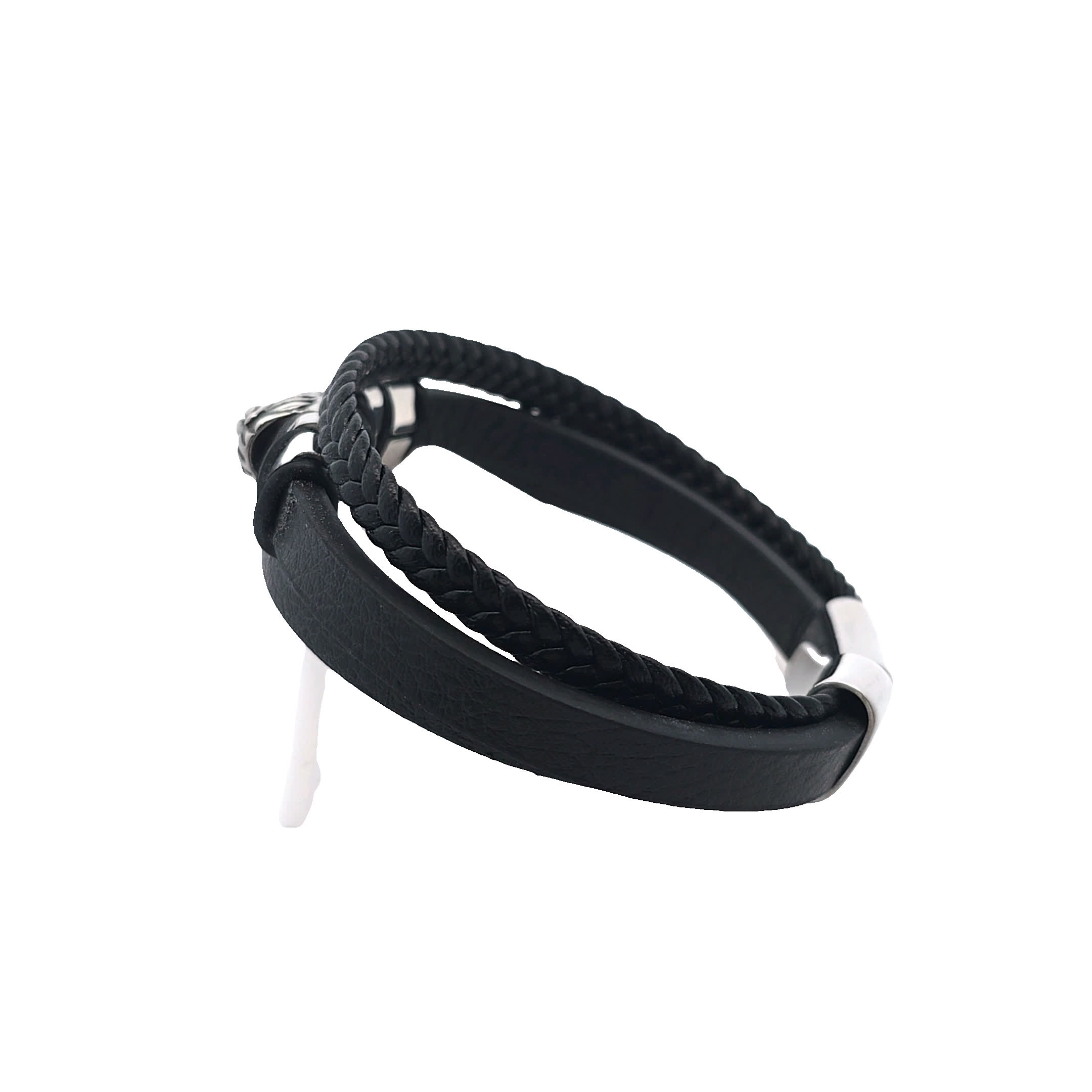 Podnieś poziom swoich dodatków dzięki temu stylowemu zestawowi czarnych skórzanych bransoletek. Wykonany z połączenia plecionej i gładkiej skóry, ten element jest idealny zarówno na okazje codzienne, jak i formalne. Wyjątkowe posrebrzane akcenty dodają odrobinę wyrafinowania, dzięki czemu jest to pozycja obowiązkowa w każdej kolekcji biżuterii.