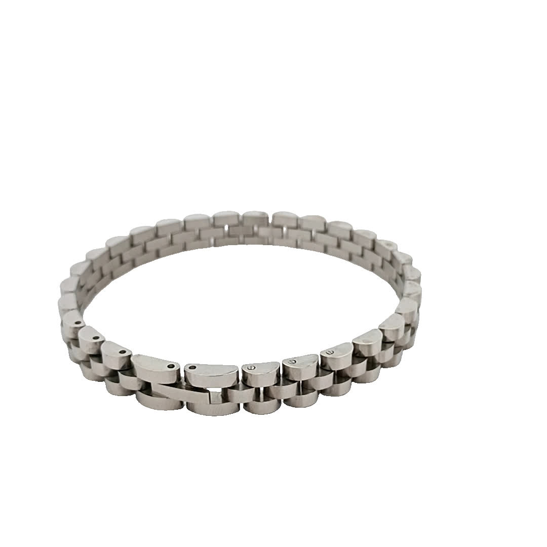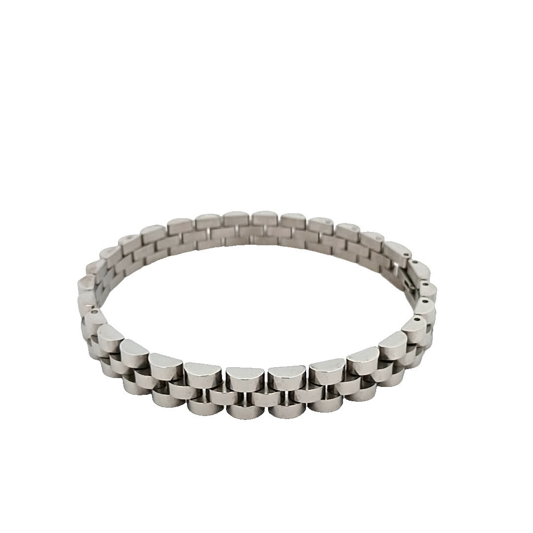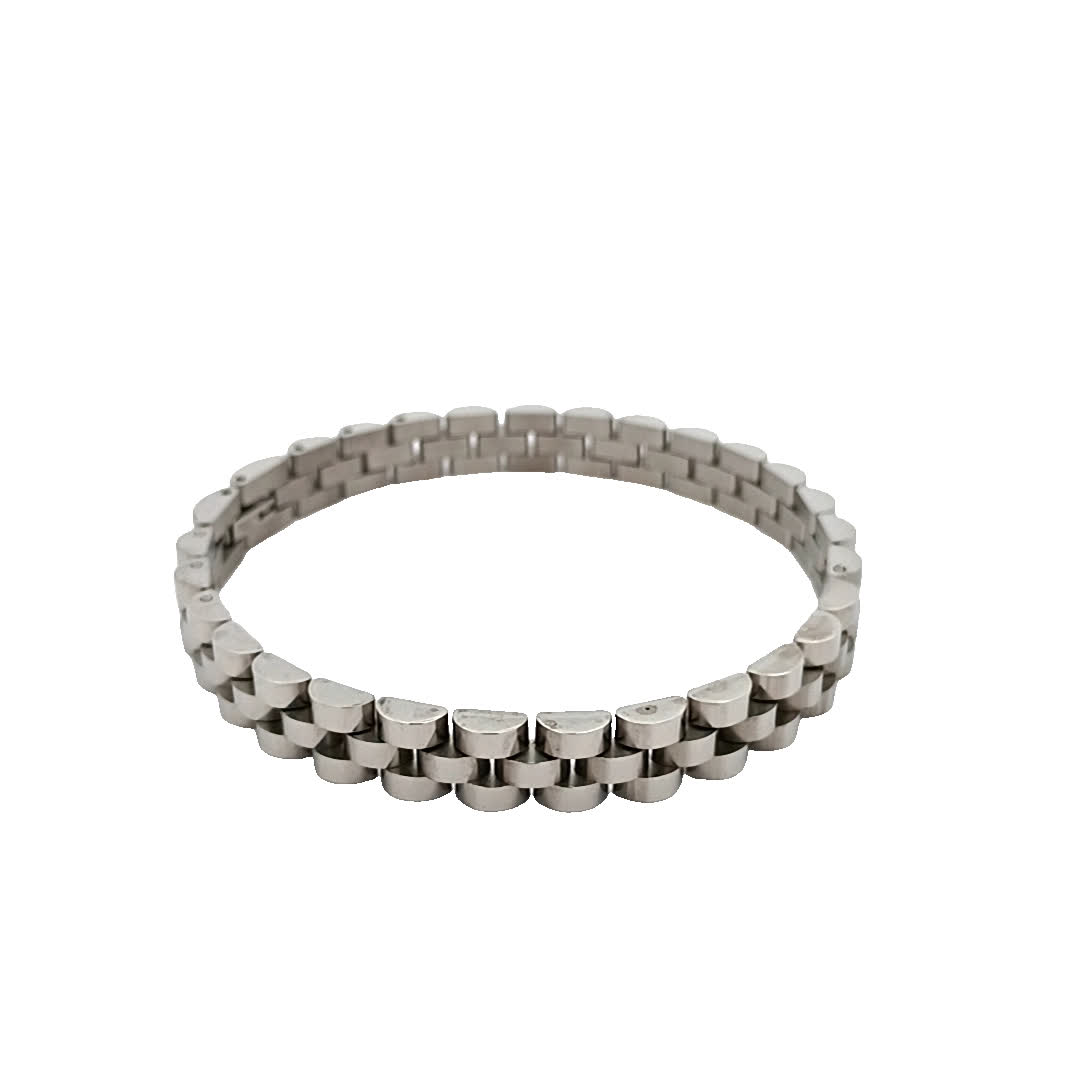 Ta oszałamiająca posrebrzana bransoletka ma elegancki i nowoczesny design, idealny na każdą okazję. Jej polerowane wykończenie dodaje odrobinę elegancji, dzięki czemu jest wszechstronnym dodatkiem, który można nosić samodzielnie lub w połączeniu z innymi elementami. Ulepsz swoją kolekcję biżuterii dzięki temu ponadczasowemu elementowi, który uzupełnia zarówno codzienne, jak i formalne stroje.