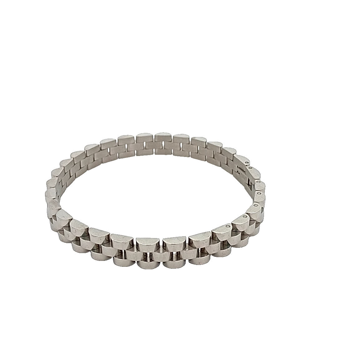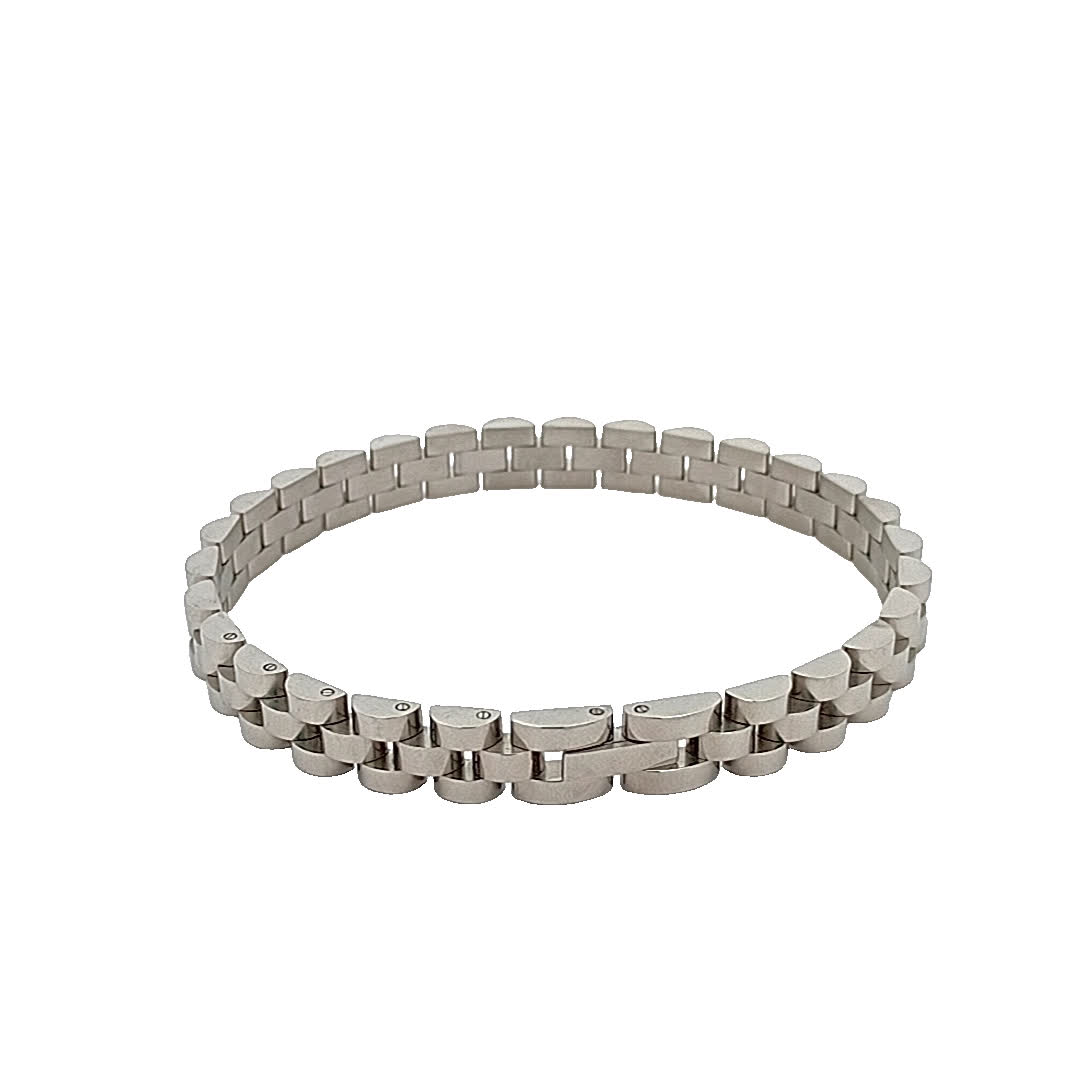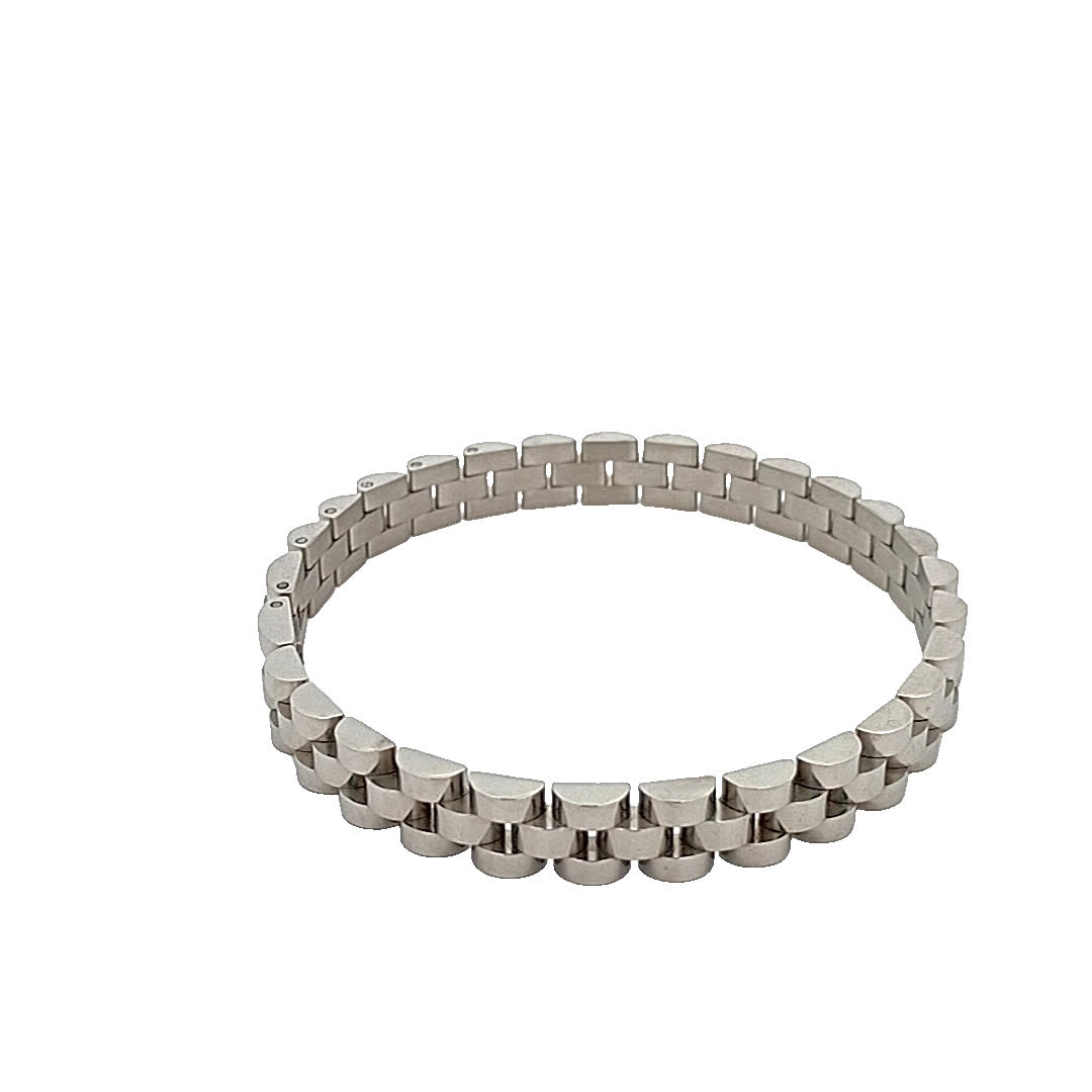 Ta elegancka posrebrzana bransoletka wyróżnia się wyjątkowym designem, który łączy nowoczesną estetykę z ponadczasowym urokiem. Jej gładkie, polerowane wykończenie sprawia, że jest wszechstronnym dodatkiem zarówno na okazje codzienne, jak i formalne. Idealna do noszenia warstwowo lub samodzielnie, ta bransoletka jest niezbędnym dodatkiem do każdej kolekcji biżuterii.