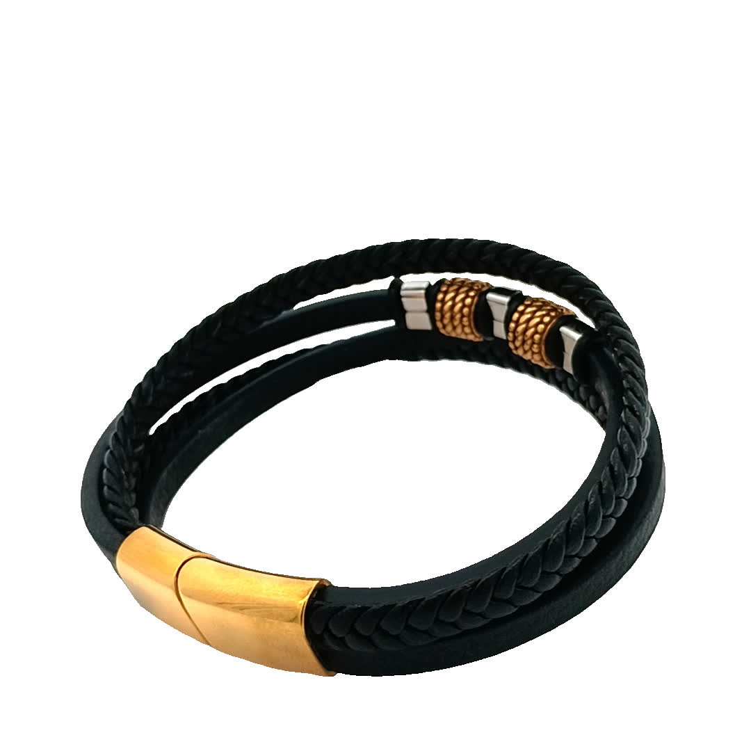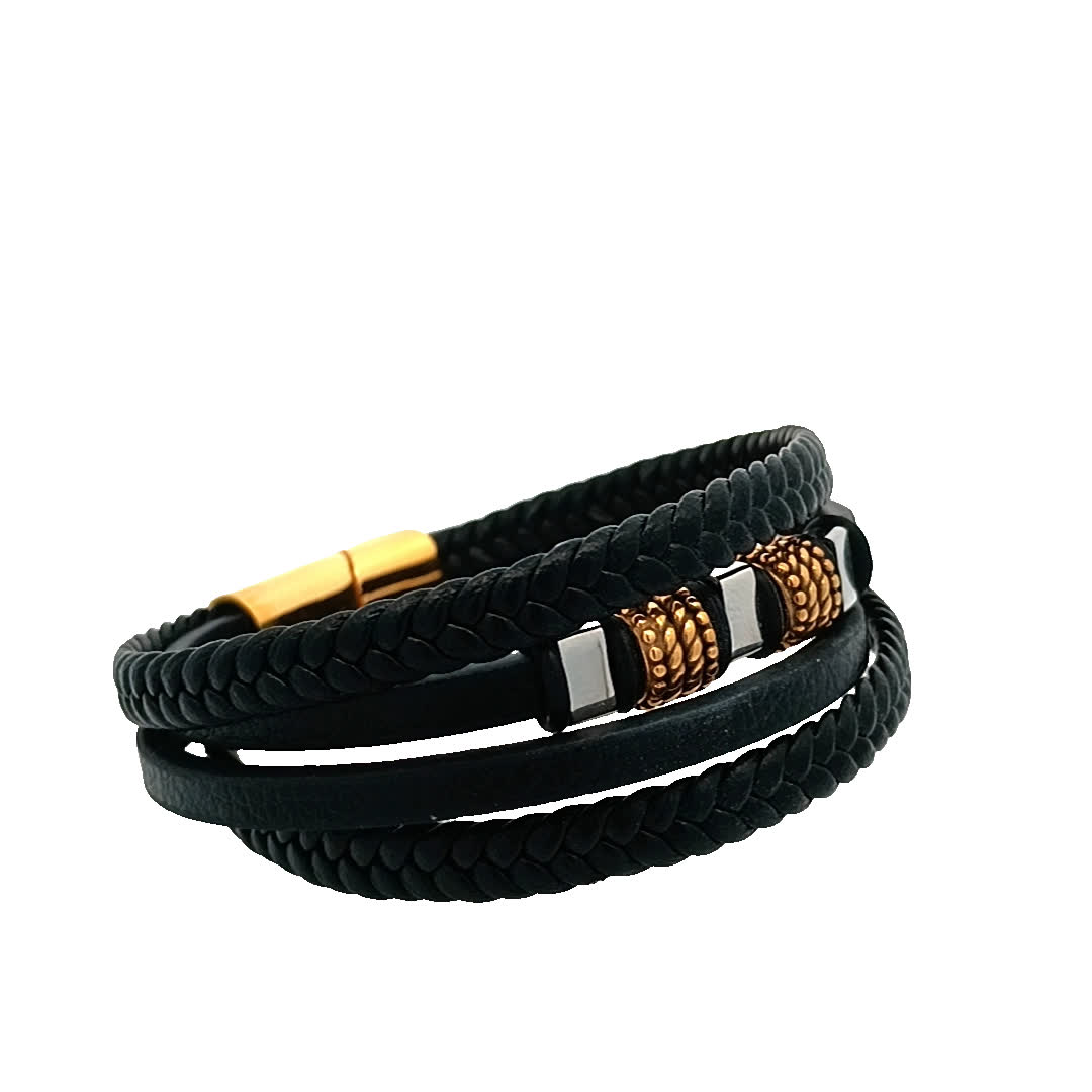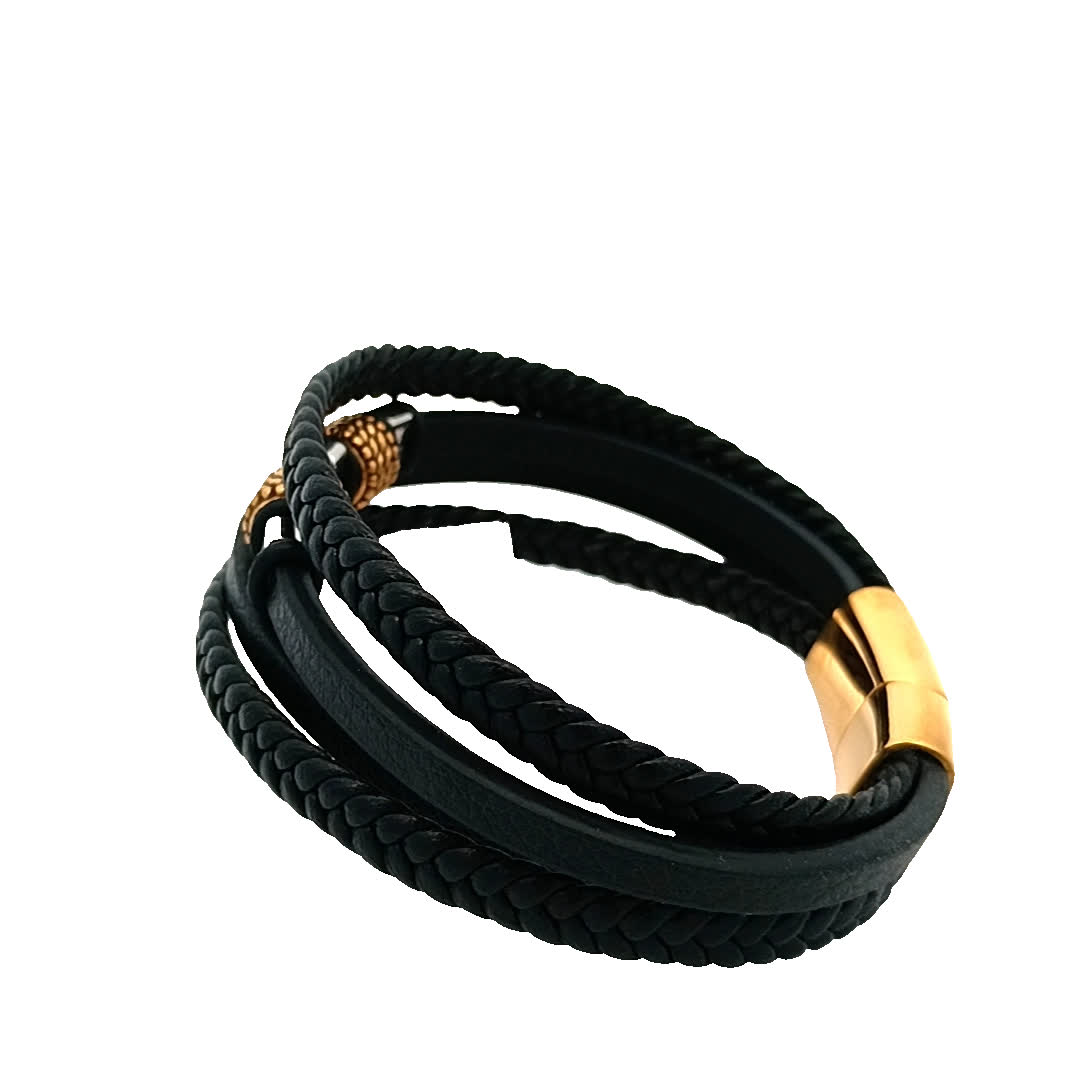 Ta stylowa czarna skórzana bransoletka ma wyjątkowy pleciony wzór, idealny do dodania odrobiny wyrafinowania do każdego stroju. Misterne detale z metalowymi akcentami tworzą uderzający kontrast, dzięki czemu jest wszechstronnym dodatkiem zarówno na okazje codzienne, jak i formalne.