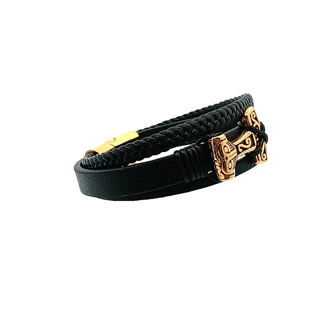 Podnieś poziom swoich dodatków dzięki tej stylowej czarnej skórzanej bransoletce. Dzięki wyjątkowemu plecionemu wzorowi i misternie wykonanej klamrze ten element jest idealny zarówno na okazje codzienne, jak i formalne. Jego wszechstronny wygląd sprawia, że jest niezbędnym dodatkiem do każdej kolekcji biżuterii.