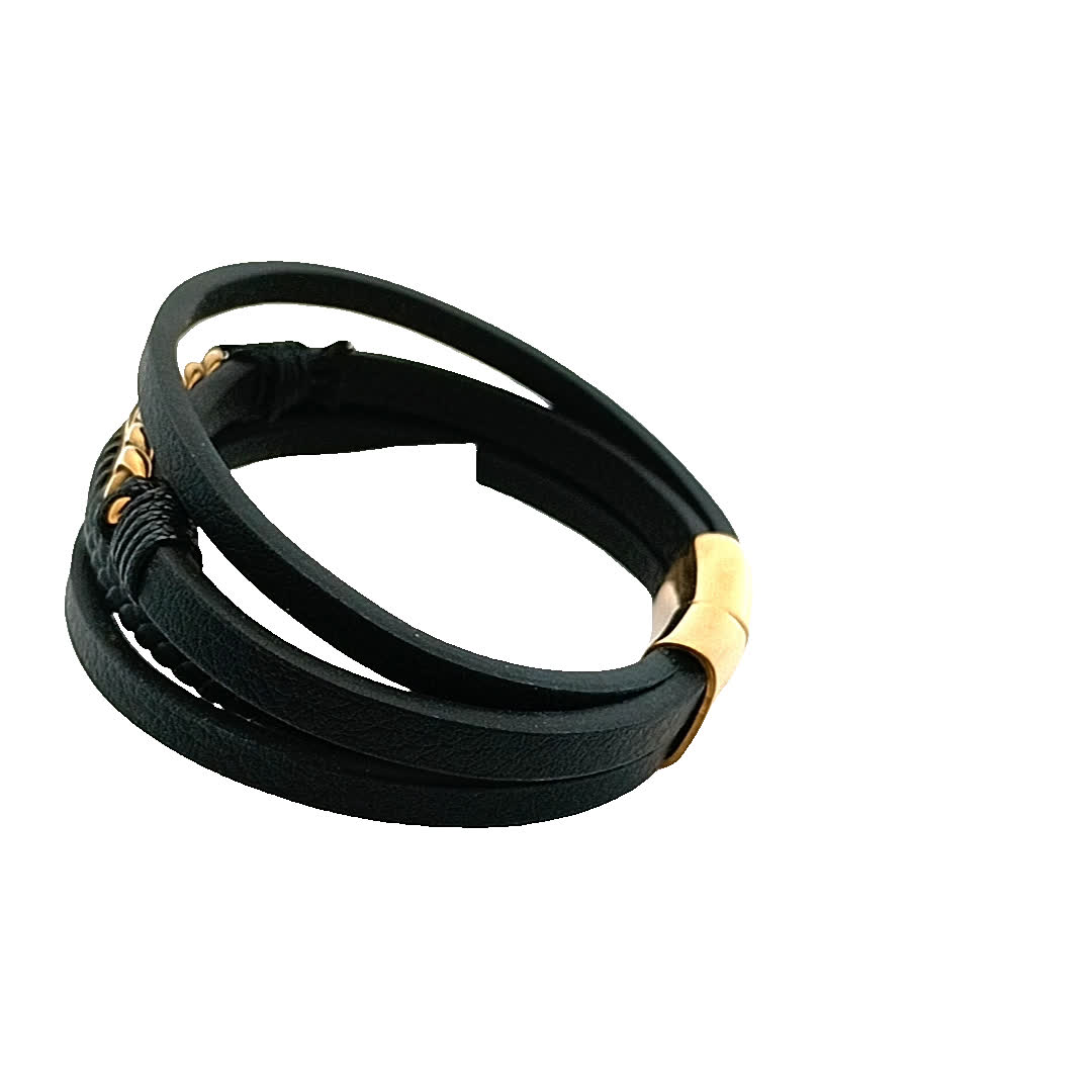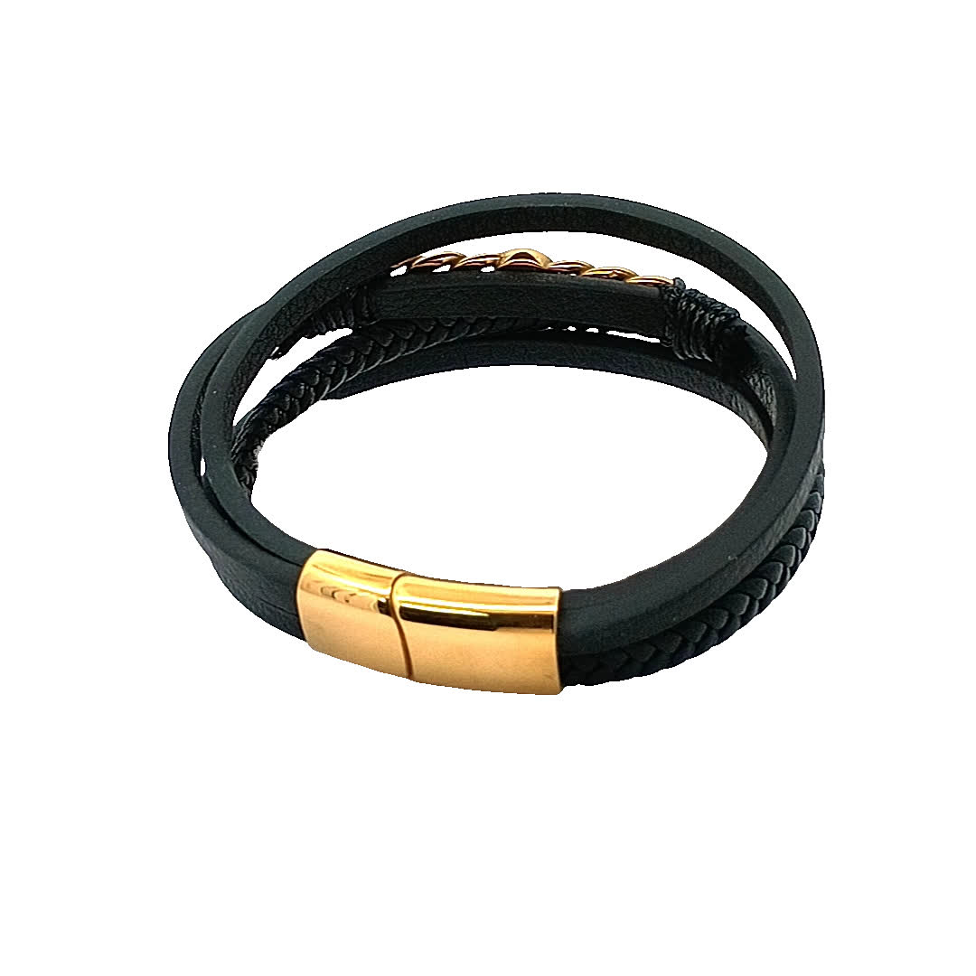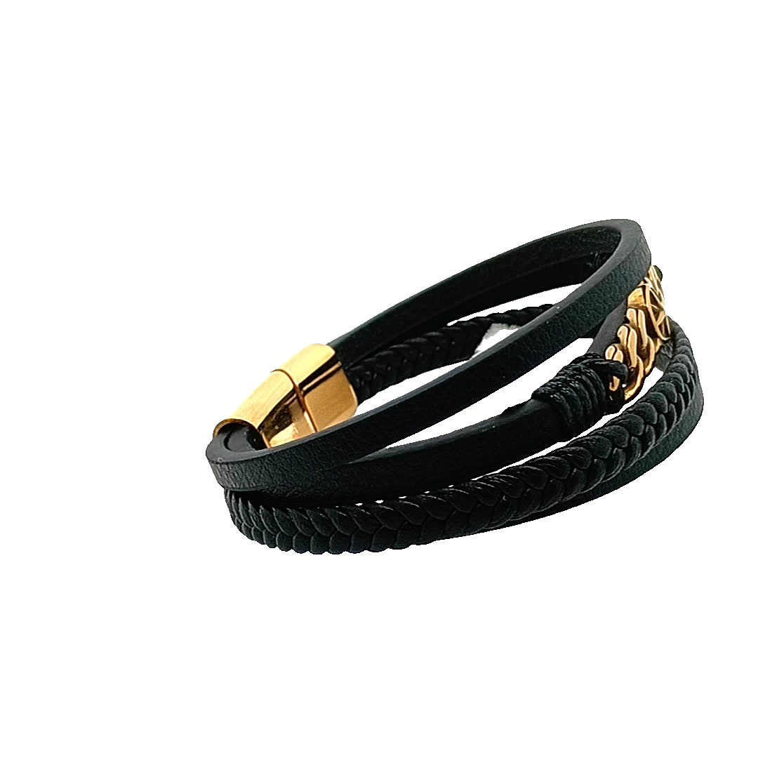 Podnieś poziom swoich dodatków dzięki tej stylowej czarnej skórzanej bransoletce. Dzięki unikalnemu połączeniu plecionych i gładkich tekstur dodaje odrobinę wyrafinowania do każdego stroju. Zapięcie w odcieniu złocona z motywem kompasu stanowi uderzający punkt centralny, dzięki czemu bransoletka idealnie nadaje się zarówno na okazje codzienne, jak i formalne.