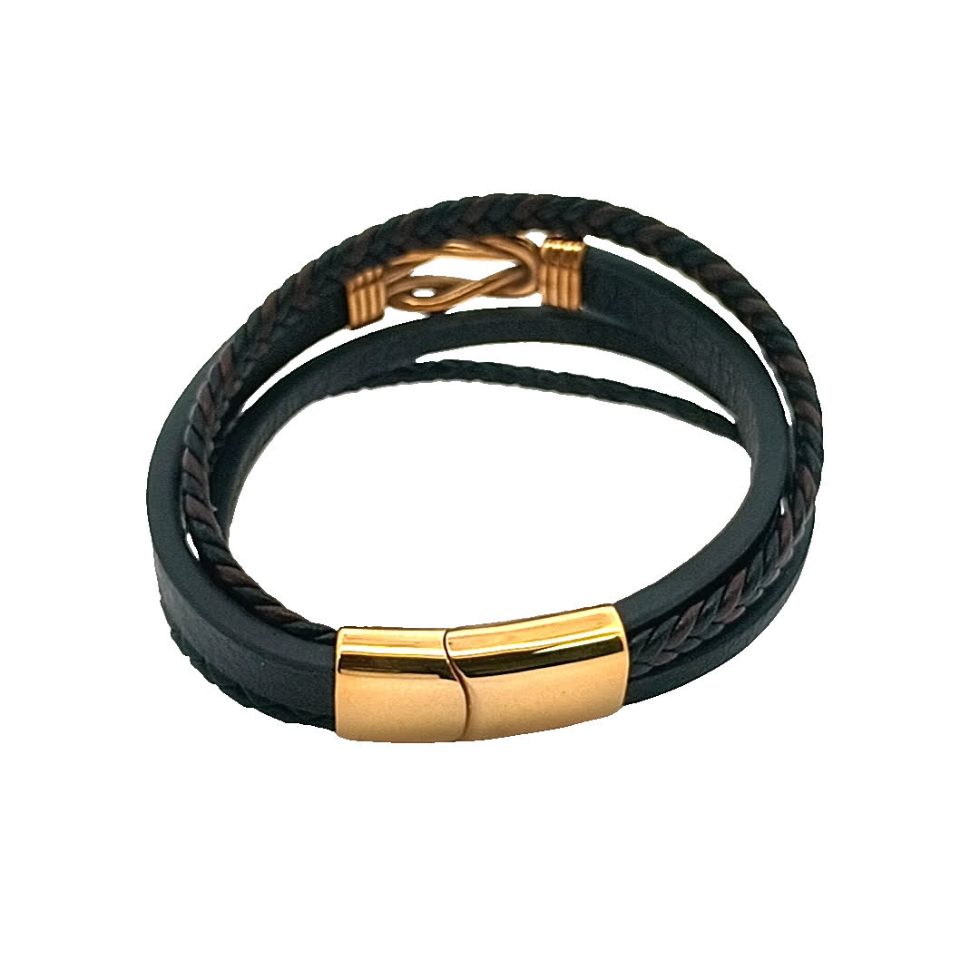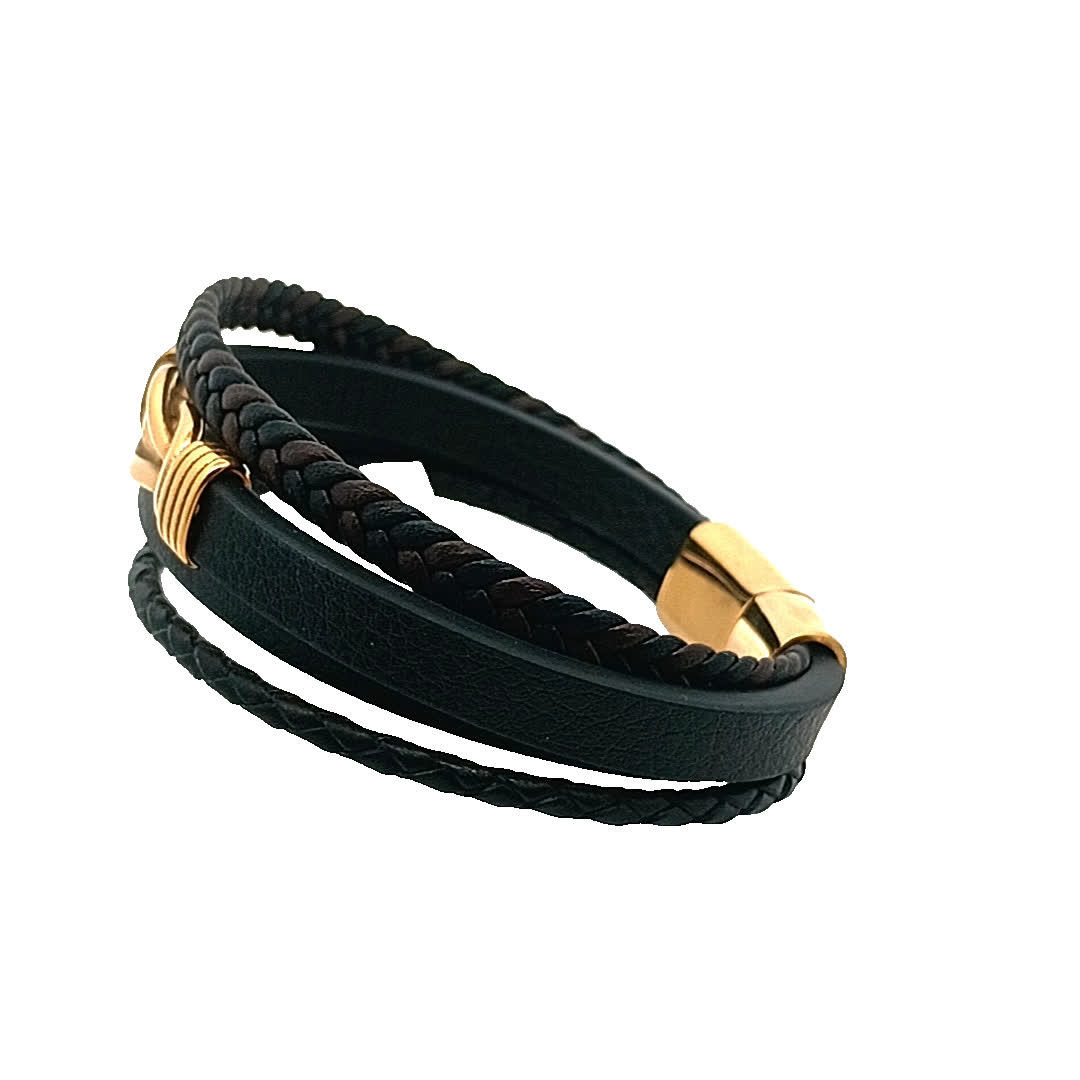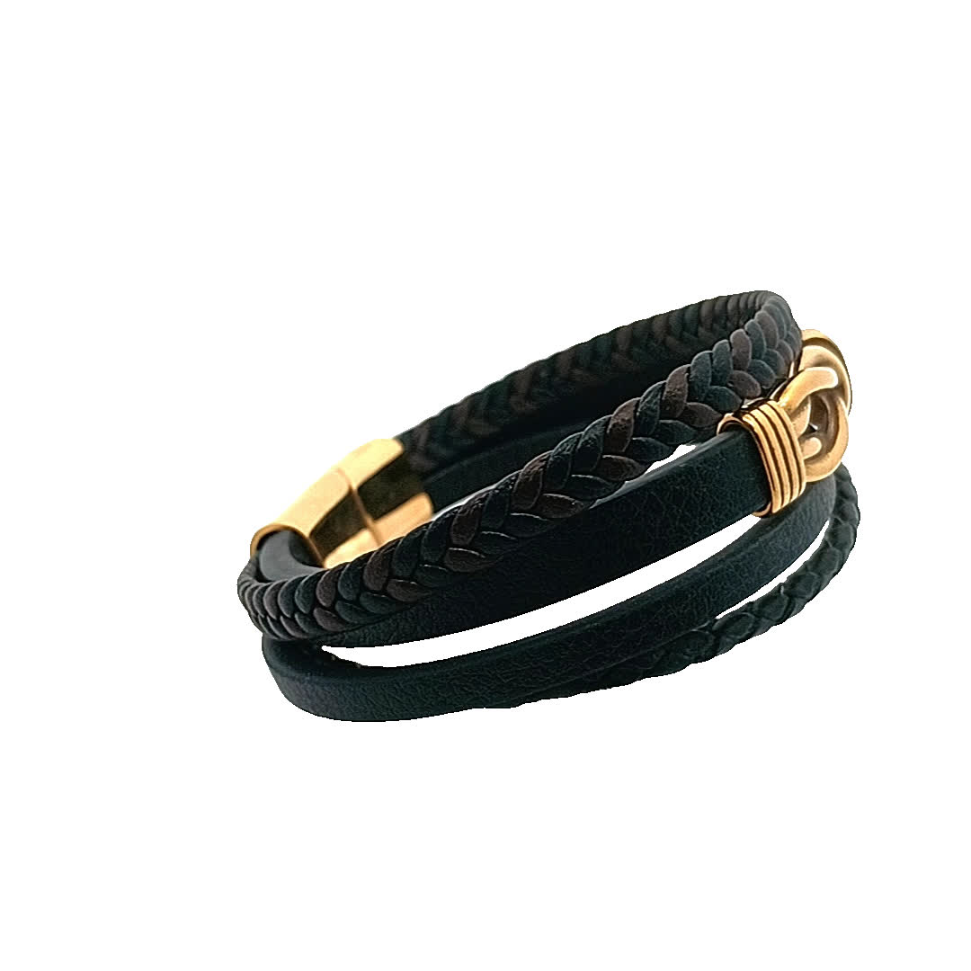 Podnieś poziom swoich dodatków dzięki tej stylowej skórzanej bransoletce z efektownym złocistym akcentem. Misterny pleciony wzór dodaje odrobinę wyrafinowania, dzięki czemu idealnie nadaje się zarówno na okazje codzienne, jak i formalne. Noś ją samodzielnie lub zestaw z innymi bransoletkami, aby uzyskać modny, warstwowy wygląd.