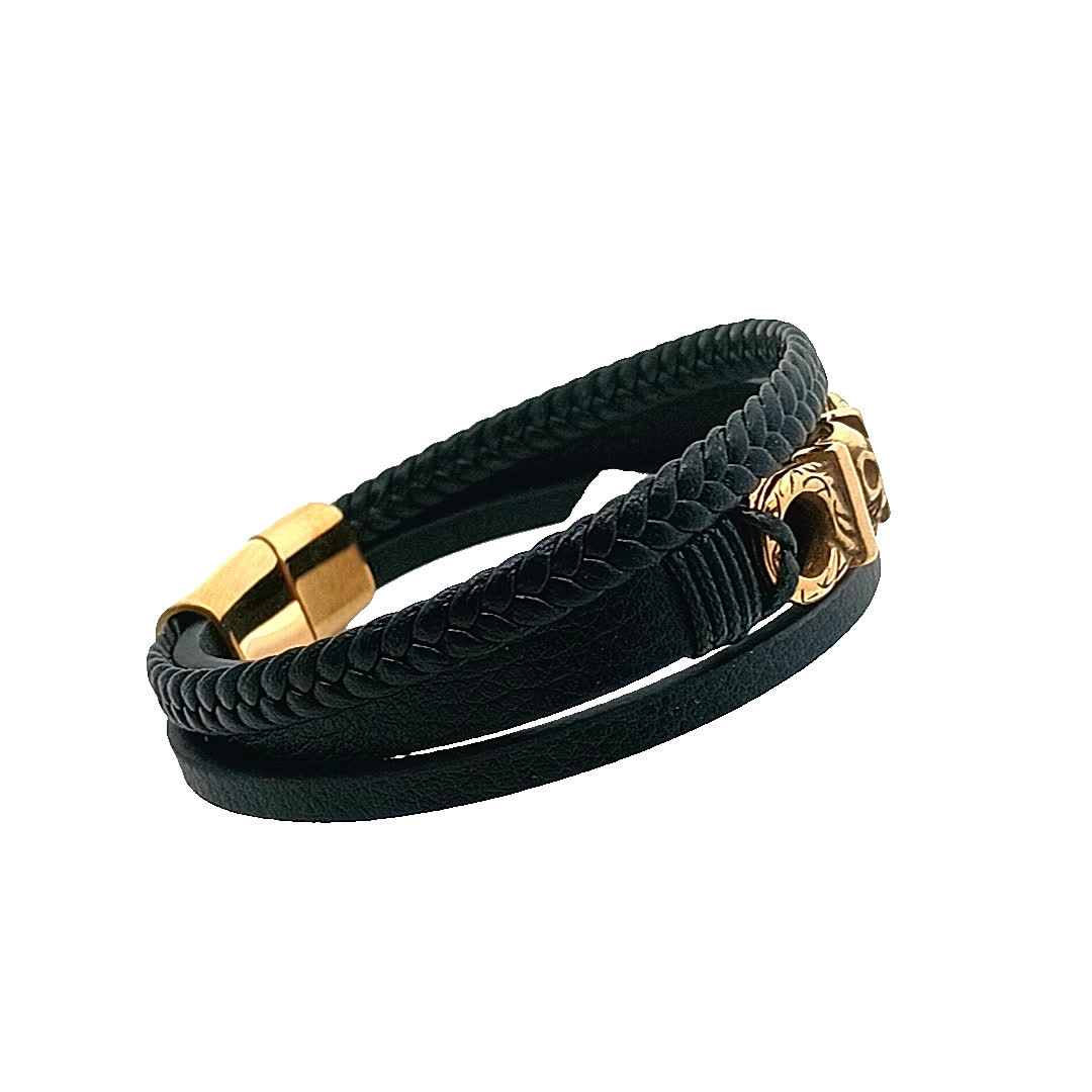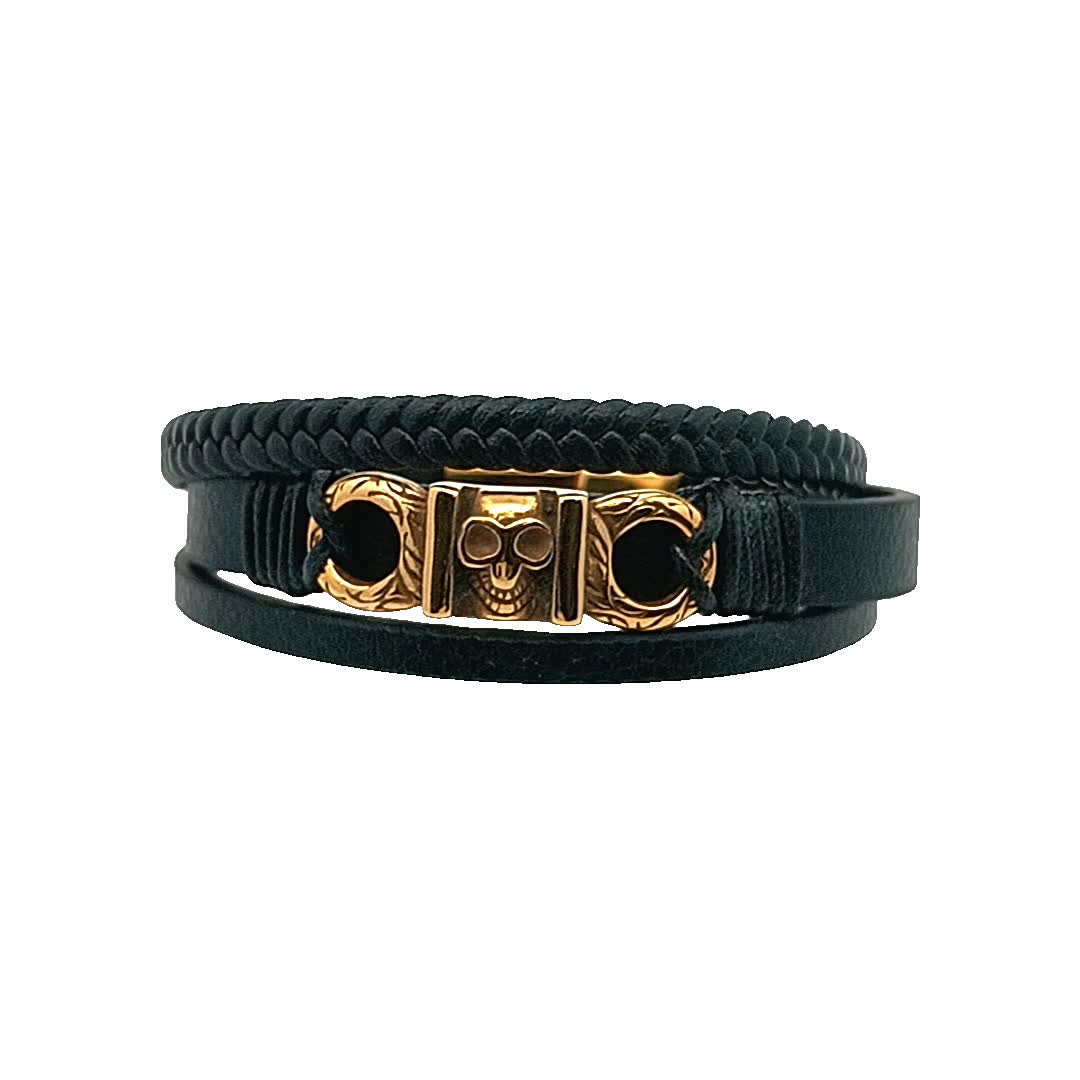 Ta uderzająca czarna skórzana bransoletka ma wyjątkowe zapięcie w kształcie czaszki, idealne do dodania odważnego akcentu do każdego stroju. Pleciony wzór zapewnia zarówno wygodę, jak i styl, dzięki czemu jest wszechstronnym dodatkiem zarówno na okazje codzienne, jak i formalne.