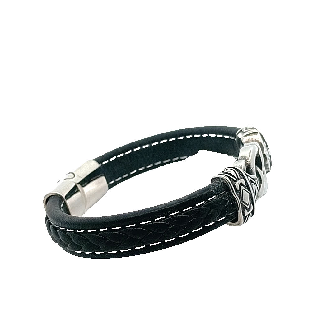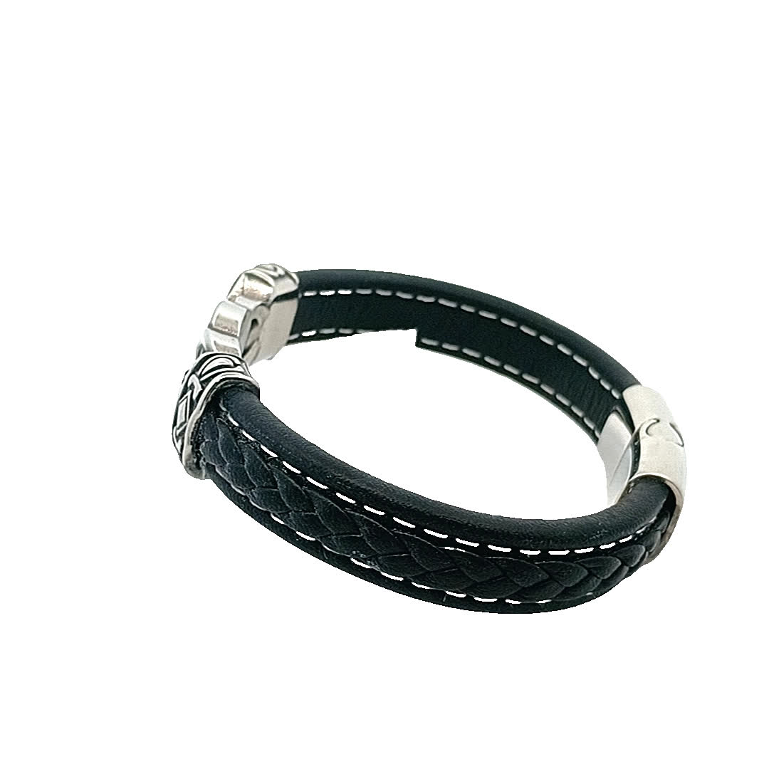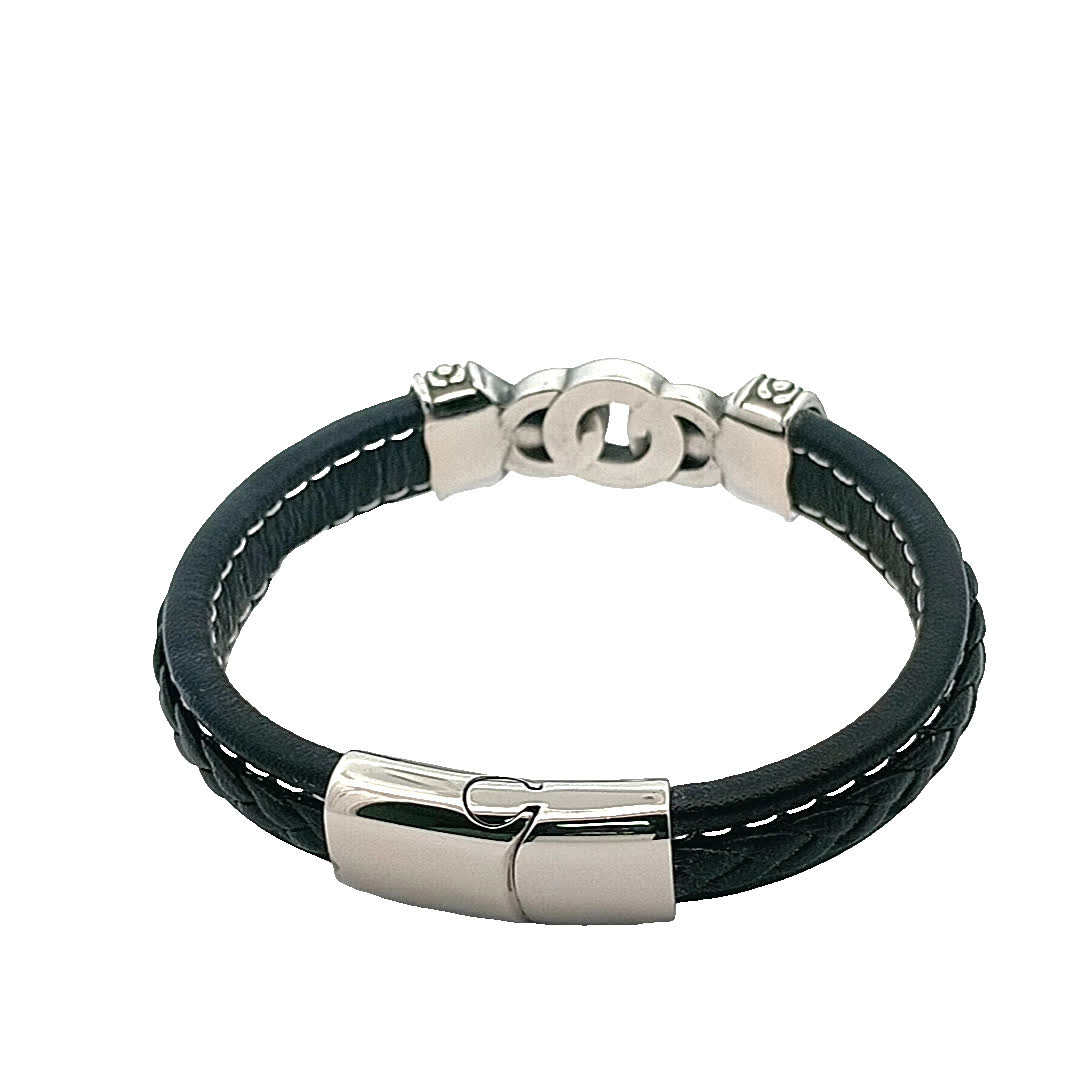 Podnieś poziom swoich dodatków dzięki tej oszałamiającej bransoletce ze posrebrzanej stali i skóry. Skomplikowany projekt charakteryzuje się wyjątkowym zapięciem, które łączy elegancję z nowoczesnym akcentem, dzięki czemu idealnie nadaje się zarówno na okazje codzienne, jak i formalne. Noś ją samodzielnie lub zestawiaj z innymi elementami, aby uzyskać modny, warstwowy wygląd.
