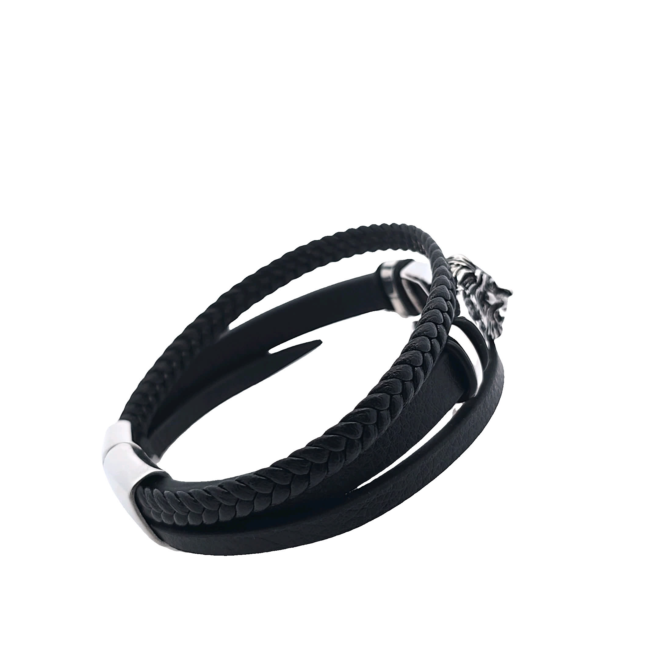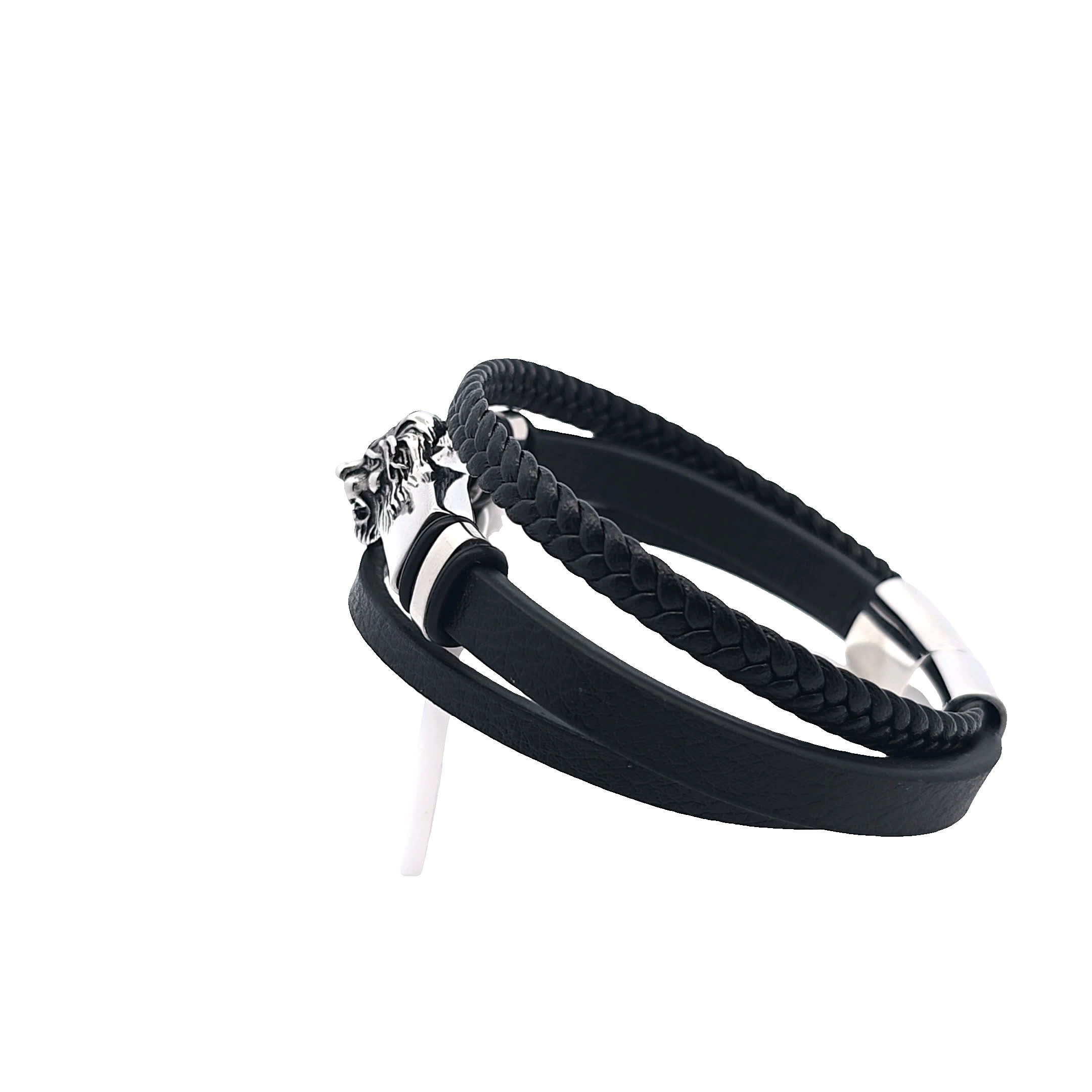 Podnieś poziom swoich dodatków dzięki temu efektownemu zestawowi bransoletek z głową lwa. Ten element, z eleganckim posrebrzanym elementem centralnym i plecionym czarnym skórzanym paskiem, łączy w sobie siłę i elegancję. Idealny do tworzenia odważnych oświadczeń, idealny zarówno na okazje codzienne, jak i formalne.