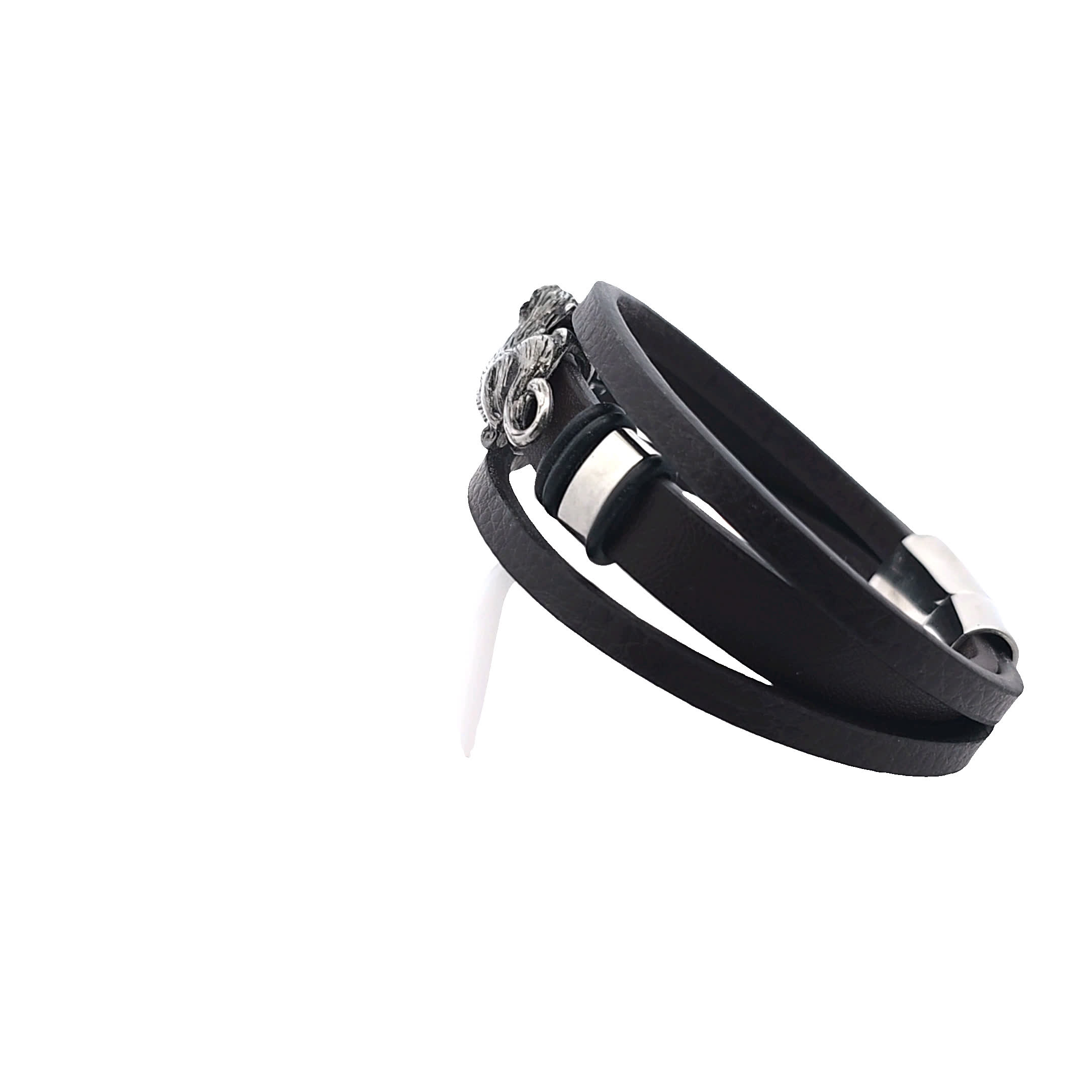 Stylowa skórzana bransoletka z emblematem lwa