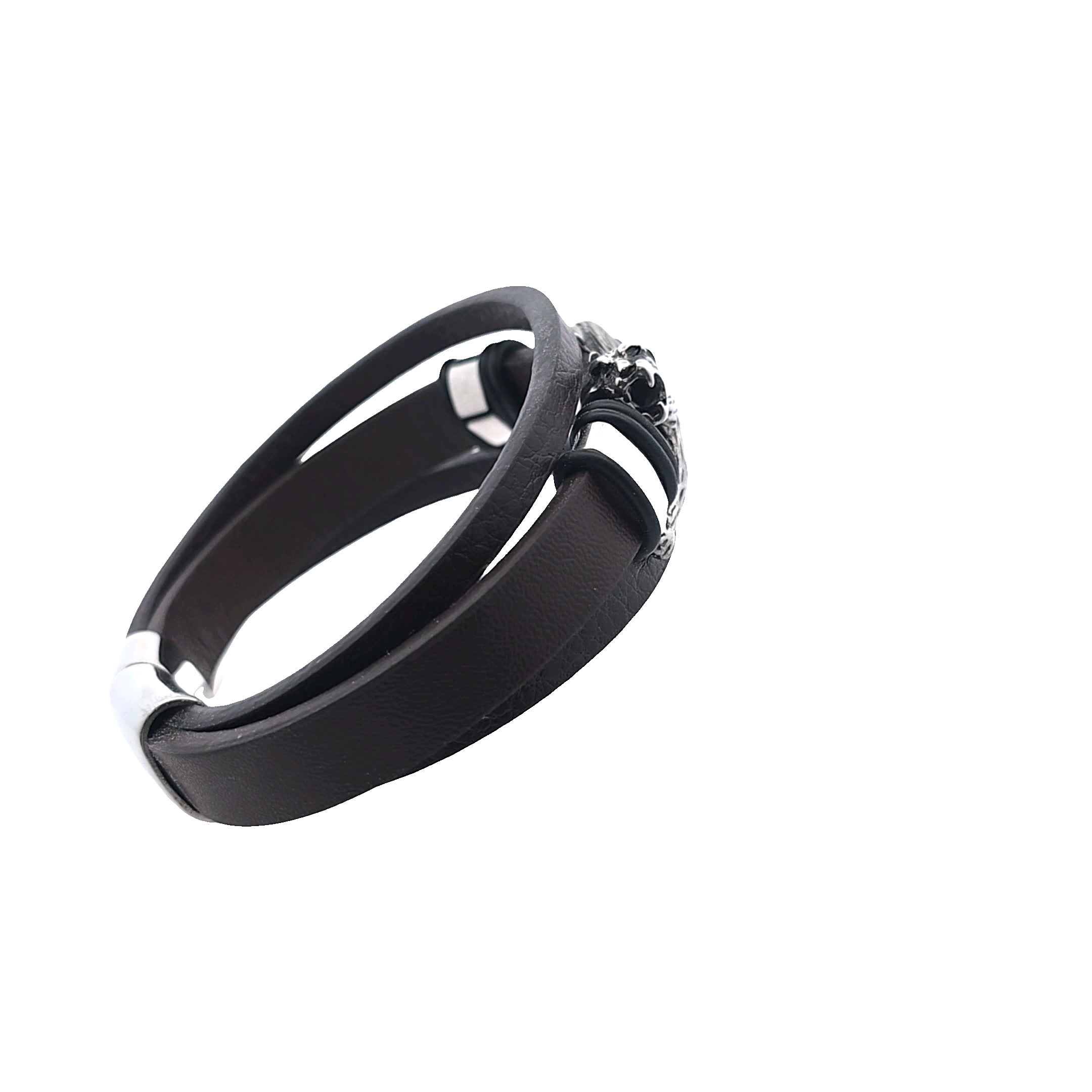 Ta efektowna skórzana bransoletka ma pięknie wykonany emblemat lwa, symbolizujący siłę i odwagę. Połączenie eleganckiej czarnej skóry i polerowanych metalowych akcentów sprawia, że jest to wszechstronny dodatek do każdego stroju, zarówno swobodnego, jak i formalnego.
