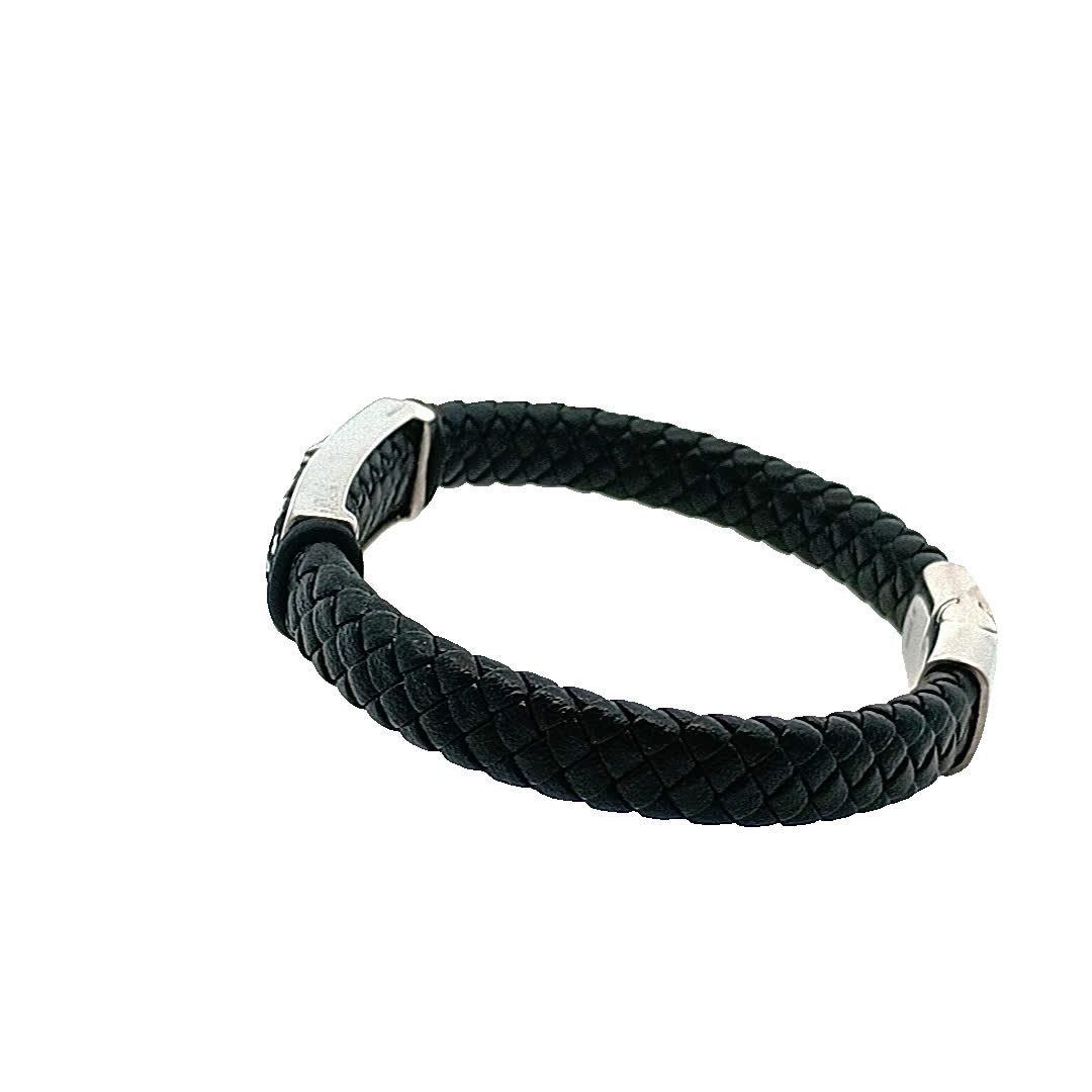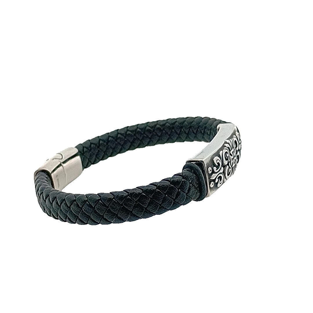 Podnieś poziom swoich dodatków dzięki tej stylowej czarnej plecionej bransoletce. Posiada wyjątkowe posrebrzane zapięcie zdobione misternymi wzorami, łączy nowoczesną estetykę z ponadczasowym kunsztem. Idealna zarówno na okazje codzienne, jak i formalne, ta bransoletka jest wszechstronnym dodatkiem do każdej kolekcji biżuterii.