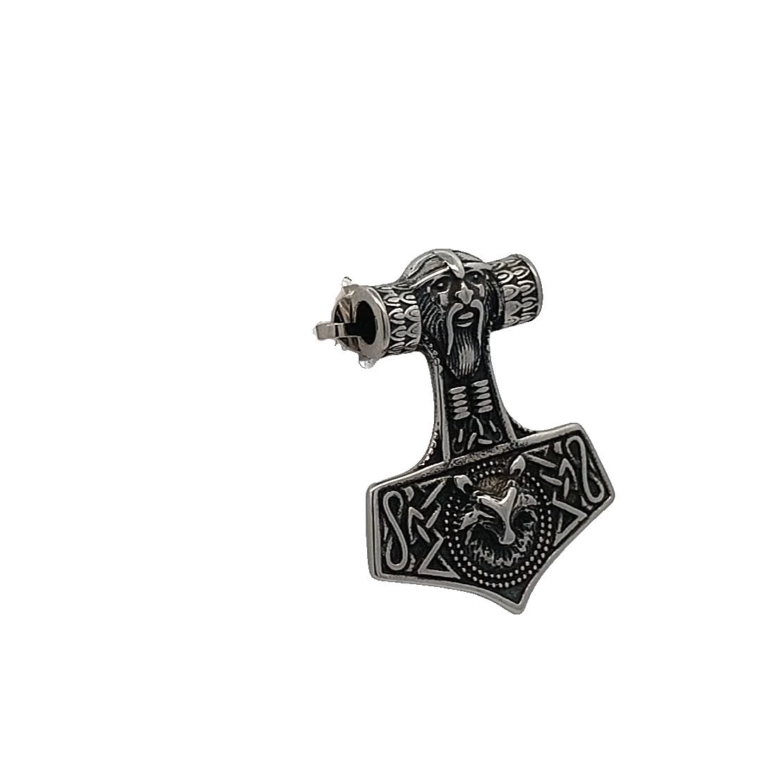 Odkryj urok tego misternie zaprojektowanego wisiorka w kształcie młota wikingów, oszałamiającego dzieła, które uosabia siłę i dziedzictwo. Wykonany z dbałością o szczegóły, zawiera symboliczne grawerunki opowiadające historię starożytnych wojowników i ich męstwa. Idealny dla tych, którzy cenią historię i rzemiosło, ten wisior stanowi śmiałe oświadczenie w każdej kolekcji biżuterii.