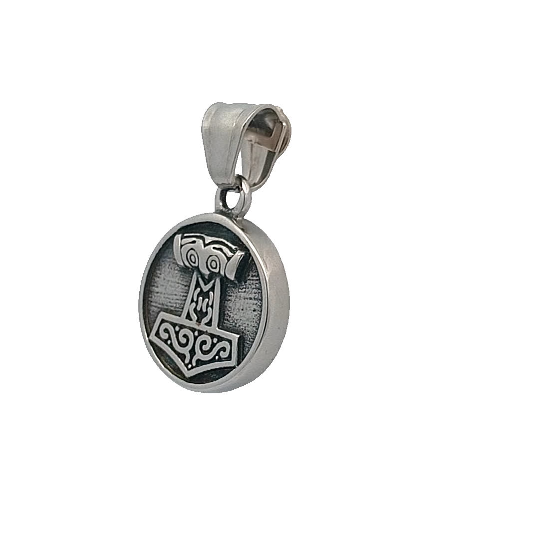 Ten oszałamiający posrebrzany wisiorek inspirowany wikingami przedstawia misternie zaprojektowany młot Thora, symbolizujący siłę i ochronę. Wykonany z dbałością o szczegóły, prezentuje piękny kontrast między polerowanymi i teksturowanymi powierzchniami, dzięki czemu jest wyróżniającym się elementem każdej kolekcji biżuterii.