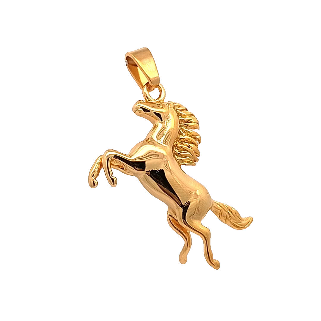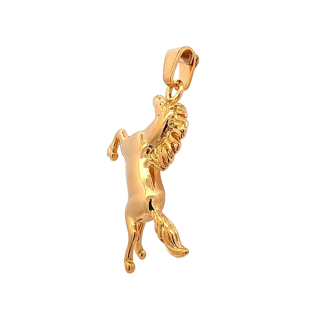 Ten oszałamiający złocony wisiorek z jednorożcem oddaje istotę magii i elegancji. Wykonany z misternymi detalami, przedstawia majestatycznego jednorożca w pozycji stojącej, symbolizującego siłę i wolność. Idealny dla tych, którzy cenią wyjątkową biżuterię opowiadającą historię.