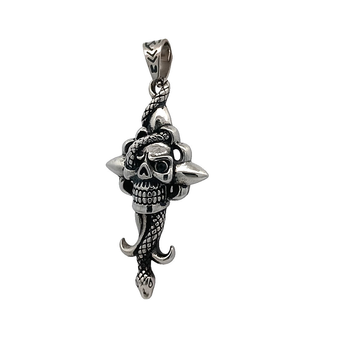 Skomplikowany wisiorek z czaszką i wężem