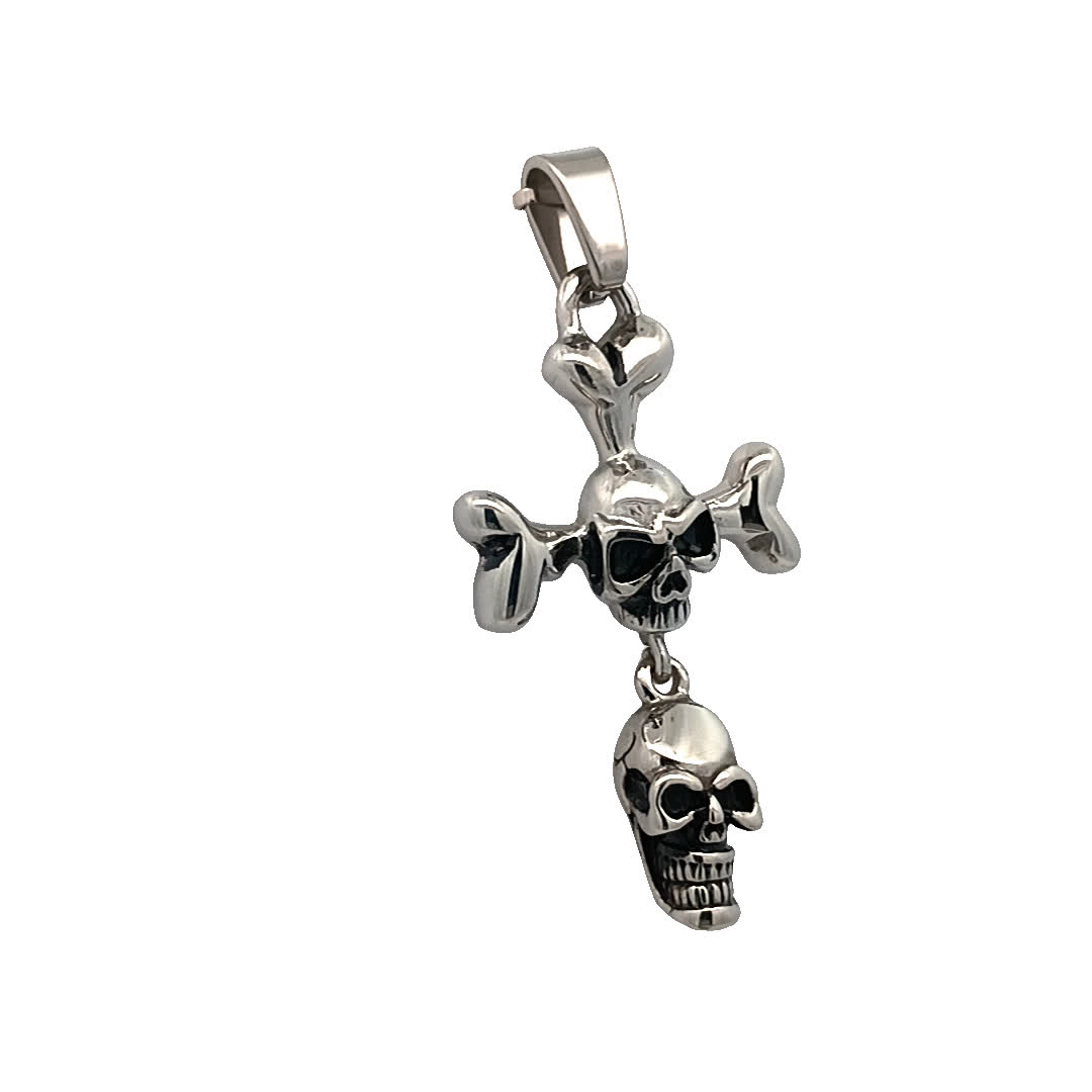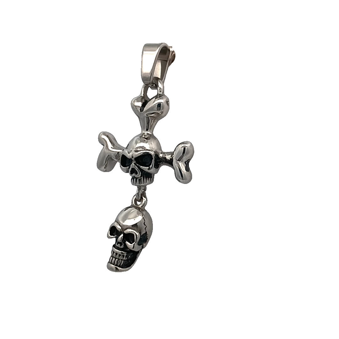 Ten efektowny wisiorek w kształcie krzyża z czaszką łączy w sobie odważny design z nutą elegancji. Wykonany z 5 wysokiej jakości metalu, charakteryzuje się misternymi detalami, które przyciągają uwagę i wywołują rozmowę. Idealny dla tych, którzy cenią sobie odważny styl, ten wisiorek może podnieść rangę każdego stroju, czyniąc go niezbędnym dodatkiem do Twojej kolekcji biżuterii.