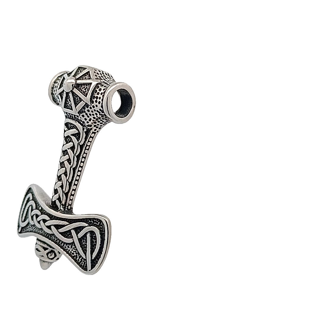 Intrygująca posrebrzana broszka w kształcie młota Thora