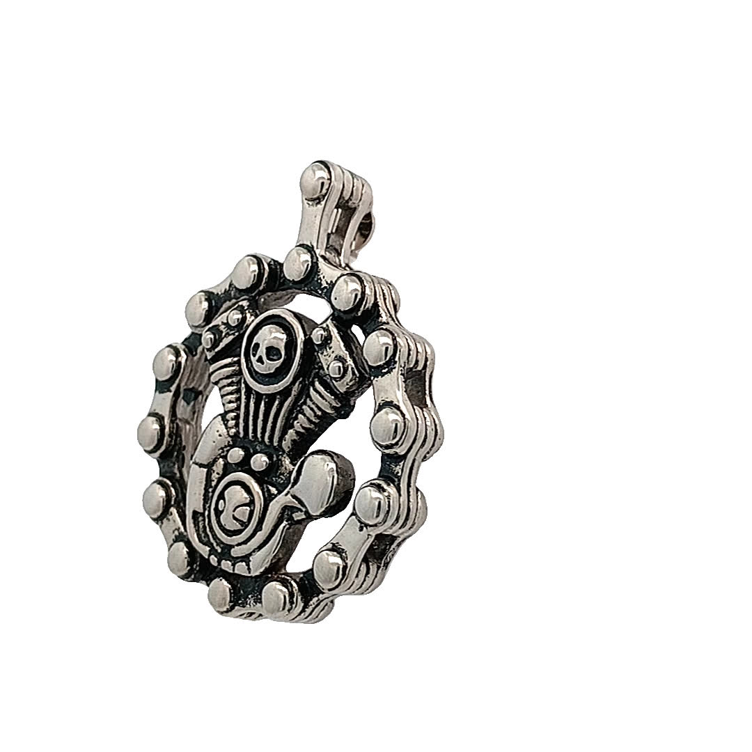 Ten oszałamiający posrebrzany wisiorek prezentuje misterny projekt z centralnym motywem otoczonym elementami dekoracyjnymi. Rzemiosło podkreśla wyjątkowe detale, dzięki czemu jest to idealny element każdej kolekcji biżuterii.