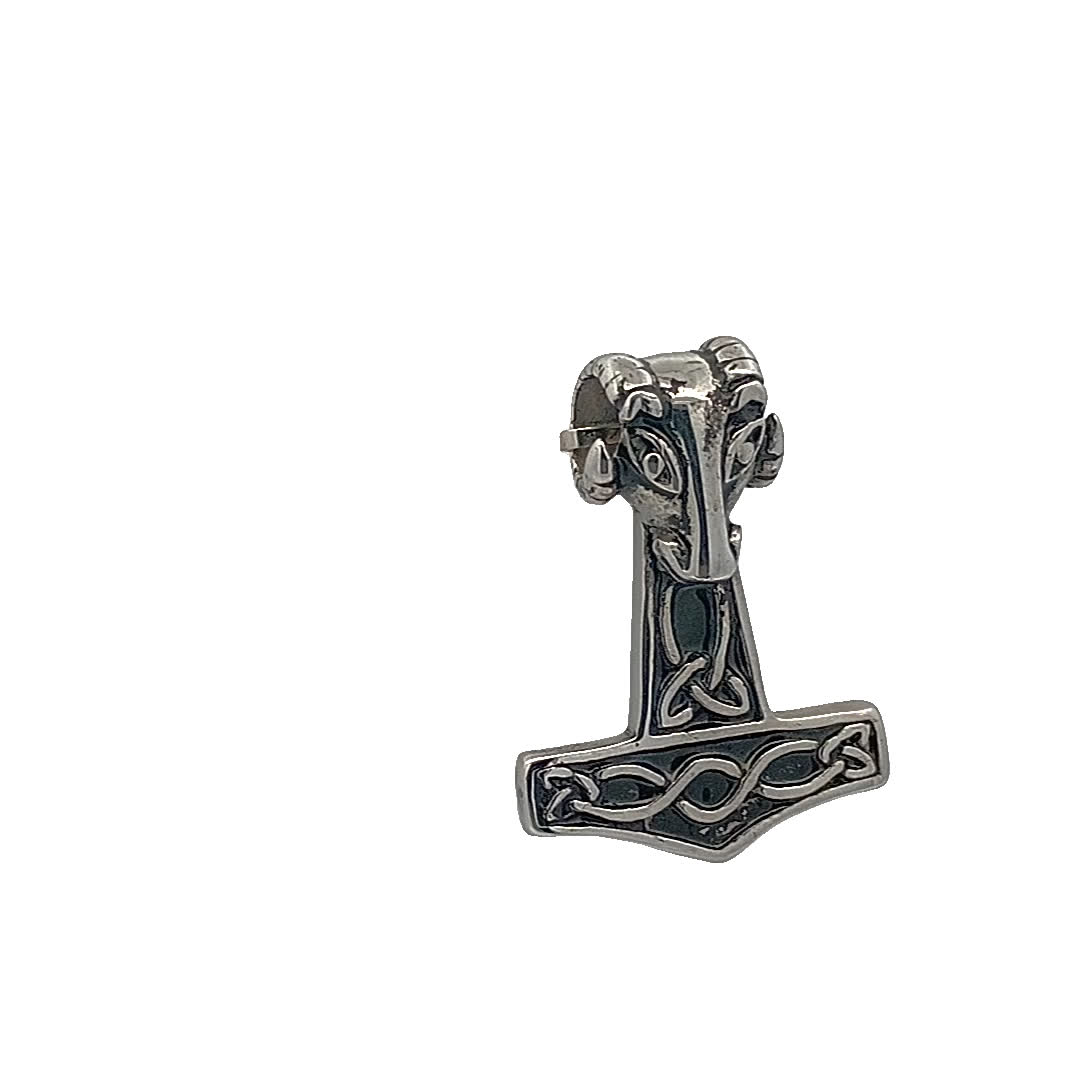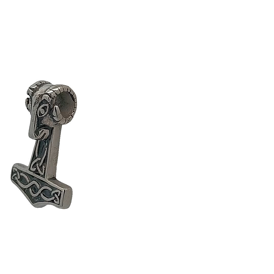 Ten oszałamiający wisiorek inspirowany wikingami charakteryzuje się szczegółowym projektem, który oddaje istotę mitologii nordyckiej. Wykonany z precyzją wisiorek prezentuje groźną głowę wilka na szczycie tradycyjnego kształtu młota, symbolizującego siłę i ochronę. Idealny dla tych, którzy cenią historię i rzemiosło, ten element jest uderzającym dodatkiem do każdej kolekcji biżuterii.
