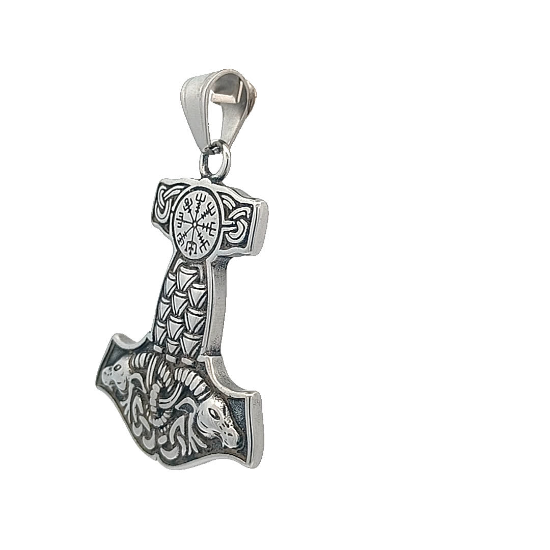 Ten oszałamiający posrebrzany wisiorek ma pięknie szczegółowy wzór Thor\\\'s Hammer, symbolizujący siłę i ochronę. Skomplikowane rzeźby prezentują połączenie artyzmu i rzemiosła, co czyni go idealnym dodatkiem dla tych, którzy cenią mitologię nordycką.