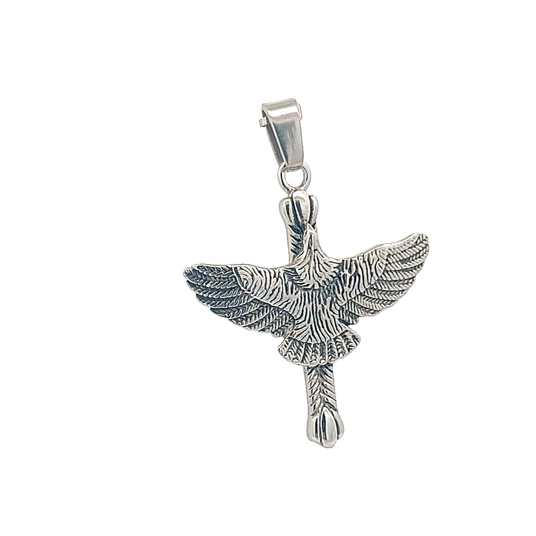 Ten oszałamiający posrebrzany wisiorek w kształcie ptaka oddaje istotę wolności i wdzięku. Wykonany z misternymi detalami, prezentuje pięknie zaprojektowanego ptaka w locie, co czyni go idealnym dodatkiem dla miłośników natury. Noś go, aby podnieść rangę każdego stroju, zarówno swobodnego, jak i formalnego.