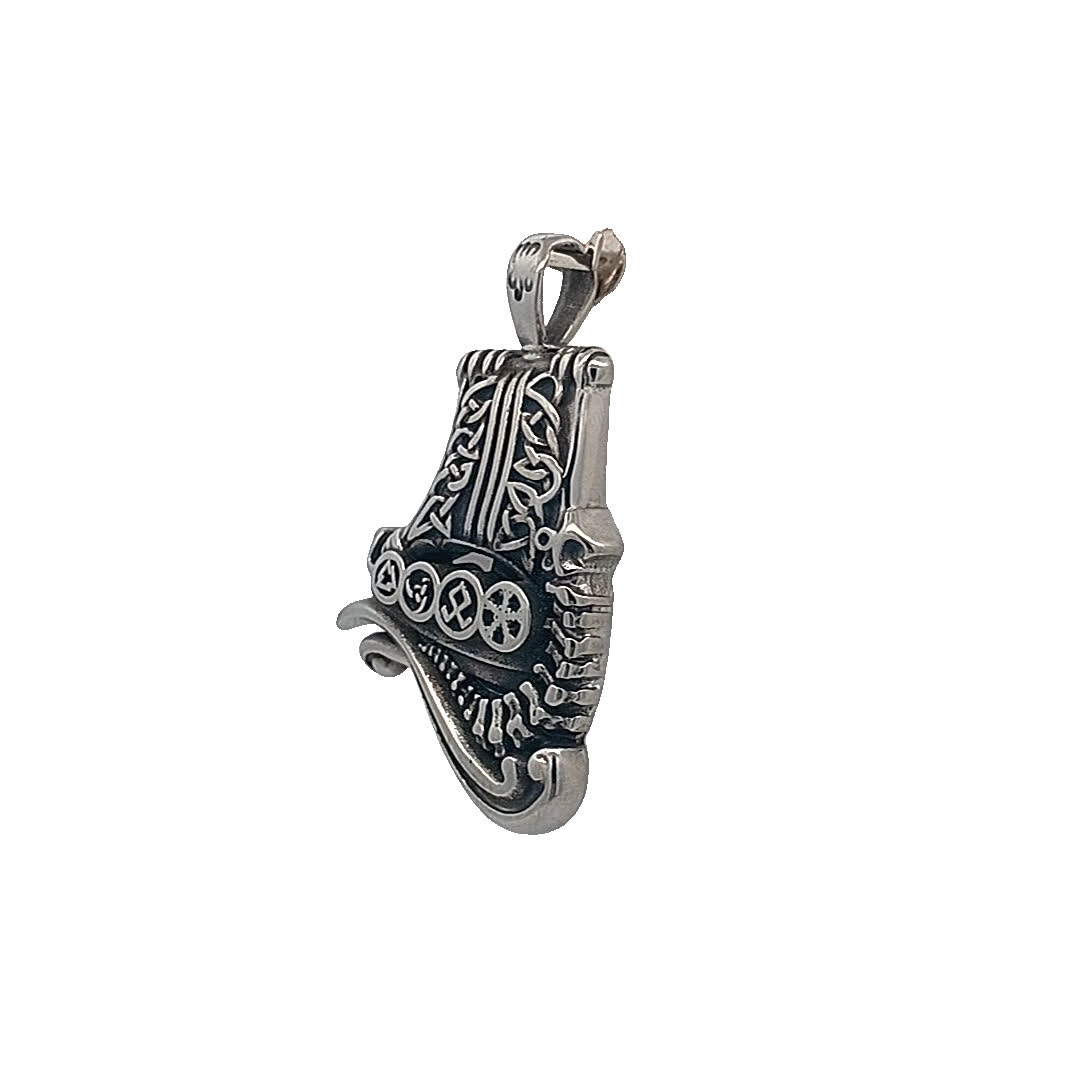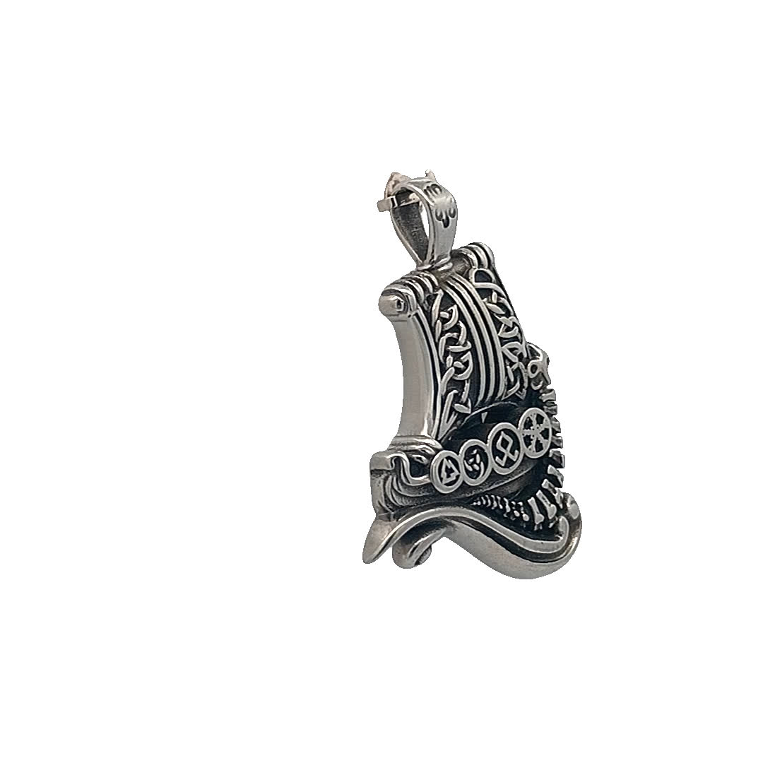 Intrygujący posrebrzany wisiorek w kształcie statku wikingów