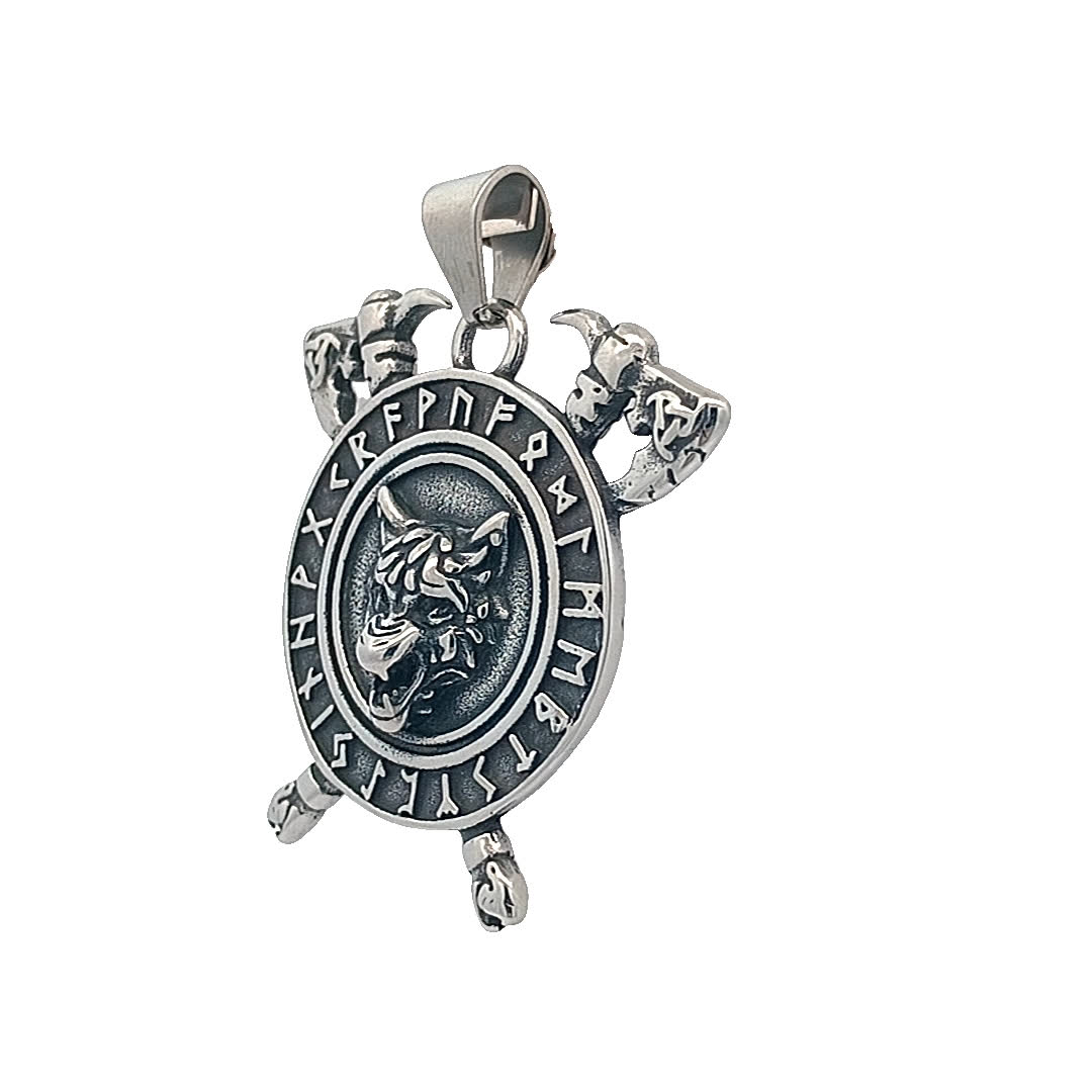 Ten efektowny wisiorek inspirowany wikingami przedstawia groźnego wilka, symbolizującego siłę i lojalność. Wykonany z wysokiej jakości stali, prezentuje misterne detale i runiczne inskrypcje, które dodają odrobinę tajemniczości. Idealny dla tych, którzy cenią mitologię nordycką i chcą zrobić odważne oświadczenie.