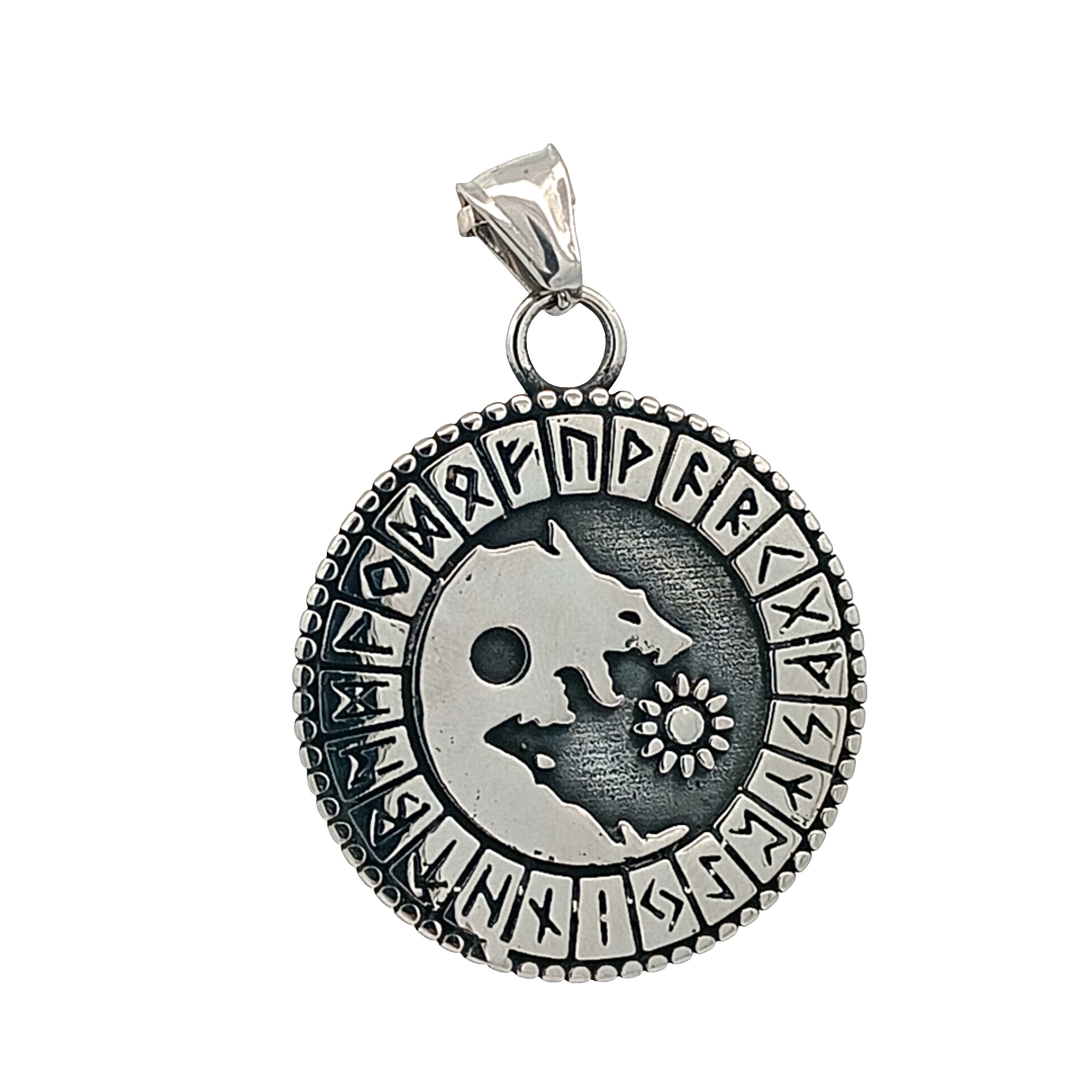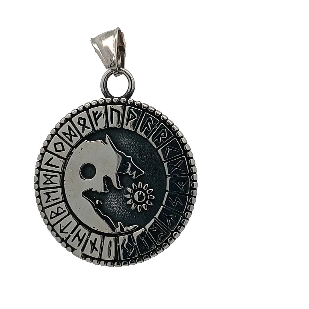 Intrygujący posrebrzany wisiorek z symbolami nordyckimi