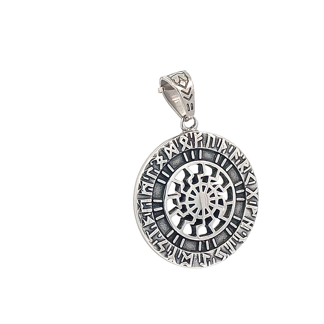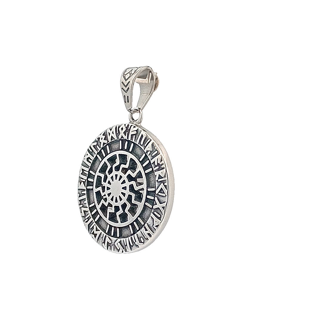 Ten oszałamiający posrebrzany wisiorek charakteryzuje się misternym wzorem, który łączy elegancję z nutą tajemniczości. Szczegółowe grawerunki i okrągły motyw sprawiają, że jest to idealny dodatek zarówno na okazje codzienne, jak i formalne. Noś go, aby wyrazić swój wyjątkowy styl i dodać element do swojej kolekcji biżuterii.