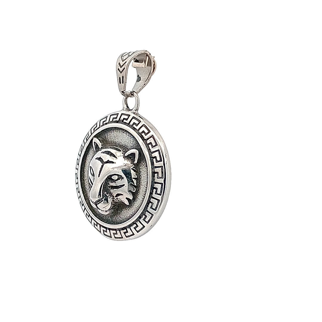 Ten oszałamiający wisiorek z tygrysem uosabia istotę siły i elegancji. Wykonany z misternymi szczegółami, posiada pięknie zaprojektowaną głowę tygrysa na okrągłym tle, co czyni go idealnym elementem każdej kolekcji biżuterii. Idealny dla tych, którzy cenią wyjątkowe i odważne dodatki.