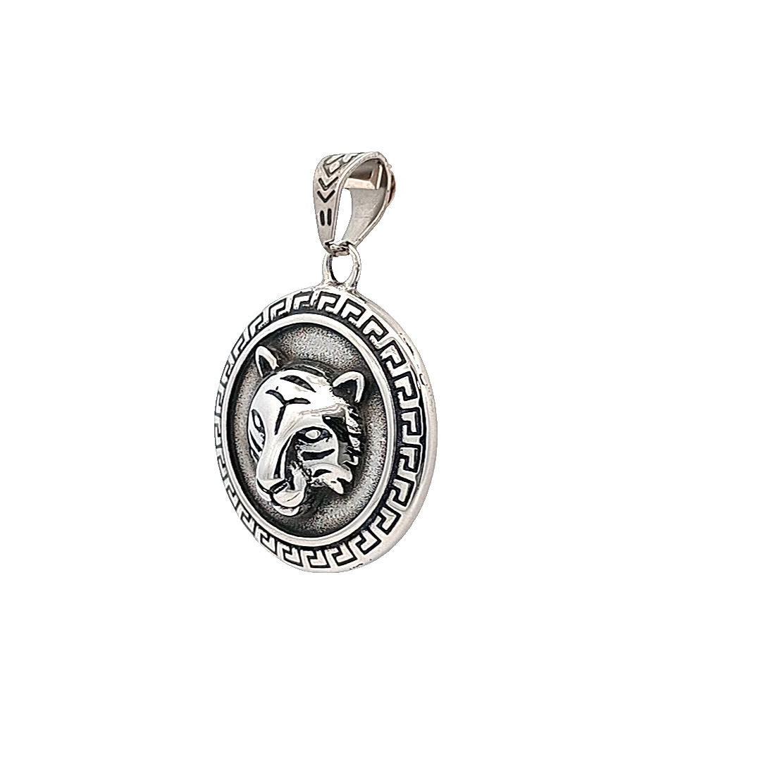 Ten oszałamiający posrebrzany wisiorek ma pięknie wykonany wzór tygrysa, symbolizujący siłę i odwagę. Misterne detale oddają istotę majestatycznego zwierzęcia, dzięki czemu jest idealnym dodatkiem dla tych, którzy cenią wyjątkową biżuterię. Noś go jako element oświadczenia lub podaruj komuś wyjątkowemu, kto uosabia ducha tygrysa.